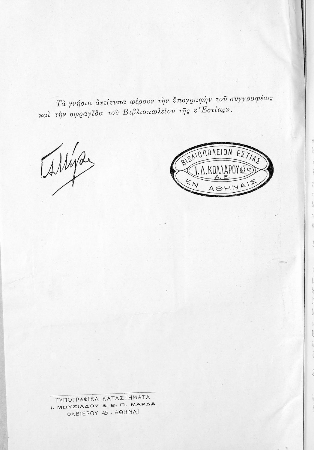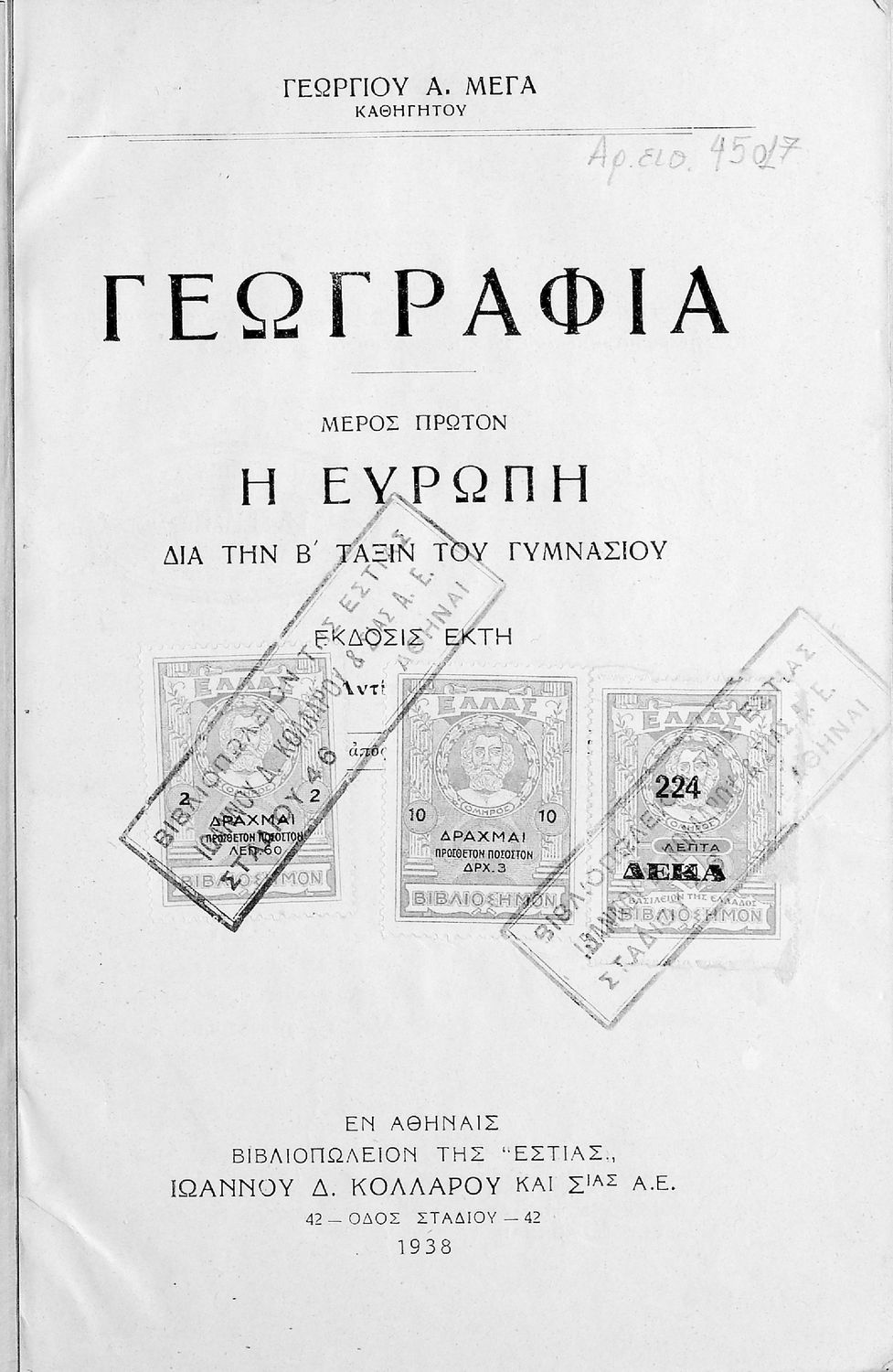 Εκδότης: Ιωάννης Δ. Κολλάρος Έτος έκδοσης: 1938 Τόπος έκδοσης: Αθήνα Έκδοση: 6η Υπουργική απόφαση / Σύμβαση: 44781/13-8-1932 Έτος έγκρισης: 1932 |