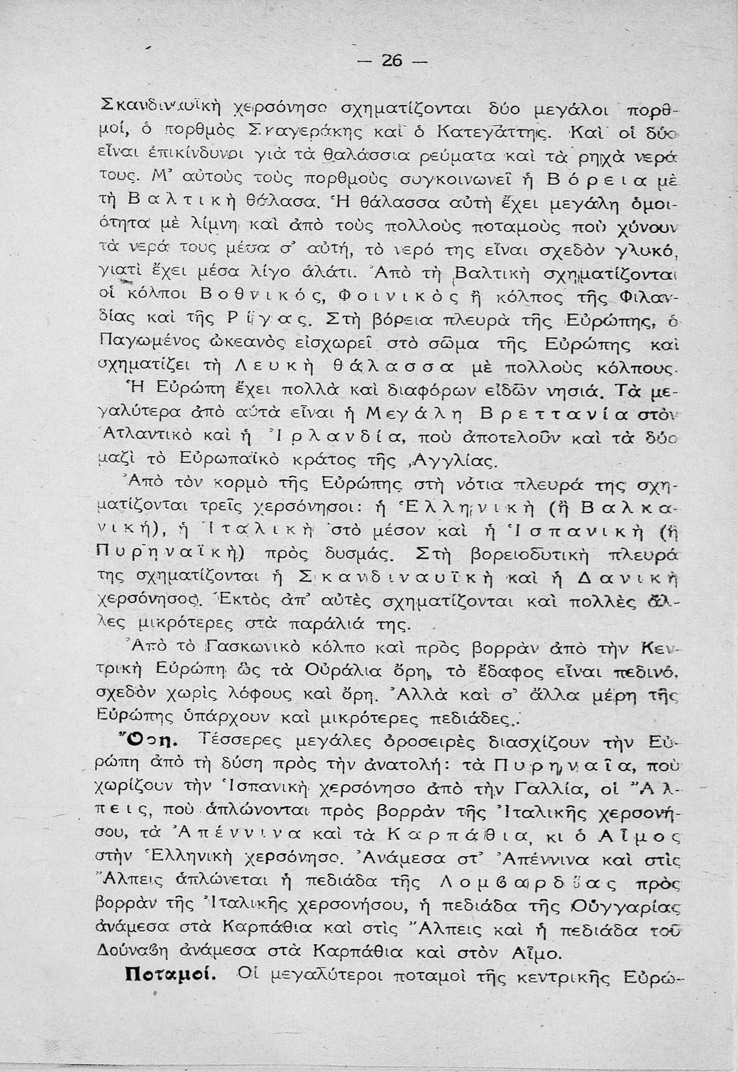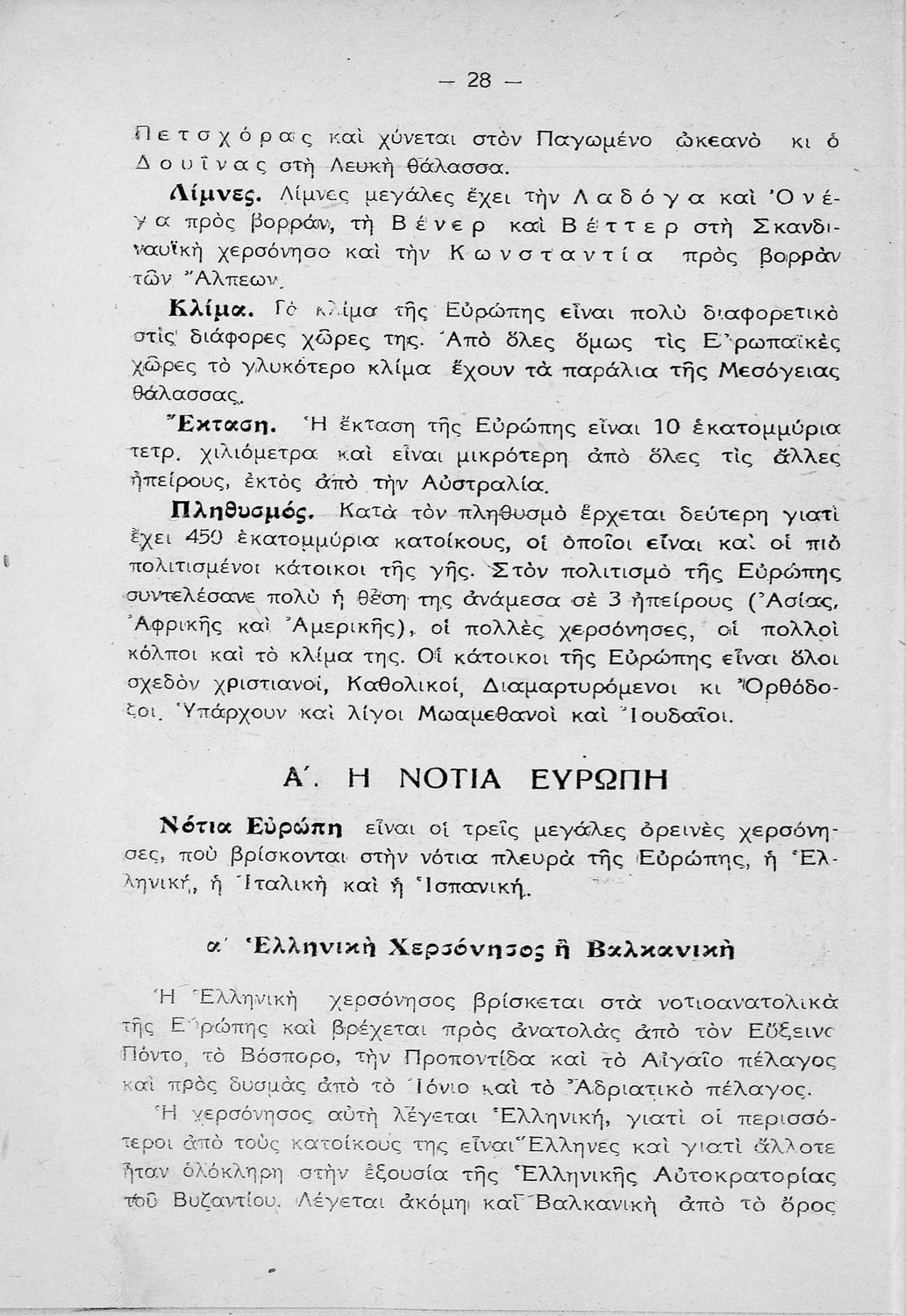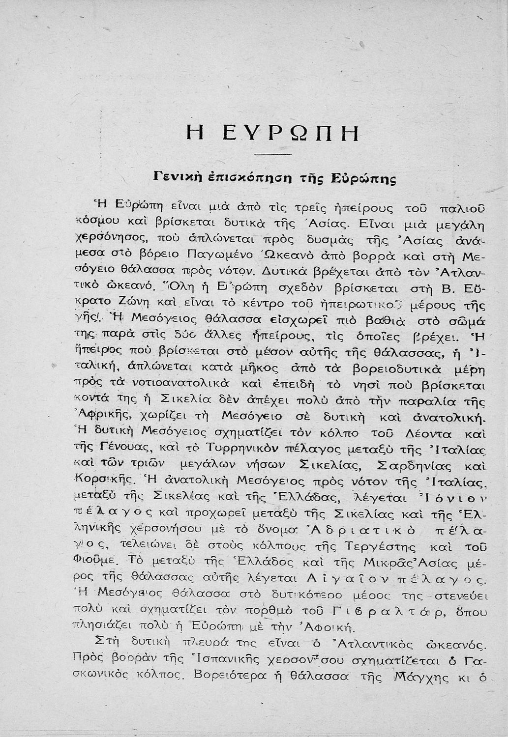 Σχολικό εγχειρίδιο Γεωγραφίας για την ΣΤ΄ Δημοτικού. Περιλαμβάνει στοιχεία φυσικής και μαθηματικής γεωγραφίας που εξετάζει την Ευρώπη και τα κράτη της γεωφυσικά, πολιτικά και οικονομικά.