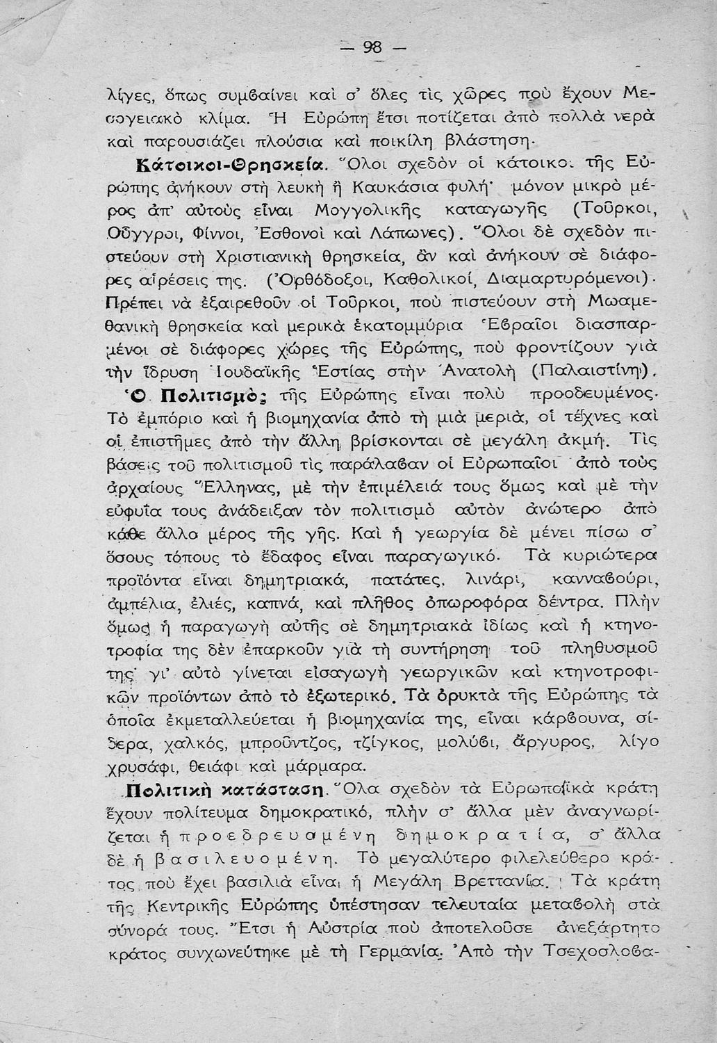 Νεώτατη Γεωγραφία, Η Ευρώπη για την ΣΤ΄ τάξη του Δημοτικού Σχολείου