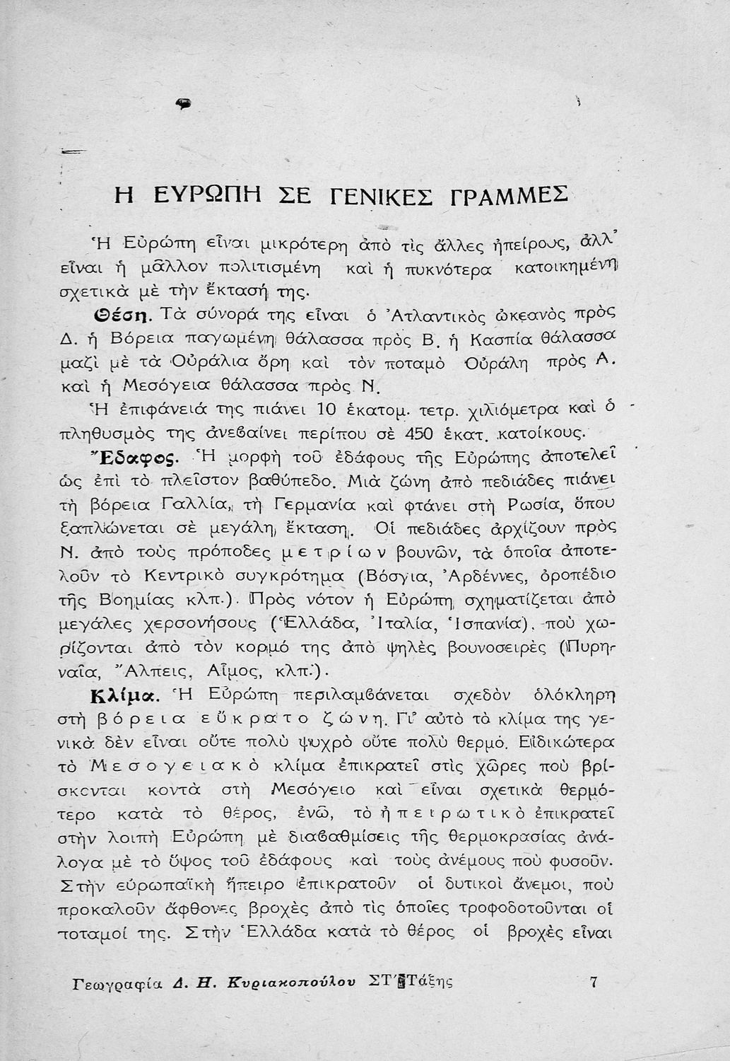 Σχολικό εγχειρίδιο Γεωγραφίας για την ΣΤ΄ Δημοτικού. Περιλαμβάνει στοιχεία φυσικής και μαθηματικής γεωγραφίας που εξετάζει την Ευρώπη και τα κράτη της γεωφυσικά, πολιτικά και οικονομικά.