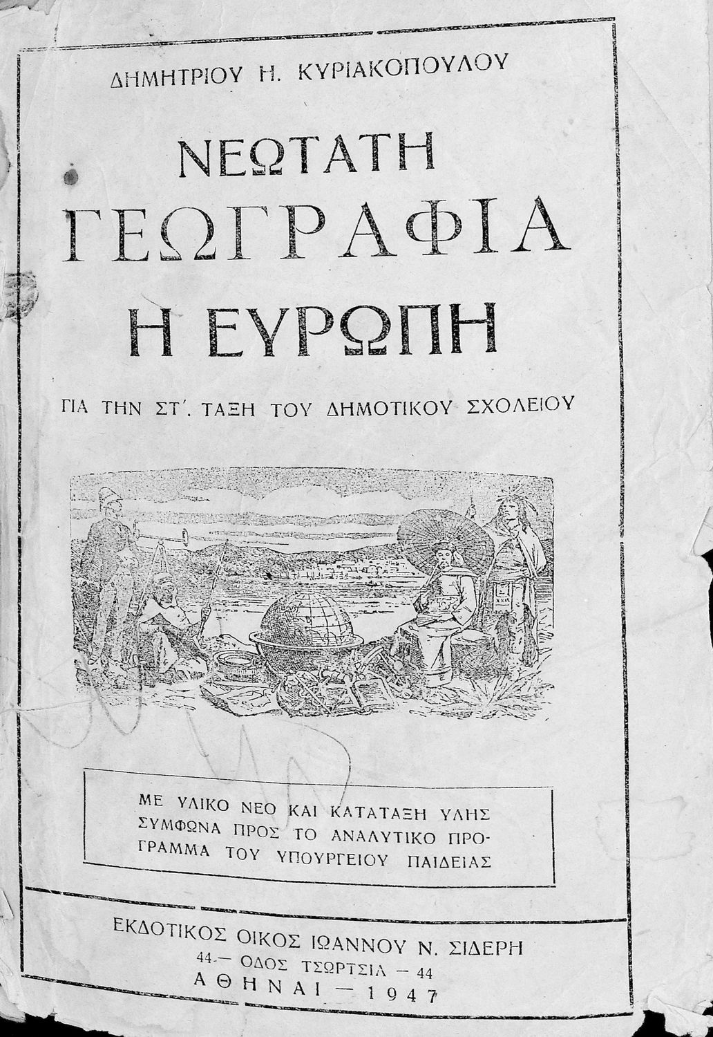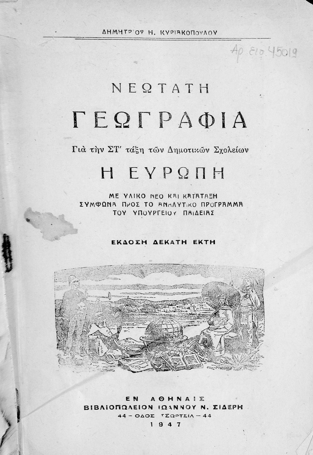Σχολικό εγχειρίδιο Γεωγραφίας για την ΣΤ΄ Δημοτικού. Περιλαμβάνει στοιχεία φυσικής και μαθηματικής γεωγραφίας που εξετάζει την Ευρώπη και τα κράτη της γεωφυσικά, πολιτικά και οικονομικά.