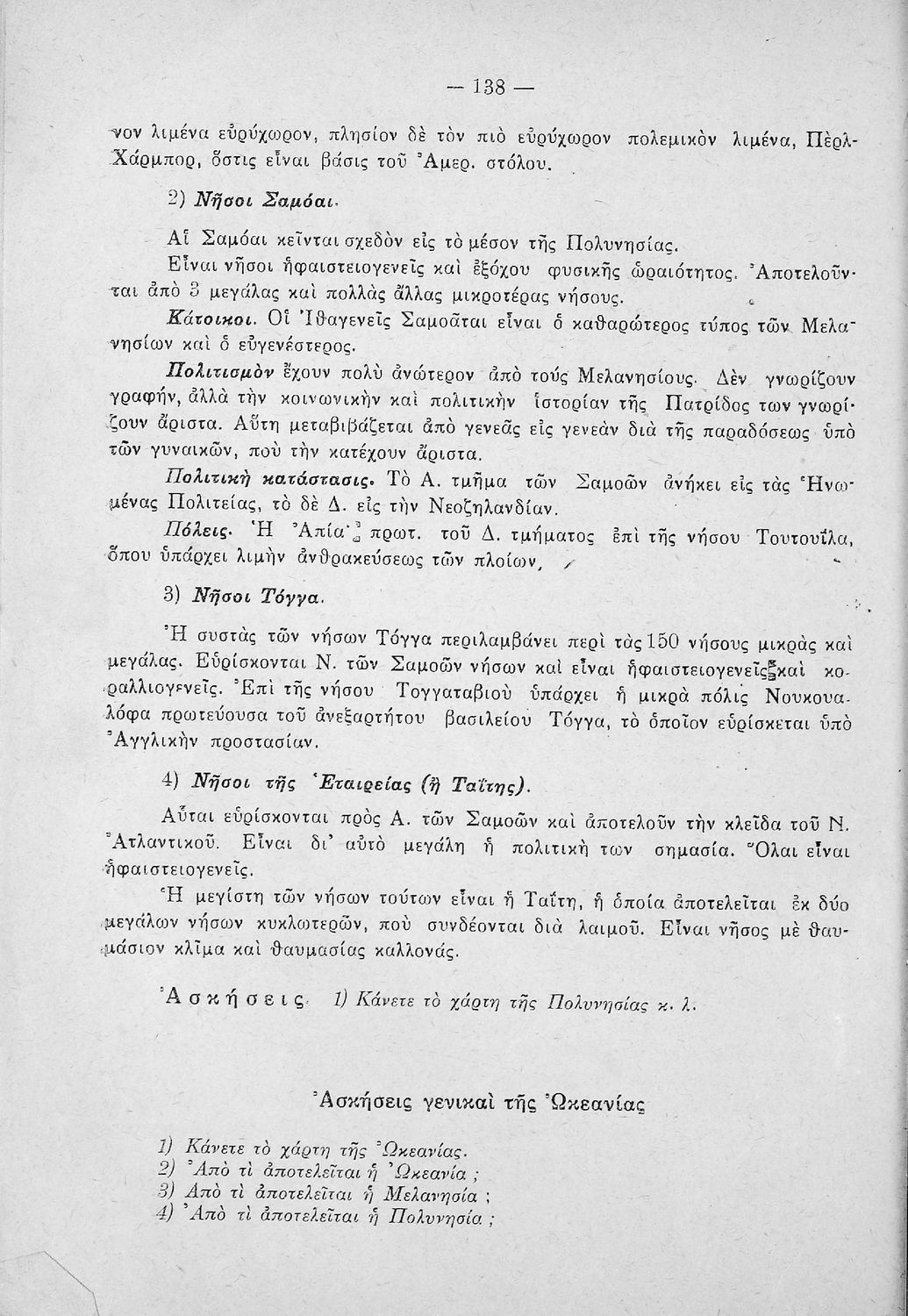 Κωδικός αναγνώρισης: 01-45021 Τίτλος: Γεωγραφία των Ηπείρων εκτός της Ευρώπης, προς χρήσιν των μαθητών της Ε΄ τάξεως των Δημοτικών Σχολείων και συνδιδασκομένων Ε΄ και ΣΤ΄ κατά το 1ον έτος συνδιδασκαλίας Συγγραφέας: Κ. Κωνσταντάς, Π. Παπαδόπουλος Μέγεθος και υπόστρωμα: Μαθητικό βοήθημα, μαλακό εξώφυλλο, 185 σελίδες. Εικόνες (ασπρόμαυρες), χάρτες (ασπρόμαυροι). |