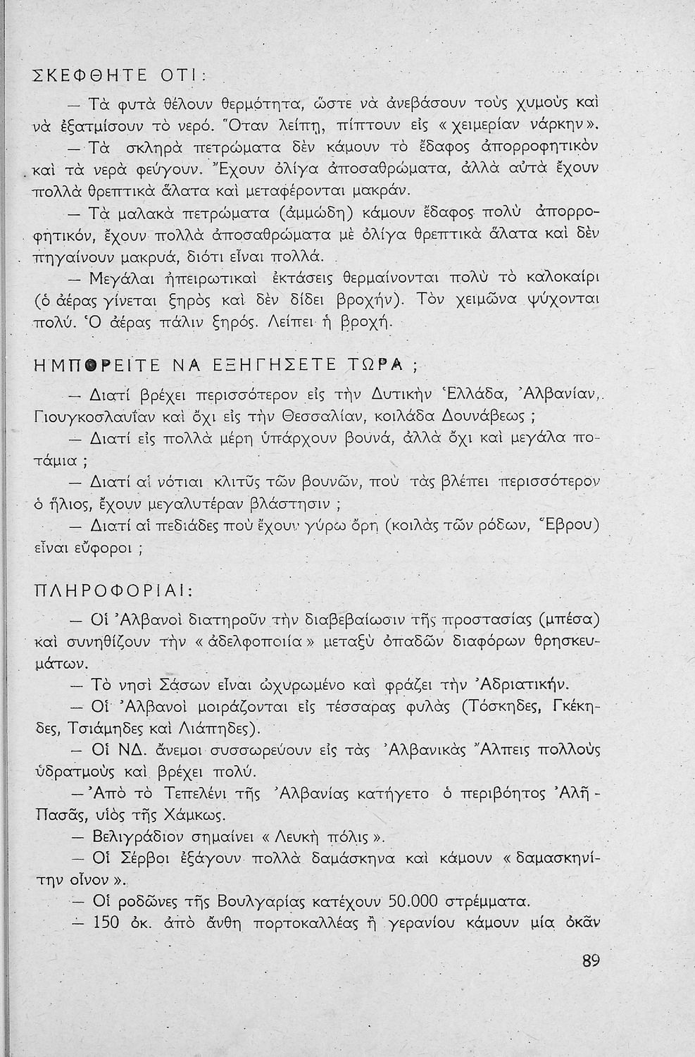 Μαθητικό βοήθημα Γεωγραφίας για την Γ΄ και Δ΄ Δημοτικού που περιέχει χάρτες περιοχών της Ελλάδας τις οποίες εξετάζει από γεωφυσική, πολιτική και οικονομική άποψη.