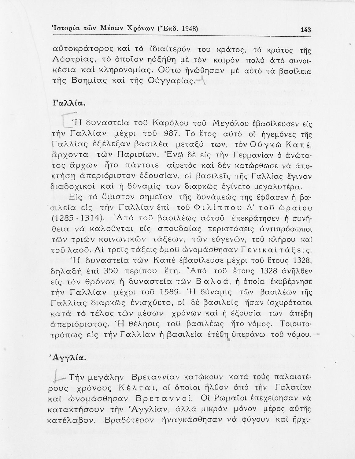 Ιστορία των Μέσων Χρόνων δια την Δ΄ Τάξιν των Εξαταξίων Γυμνασίων Νέου Τύπου