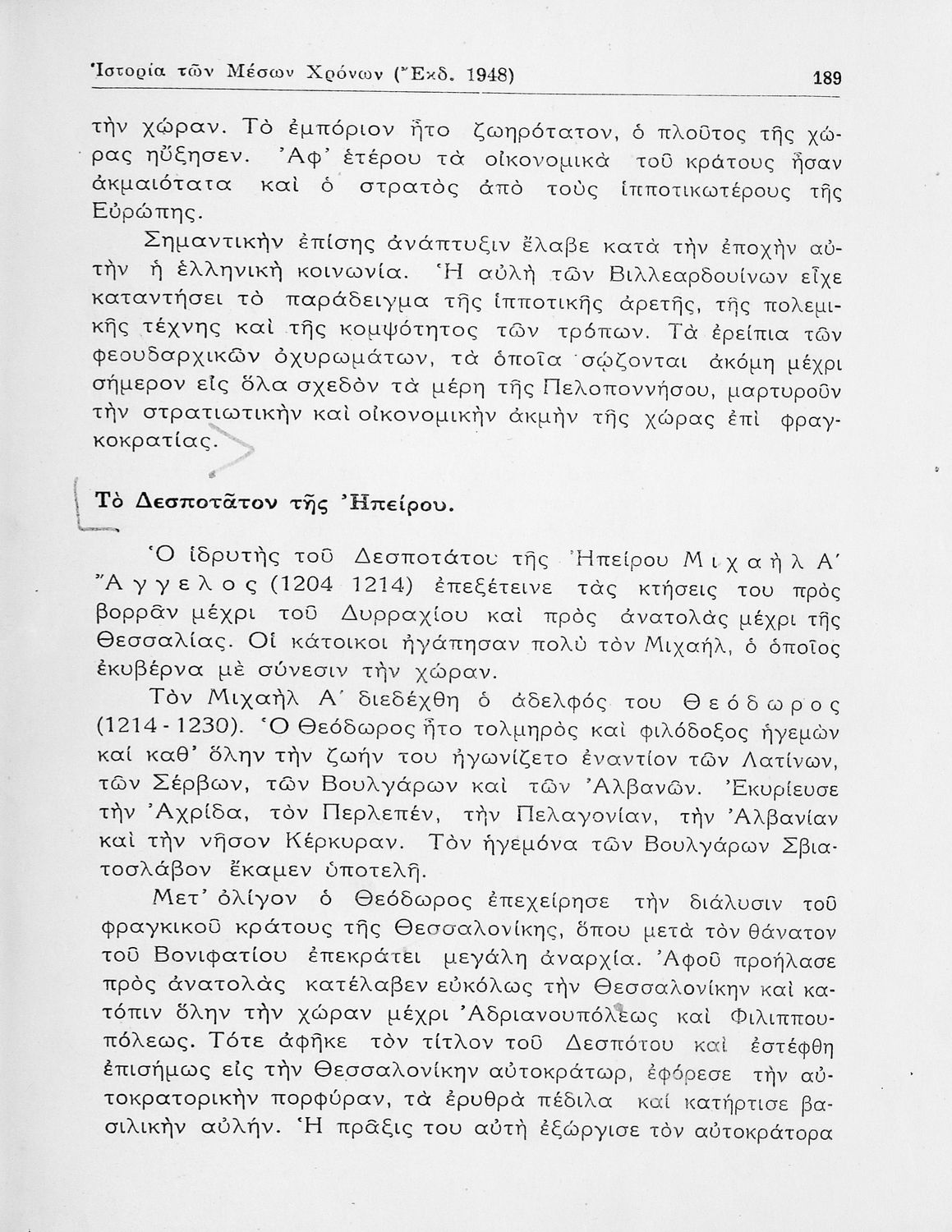 Ιστορία των Μέσων Χρόνων δια την Δ΄ Τάξιν των Εξαταξίων Γυμνασίων Νέου Τύπου
