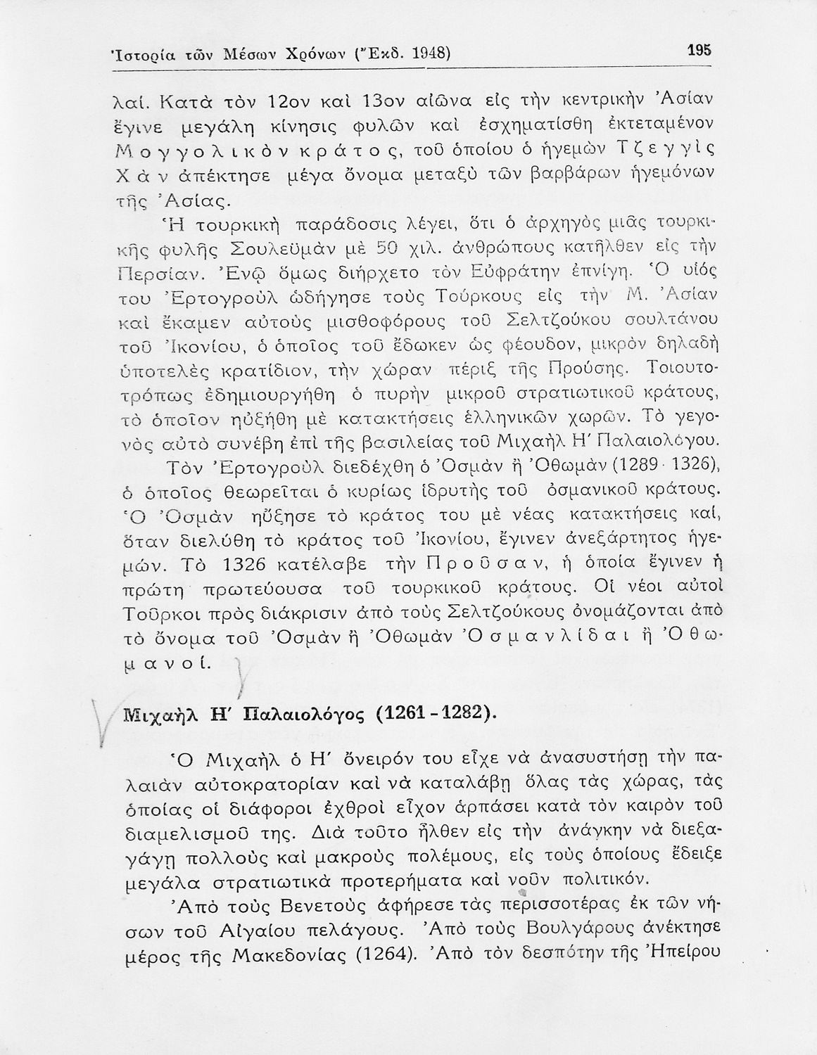 Τίτλος: Ιστορία των Μέσων Χρόνων δια την Δ΄ Τάξιν των Εξαταξίων Γυμνασίων Νέου Τύπου