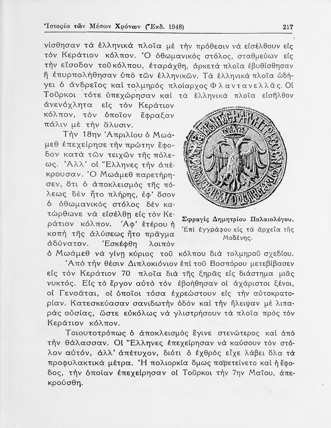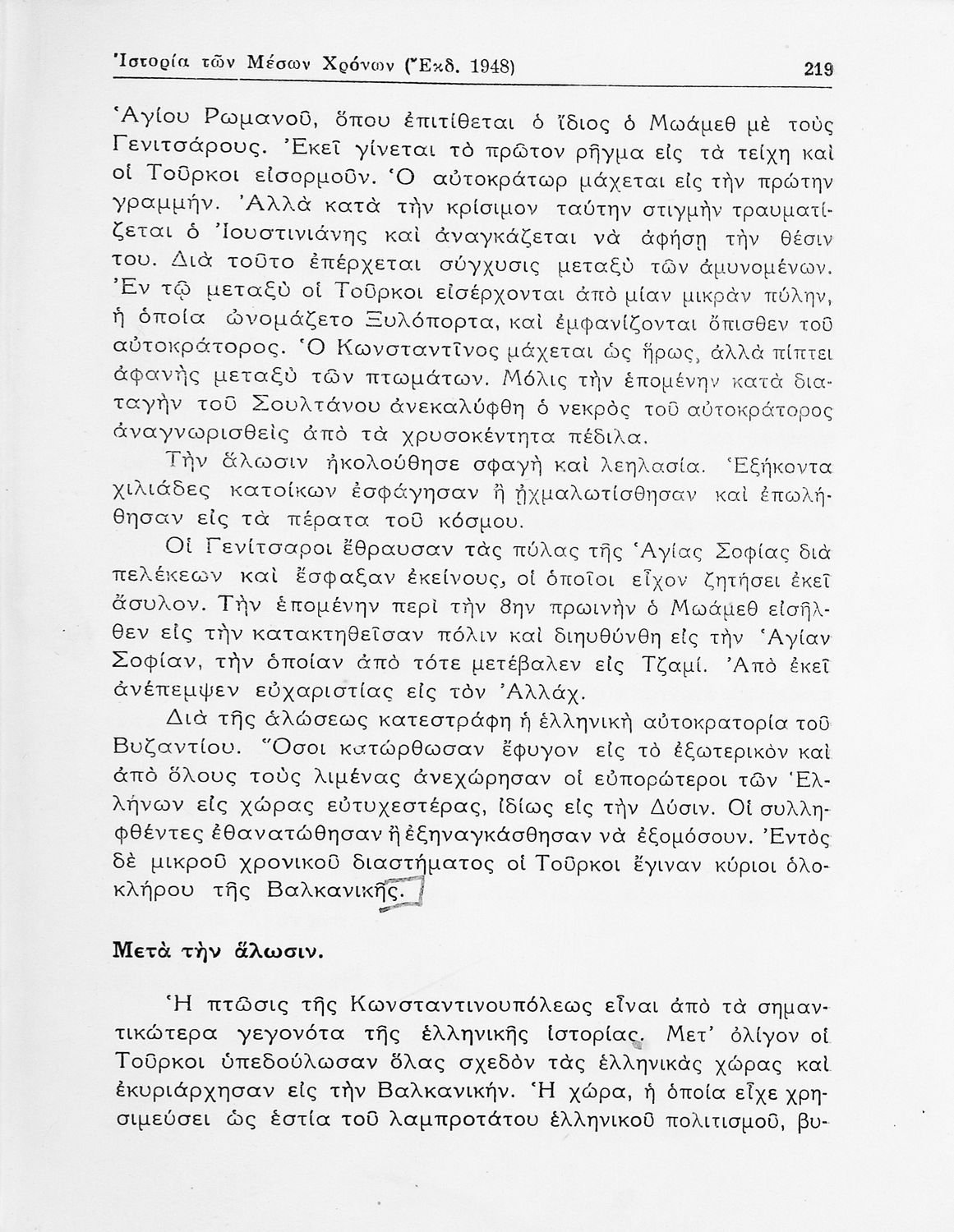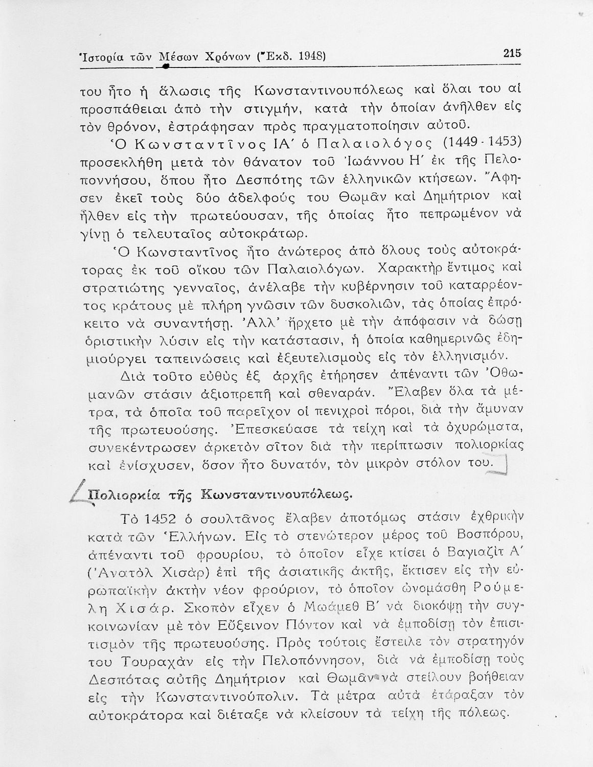 Ιστορία των Μέσων Χρόνων δια την Δ΄ Τάξιν των Εξαταξίων Γυμνασίων Νέου Τύπου