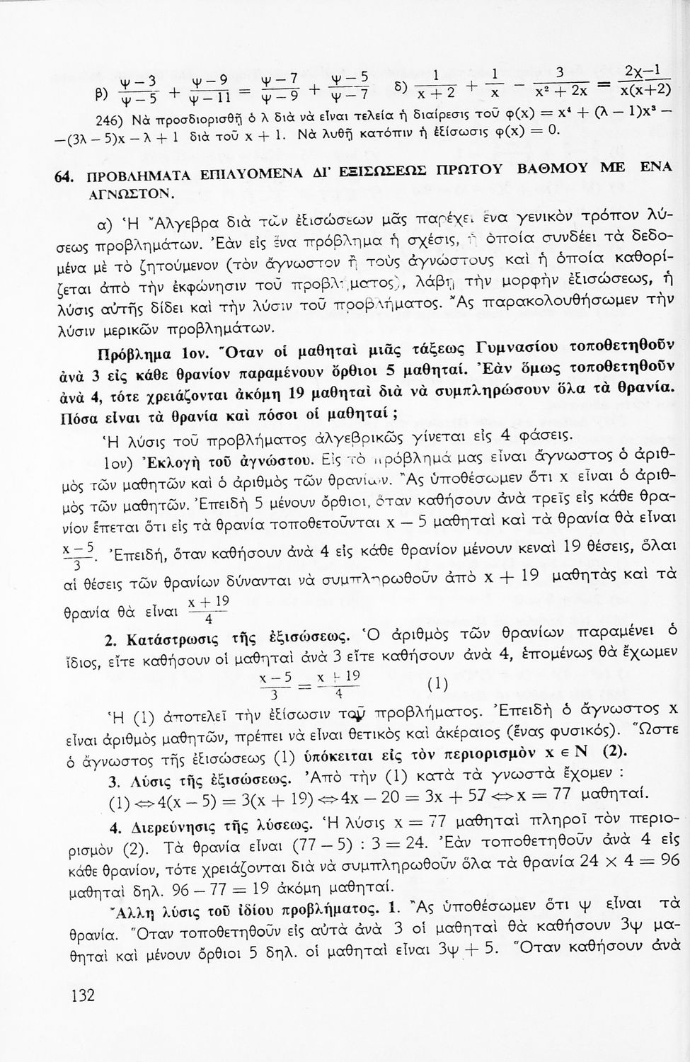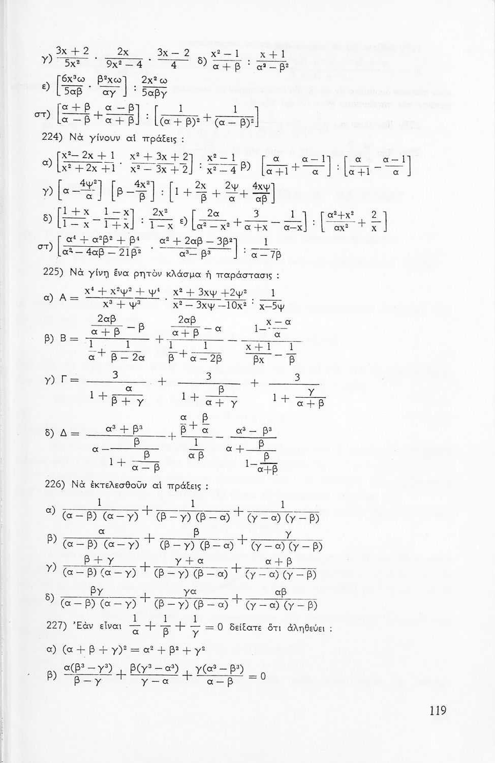 Βαθμίδα εκπαίδευσης: Δευτεροβάθμια Τάξη: Γ' Γυμνασίου Μάθημα: Μαθηματικά Γλώσσα: Απλή καθαρεύουσα Παρουσίαση περιεχομένου: Σχολικό εγχειρίδιο Μαθηματικών Γ΄ Γυμνασίου που περιέχει θεωρία, παραδείγματα και ασκήσεις και περιλαμβάνει Άλγεβρα, Τριγωνομετρία και στοιχεία Περιγραφικής Στατιστικής. Το εγχειρίδιο μεταγλωττίστηκε από τον συγγραφέα και τον Αθ. Ματσούκα. |