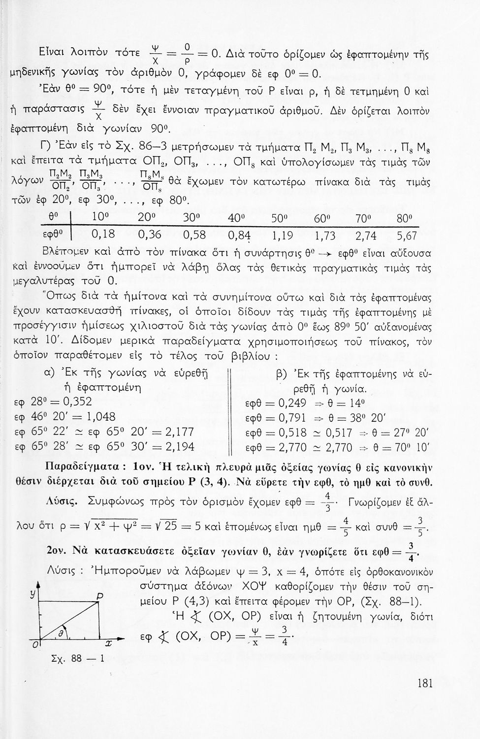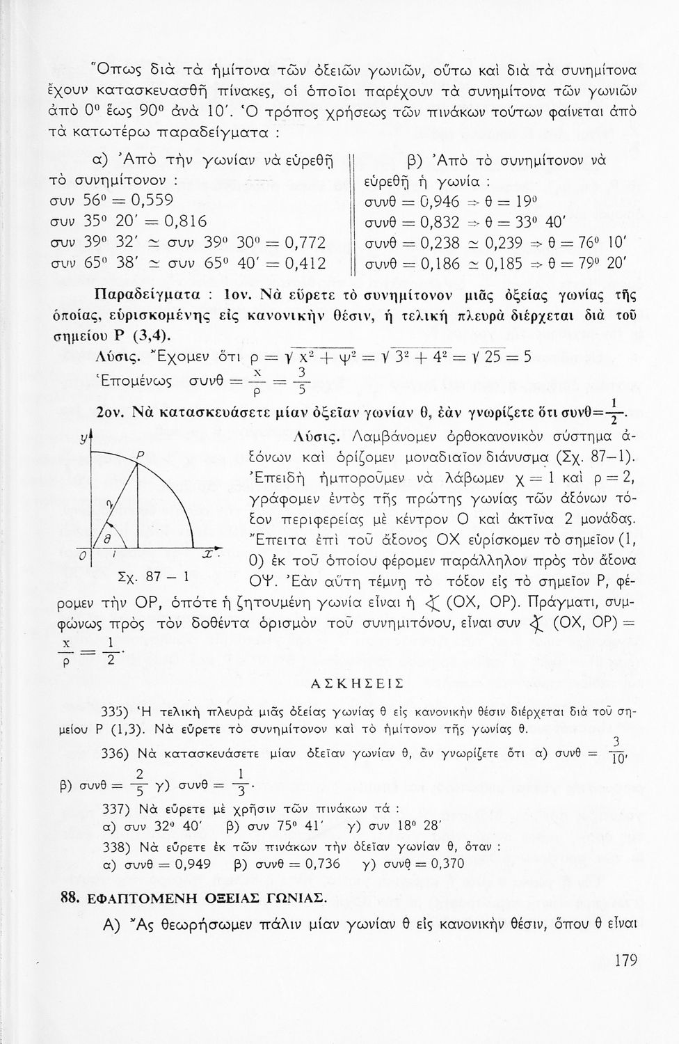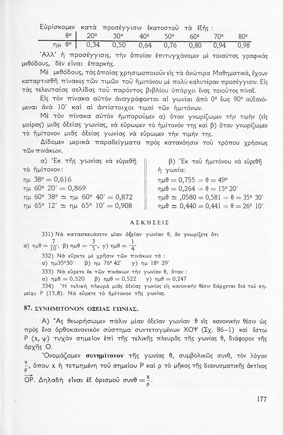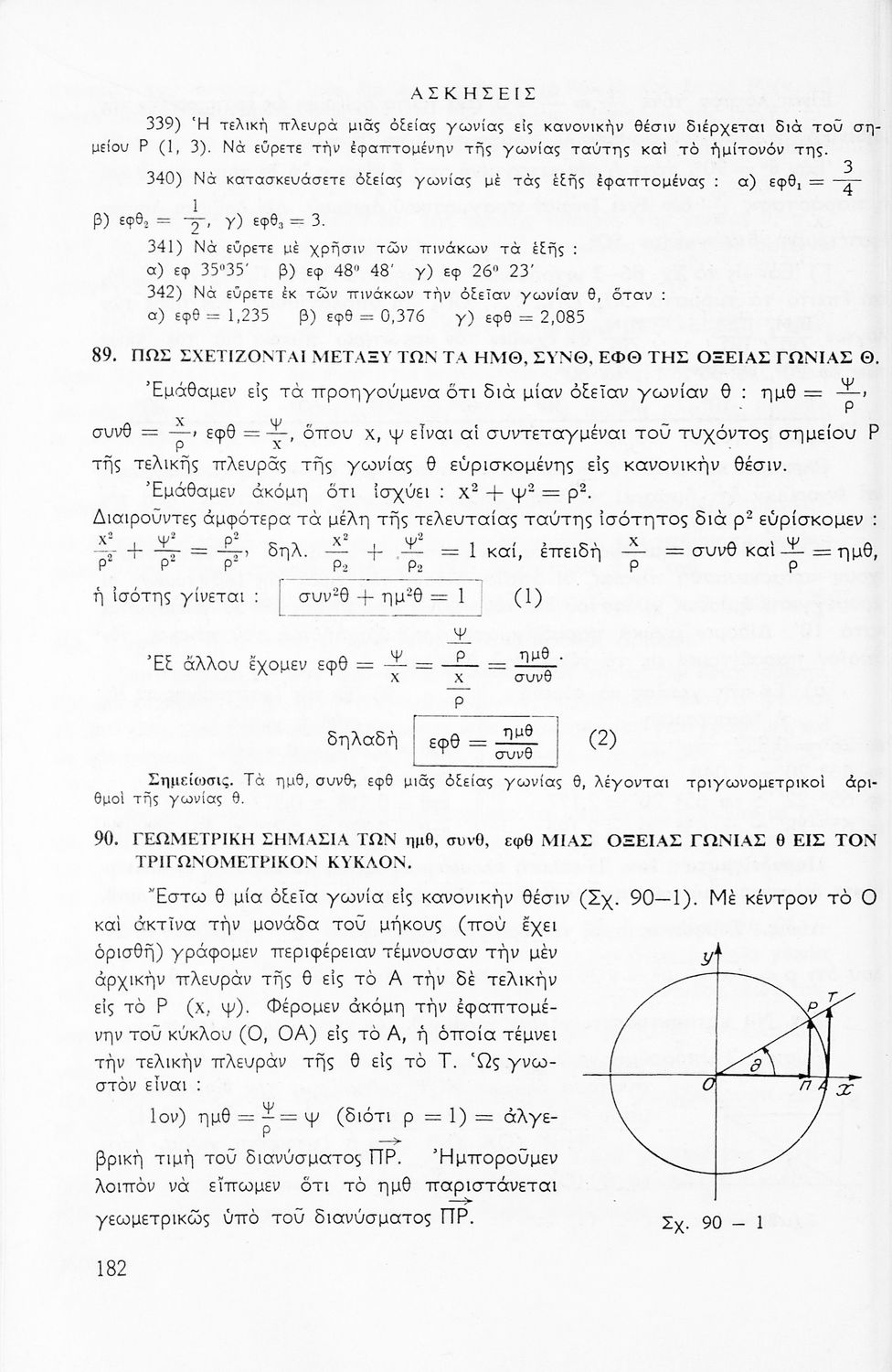 Σχολικό εγχειρίδιο Μαθηματικών για την Ε΄ Γυμνασίου, χωρισμένο σε προβλήματα, εφαρμογές και ασκήσεις, που εστιάζει στην Τριγωνομετρία. Φέρει το σύμβολο της δικτατορίας.