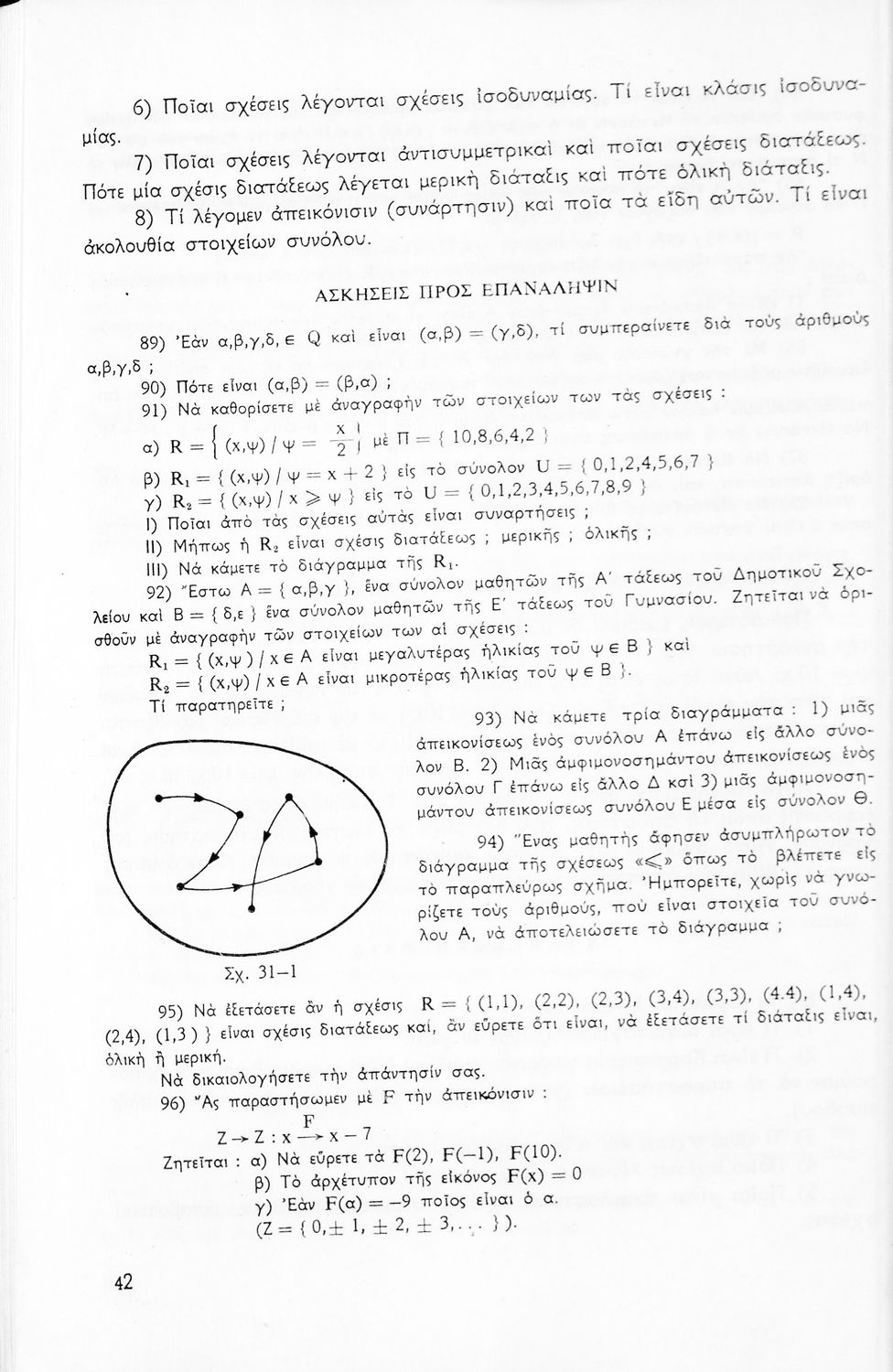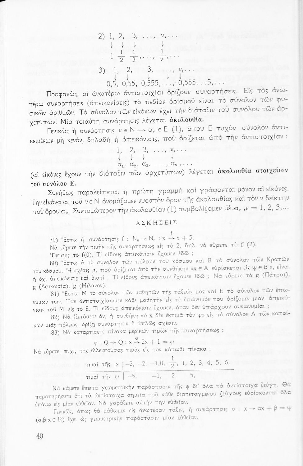 Σχολικό εγχειρίδιο μαθηματικών Γ΄ Γυμνασίου που περιλαμβάνει θεωρία, παραδείγματα και ασκήσεις. Φέρει το σύμβολο της δικτατορίας.