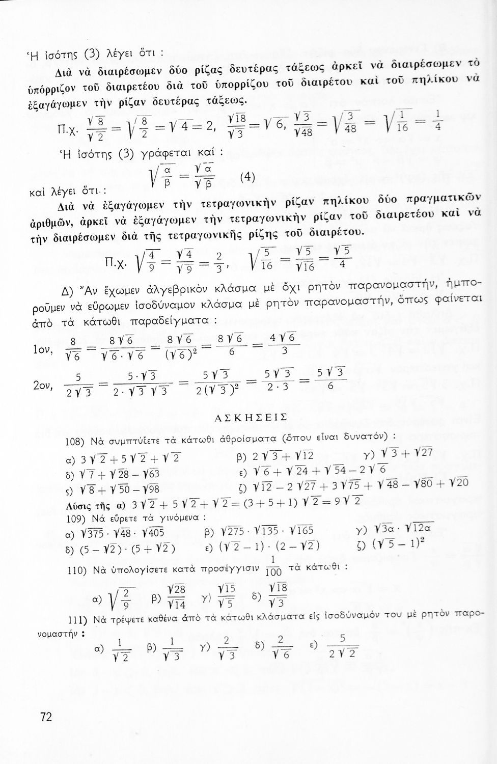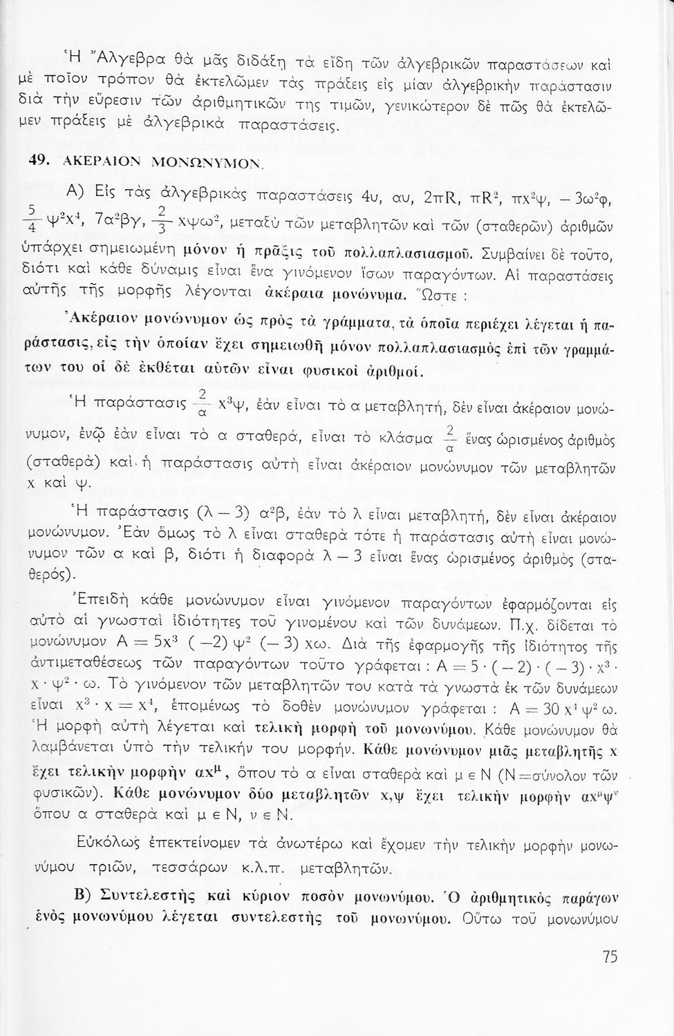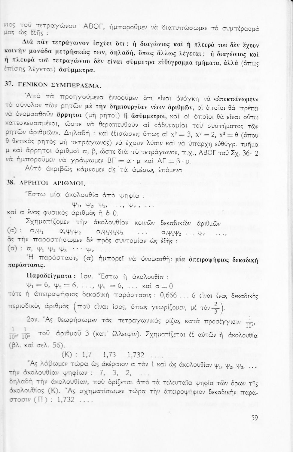 Βαθμίδα εκπαίδευσης: Δευτεροβάθμια Τάξη: Γ' Γυμνασίου Μάθημα: Μαθηματικά Γλώσσα: Απλή καθαρεύουσα Παρουσίαση περιεχομένου: Σχολικό εγχειρίδιο Μαθηματικών Γ΄ Γυμνασίου που περιέχει θεωρία, παραδείγματα και ασκήσεις και περιλαμβάνει Άλγεβρα, Τριγωνομετρία και στοιχεία Περιγραφικής Στατιστικής. Το εγχειρίδιο μεταγλωττίστηκε από τον συγγραφέα και τον Αθ. Ματσούκα. |