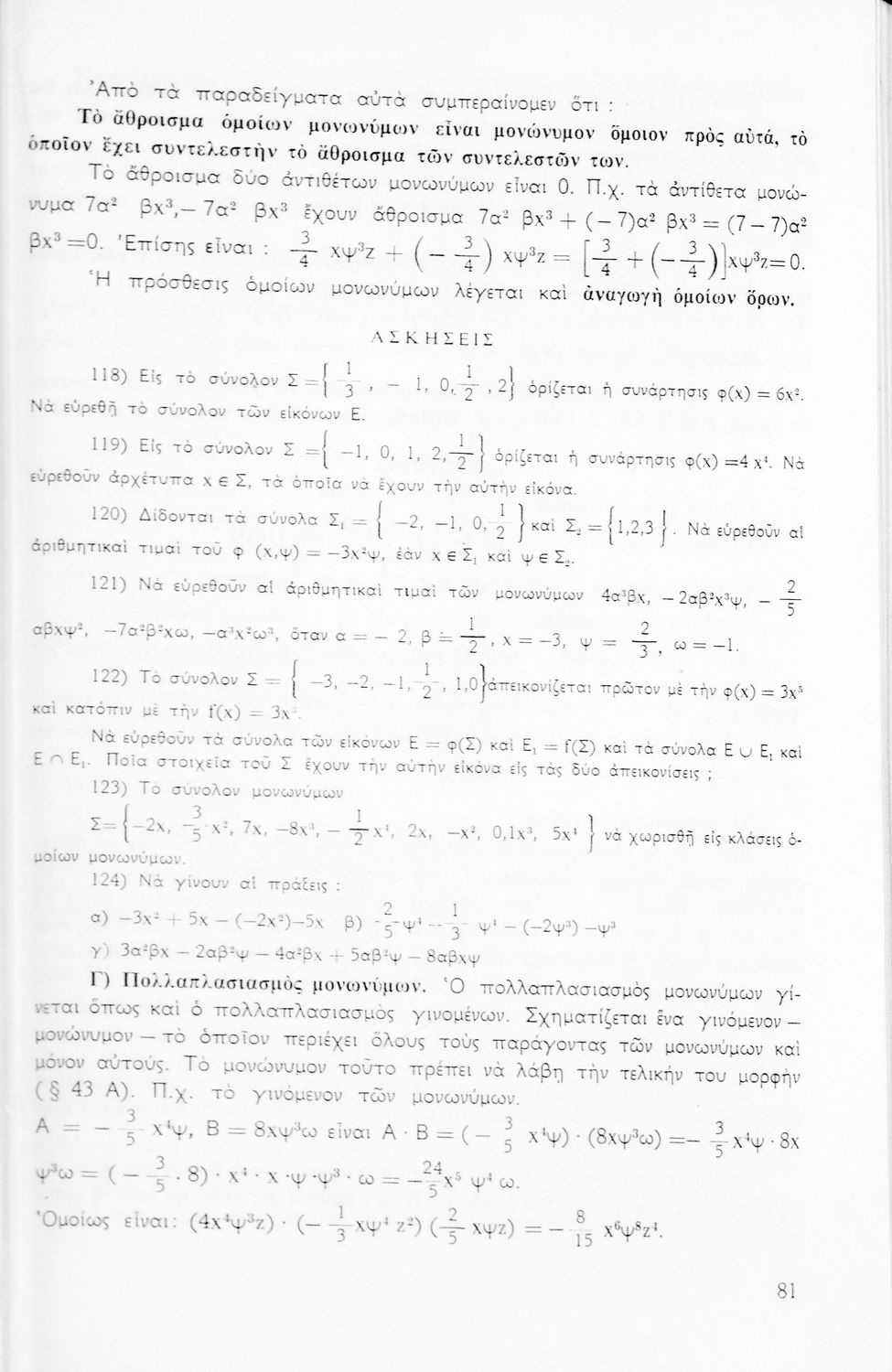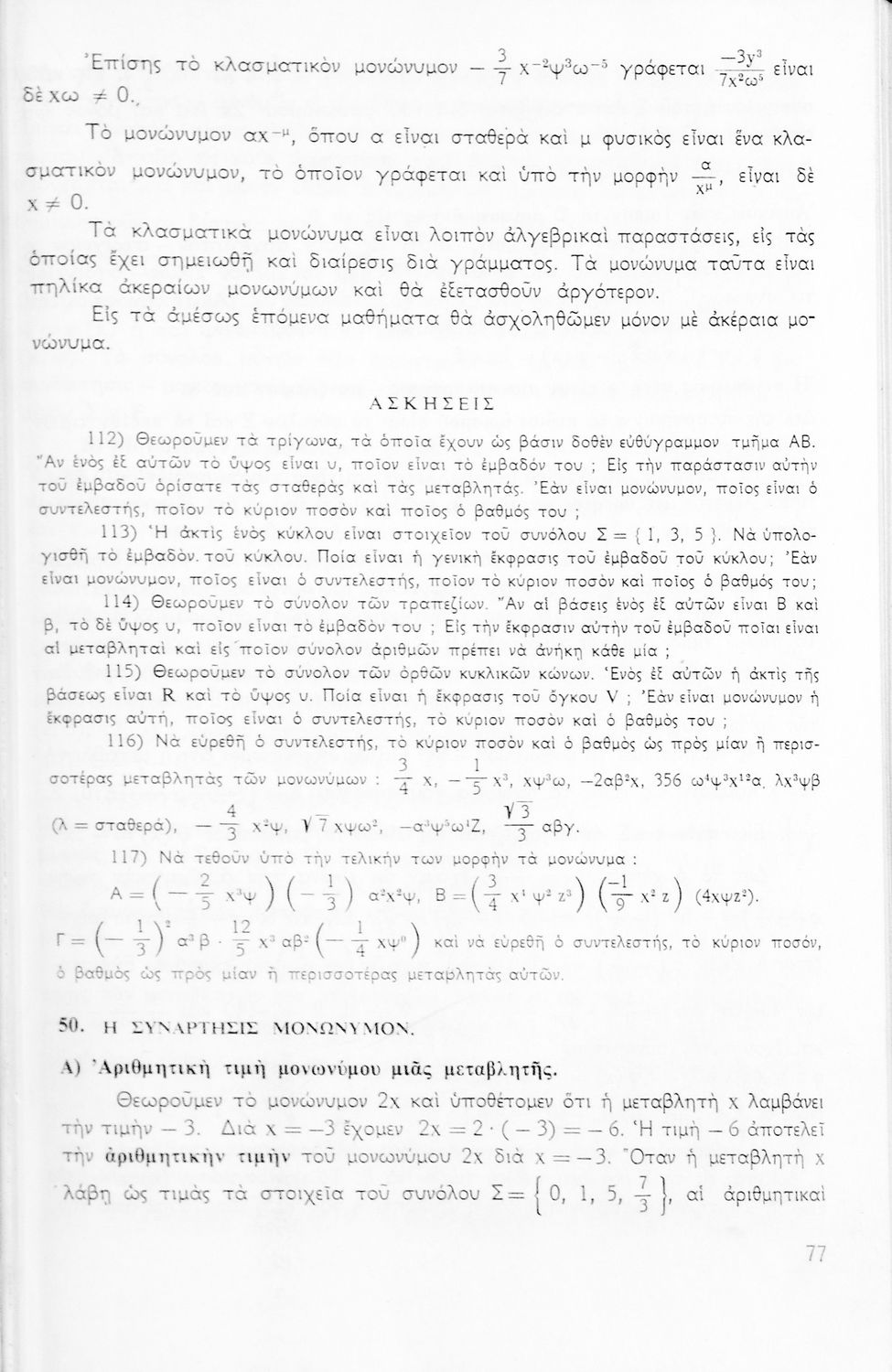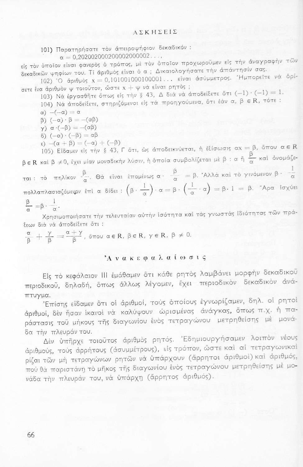 Βαθμίδα εκπαίδευσης: Δευτεροβάθμια Τάξη: Γ' Γυμνασίου Μάθημα: Μαθηματικά Γλώσσα: Απλή καθαρεύουσα Παρουσίαση περιεχομένου: Σχολικό εγχειρίδιο Μαθηματικών Γ΄ Γυμνασίου που περιέχει θεωρία, παραδείγματα και ασκήσεις και περιλαμβάνει Άλγεβρα, Τριγωνομετρία και στοιχεία Περιγραφικής Στατιστικής. Το εγχειρίδιο μεταγλωττίστηκε από τον συγγραφέα και τον Αθ. Ματσούκα. |