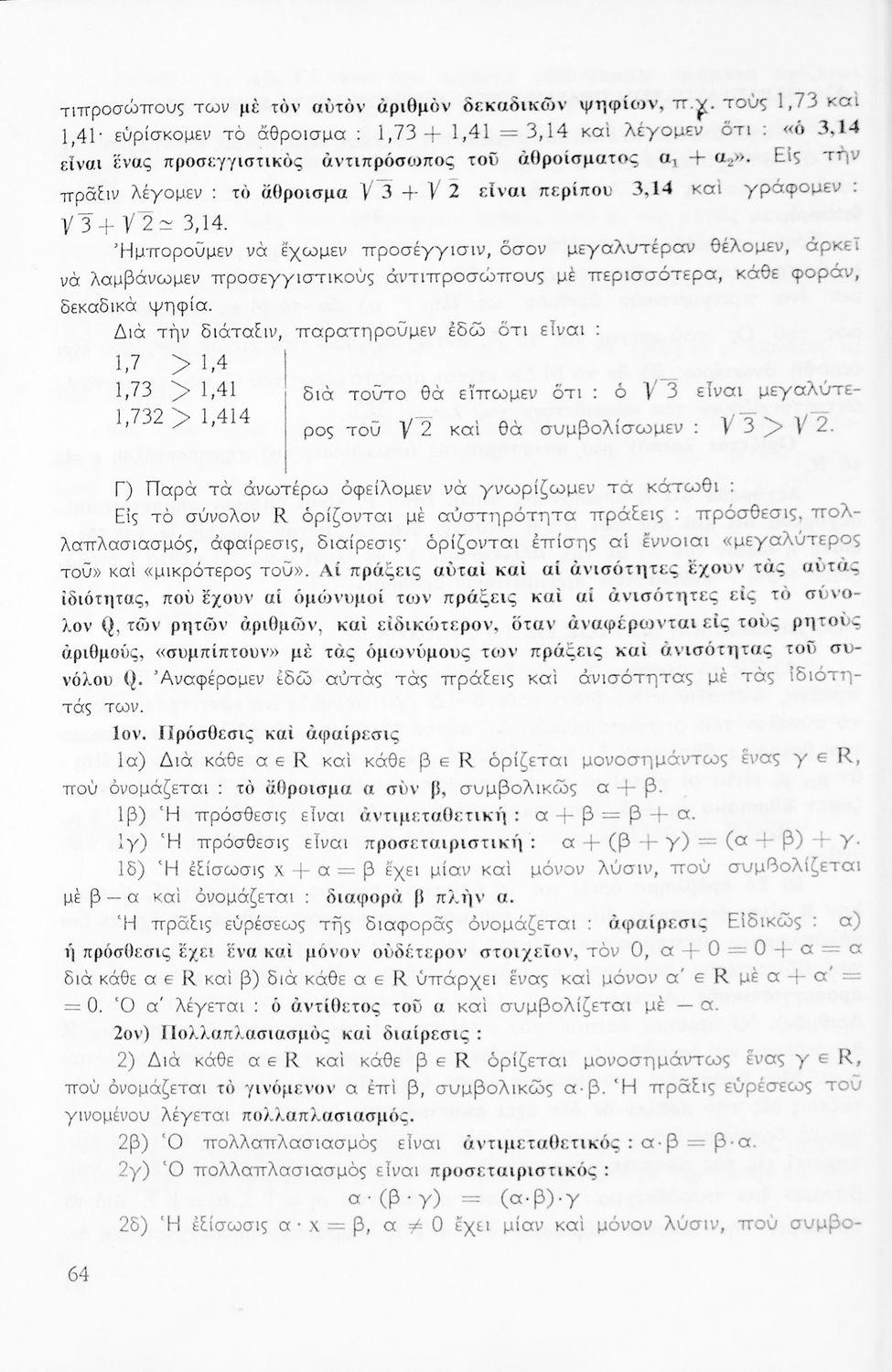 LDR 01340 2200217 4500 035 ## _a01-45025 040 ## _aΙνστιτούτο Εκπαιδευτικής Πολιτικής 041 ## _ael 100 ## _aΓ. Μπούσγος _aΙ. Ταμβακλής 110 ## _a45025 245 0# _aΜαθηματικά Γ΄ Γυμνασίου, τόμος Α 250 ## _a1η Έκδοση 260 ## _aΑθήνα _bΟργανισμός Εκδόσεως Διδακτικών Βιβλίων _c1968 300 ## _a214 _bΣκίτσα (ασπρόμαυρα) _c23 520 ## _aΣχολικό εγχειρίδιο Μαθηματικών Γ΄ Γυμνασίου που περιέχει θεωρία, παραδείγματα και ασκήσεις και περιλαμβάνει Άλγεβρα, Τριγωνομετρία και στοιχεία Περιγραφικής Στατιστικής. Το εγχειρίδιο μεταγλωττίστηκε από τον συγγραφέα και τον Αθ. Ματσούκα. 521 ## _aΓ' Γυμνασίου 522 ## _aΕλλάδα 546 ## _aΑπλή καθαρεύουσα 563 ## _aΜαλακό Εξώφυλλο 583 ## _a57338/26-4-1968 _c1968 650 #4 _aΑλγεβρικές παραστάσεις _aΕξισώσεις _aΗμίτονο _aΣτατιστικά δεδομένα _aΣυνημίτονο