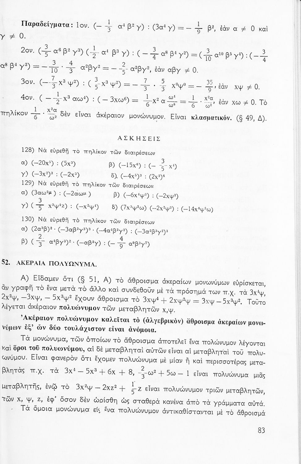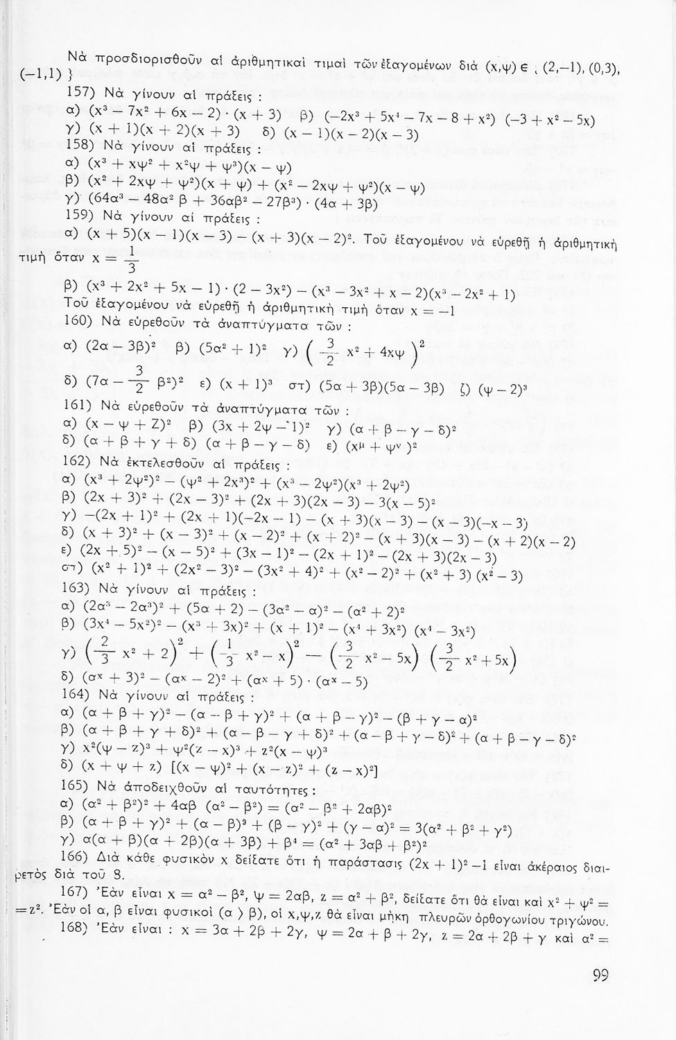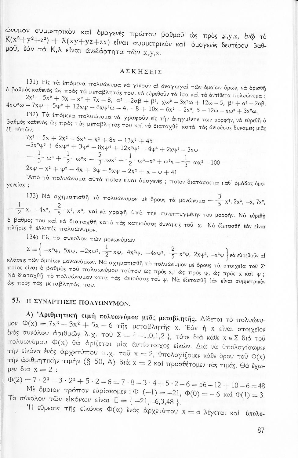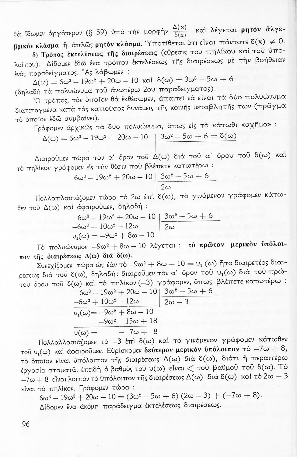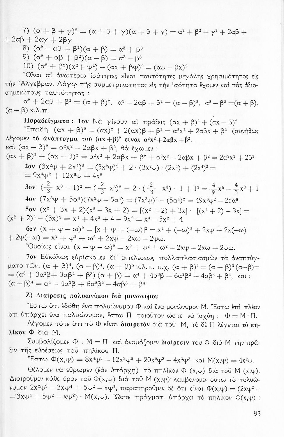 Βαθμίδα εκπαίδευσης: Δευτεροβάθμια Τάξη: Γ' Γυμνασίου Μάθημα: Μαθηματικά Γλώσσα: Απλή καθαρεύουσα Παρουσίαση περιεχομένου: Σχολικό εγχειρίδιο Μαθηματικών Γ΄ Γυμνασίου που περιέχει θεωρία, παραδείγματα και ασκήσεις και περιλαμβάνει Άλγεβρα, Τριγωνομετρία και στοιχεία Περιγραφικής Στατιστικής. Το εγχειρίδιο μεταγλωττίστηκε από τον συγγραφέα και τον Αθ. Ματσούκα. |