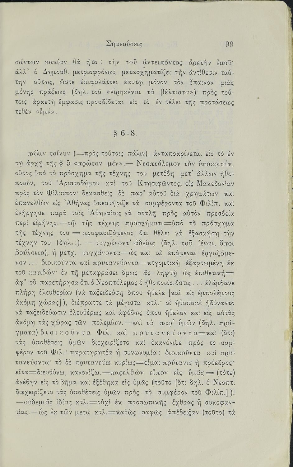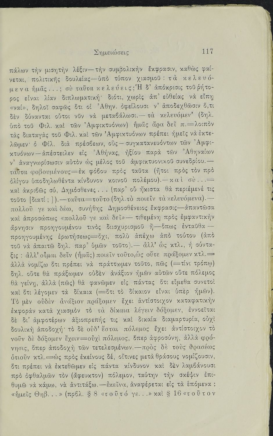 Σχολικό εγχειρίδιο Αρχαίων Ελληνικών Ε΄ Γυμνασίου που περιλαμβάνει τους Λόγους του Δημοσθένη A΄ κατά Φιλίππου, Ο περί ειρήνης και Β΄ κατά Φιλίππου, και ερμηνευτικές, πραγματολογικές και λεξιλογικές παρατηρήσεις.