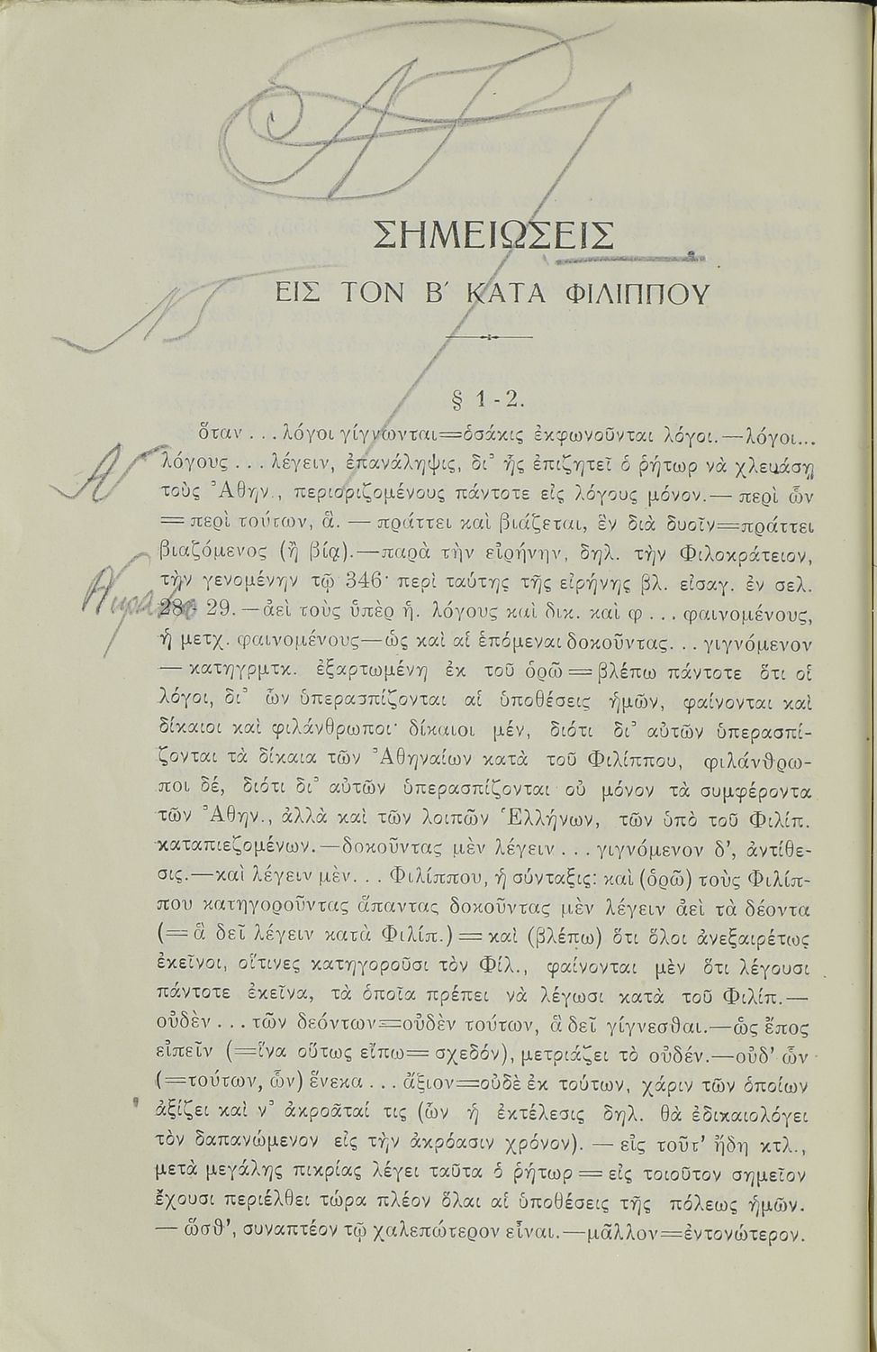 Τίτλος: Δημοσθένους ο A΄ κατά Φιλίππου, Ο περί ειρήνης και Β΄ κατά Φιλίππου. Δια την Ε΄ Τάξιν των Γυμνασίων