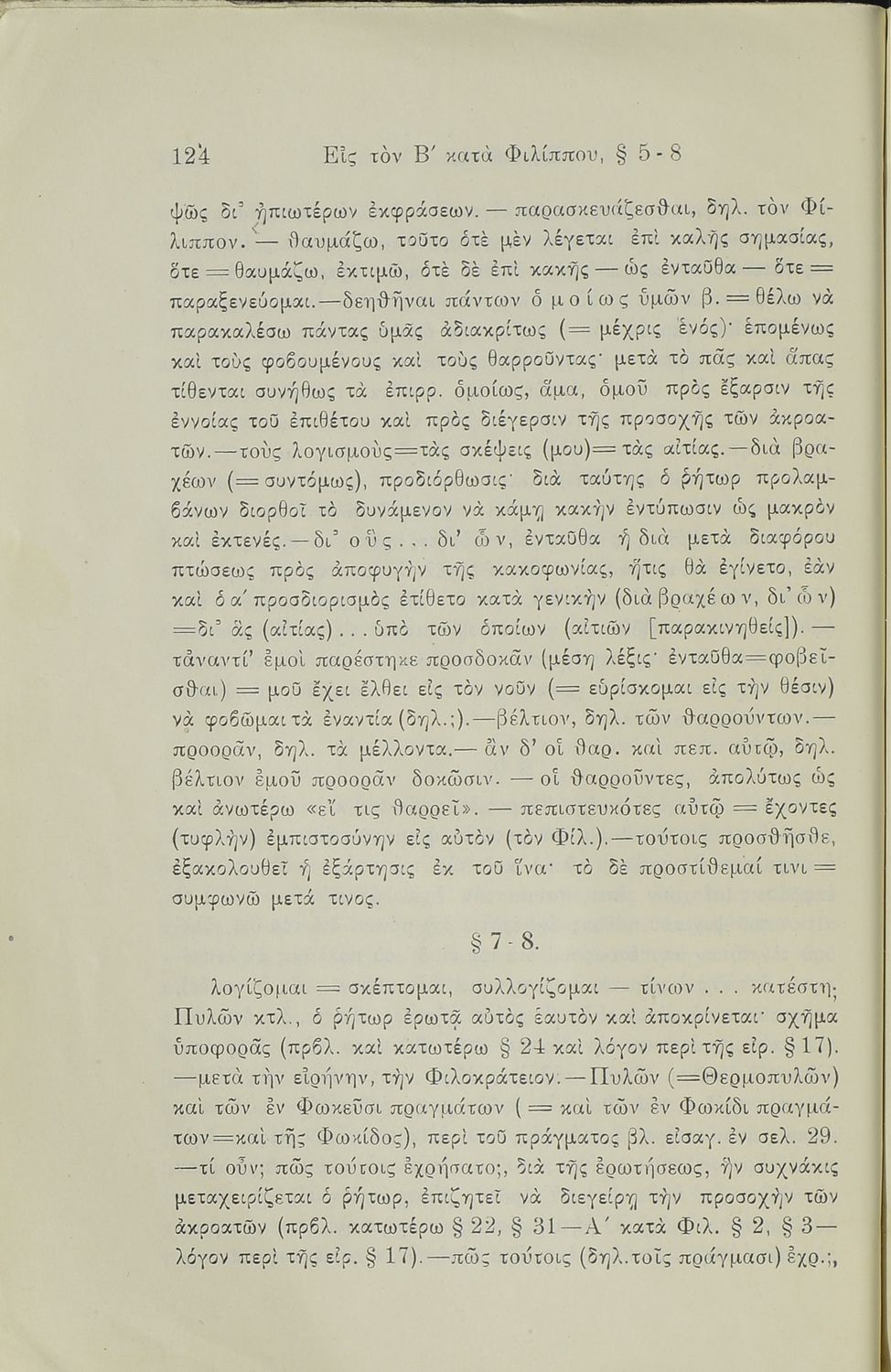 Σχολικό εγχειρίδιο Αρχαίων Ελληνικών Ε΄ Γυμνασίου που περιλαμβάνει τους Λόγους του Δημοσθένη A΄ κατά Φιλίππου, Ο περί ειρήνης και Β΄ κατά Φιλίππου, και ερμηνευτικές, πραγματολογικές και λεξιλογικές παρατηρήσεις.