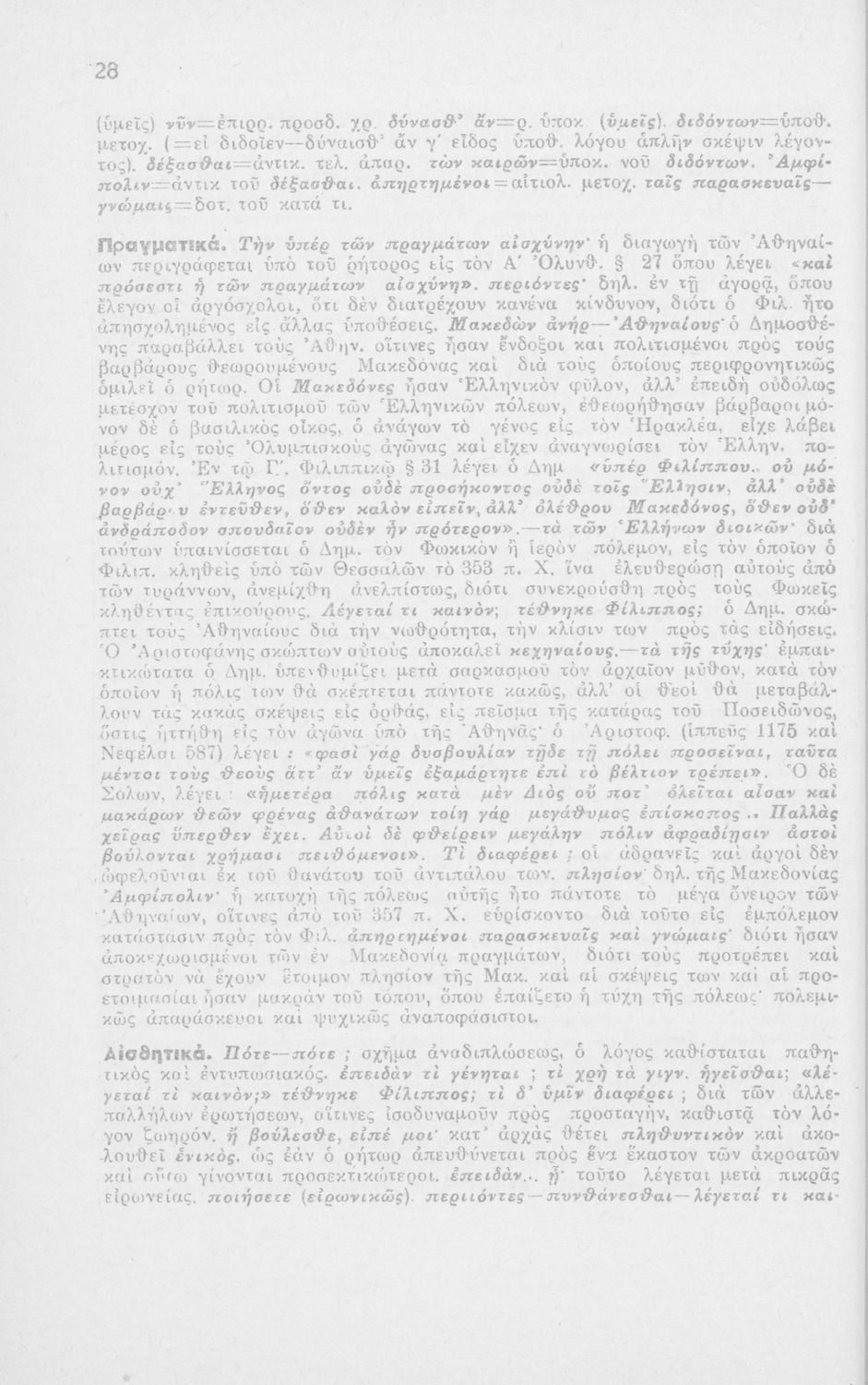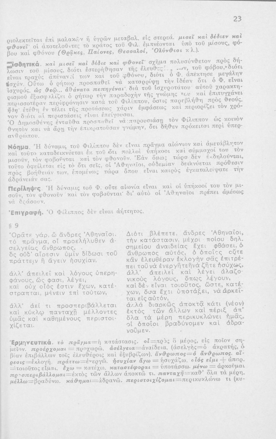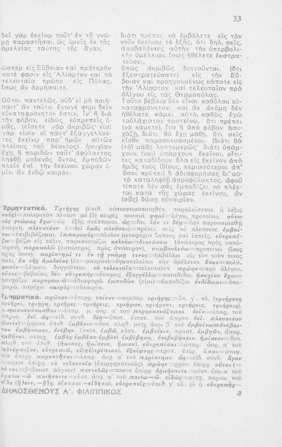 Μαθητικό βοήθημα Αρχαίων Ελληνικών ΣΤ΄ Οκταταξίου Γυμνασίου που περιέχει τον Α΄ Φιλιππικό του Δημοσθένη, μετάφραση, γραμματικά και συντακτικά σχόλια.