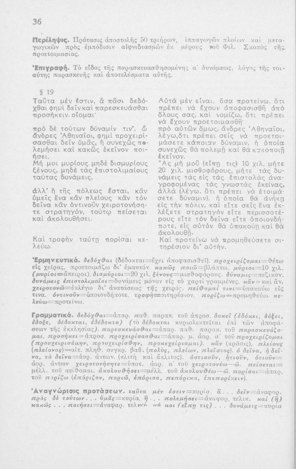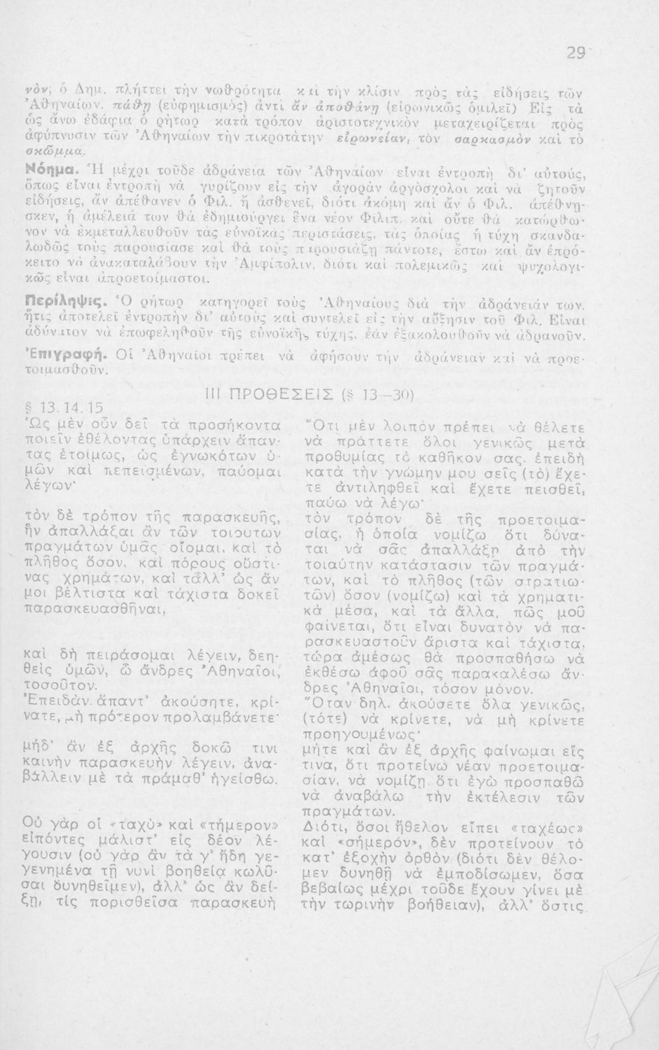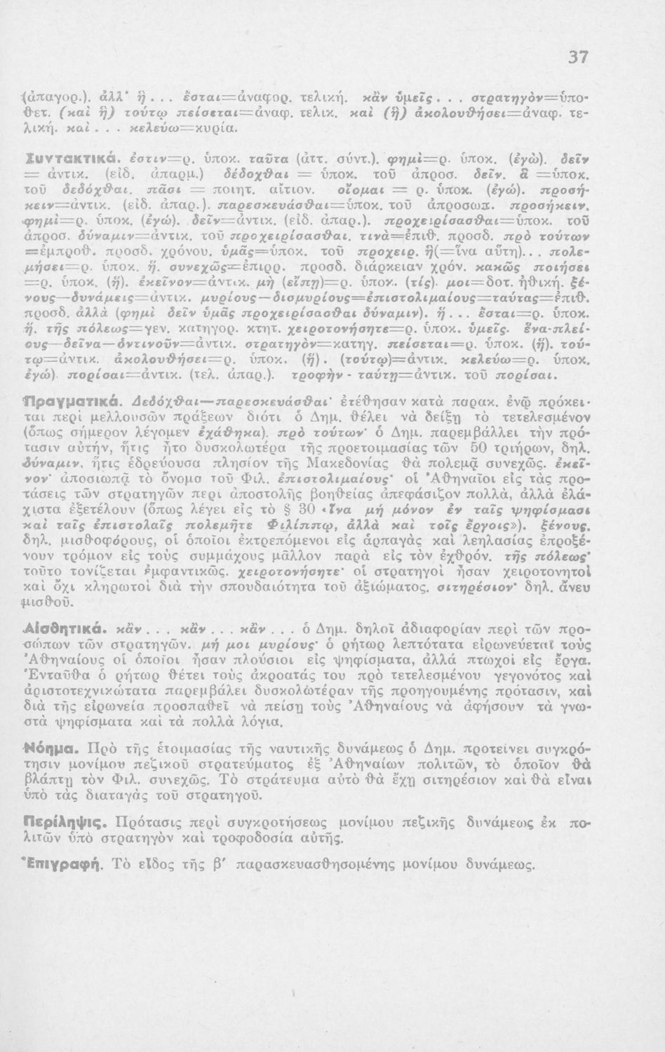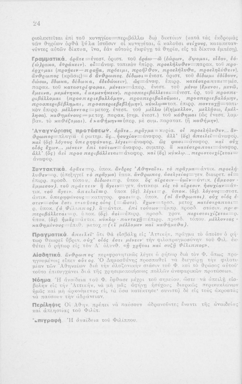 Μαθητικό βοήθημα Αρχαίων Ελληνικών ΣΤ΄ Οκταταξίου Γυμνασίου που περιέχει τον Α΄ Φιλιππικό του Δημοσθένη, μετάφραση, γραμματικά και συντακτικά σχόλια.