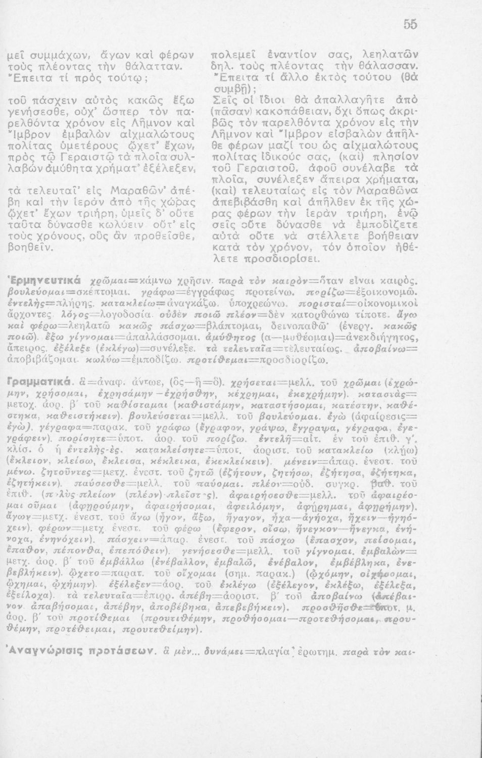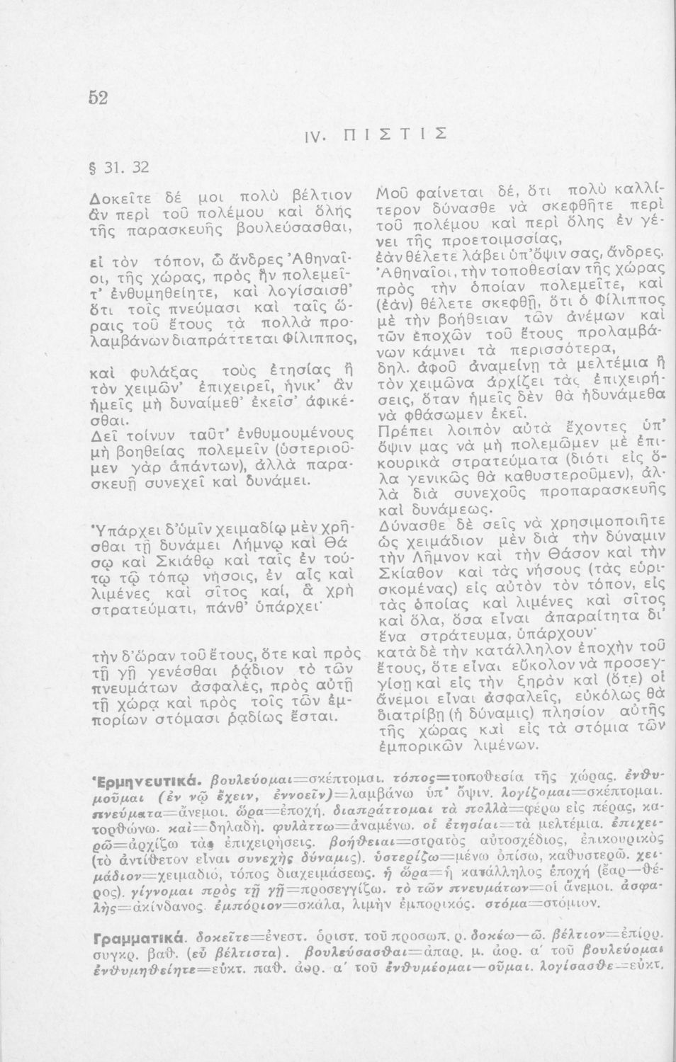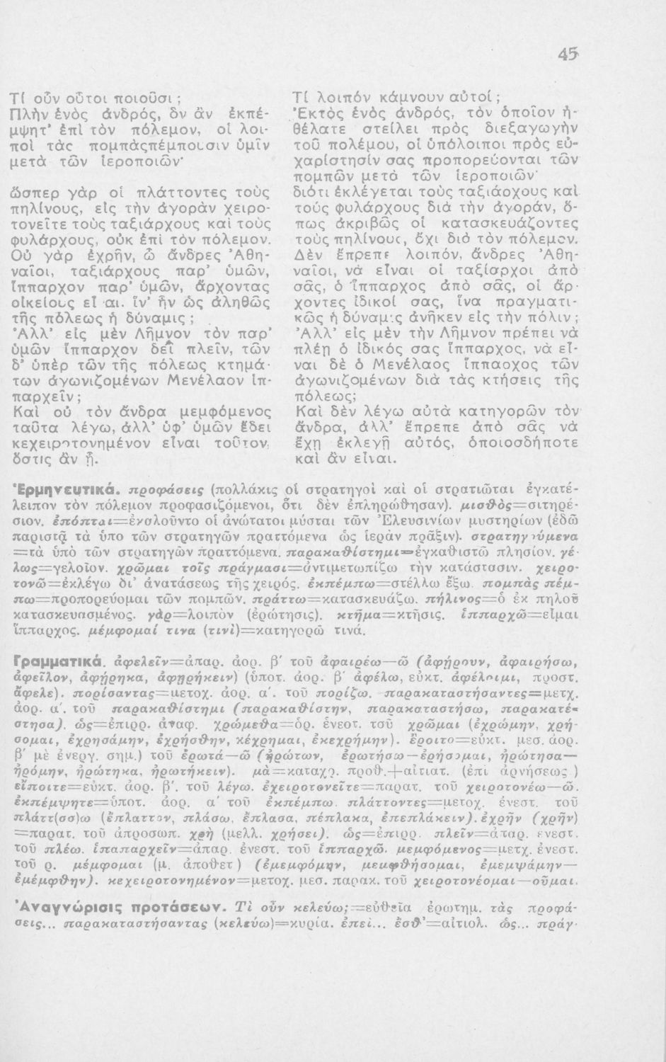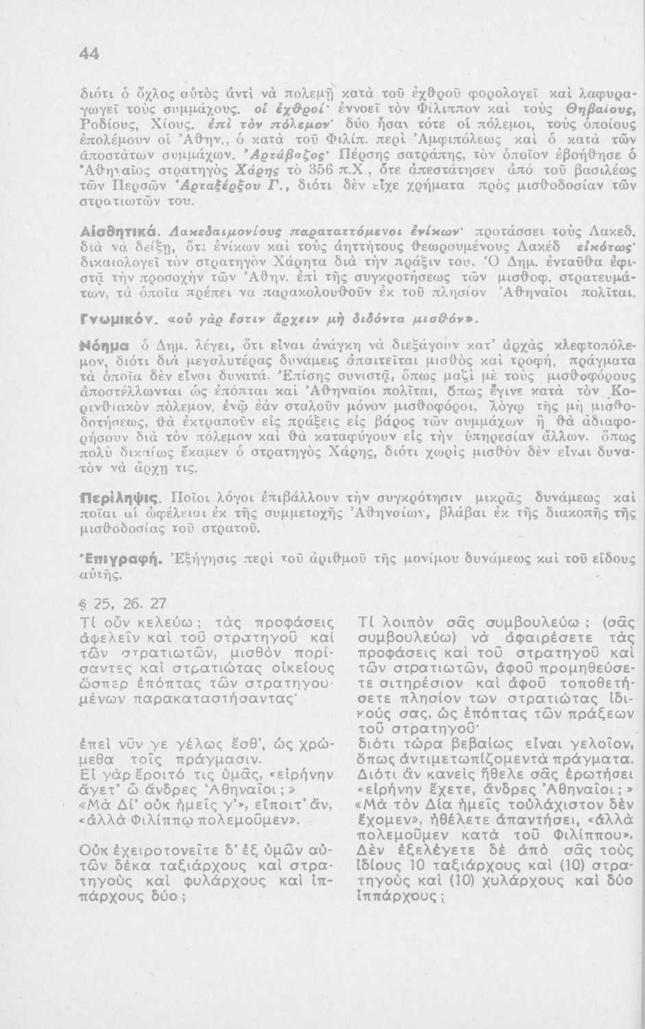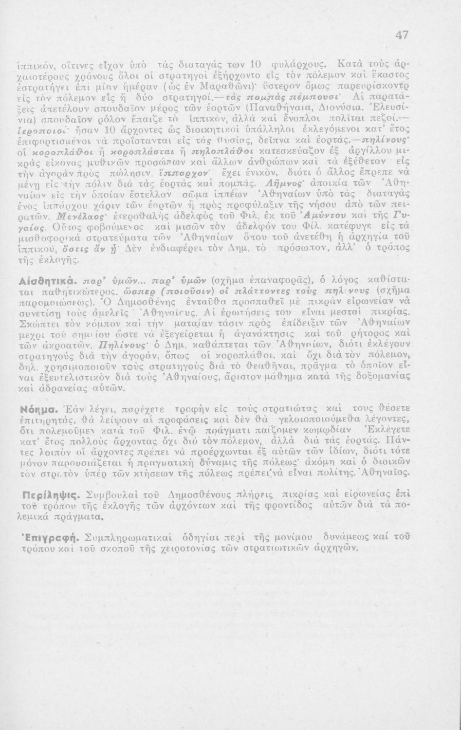 Μαθητικό βοήθημα Αρχαίων Ελληνικών ΣΤ΄ Οκταταξίου Γυμνασίου που περιέχει τον Α΄ Φιλιππικό του Δημοσθένη, μετάφραση, γραμματικά και συντακτικά σχόλια.