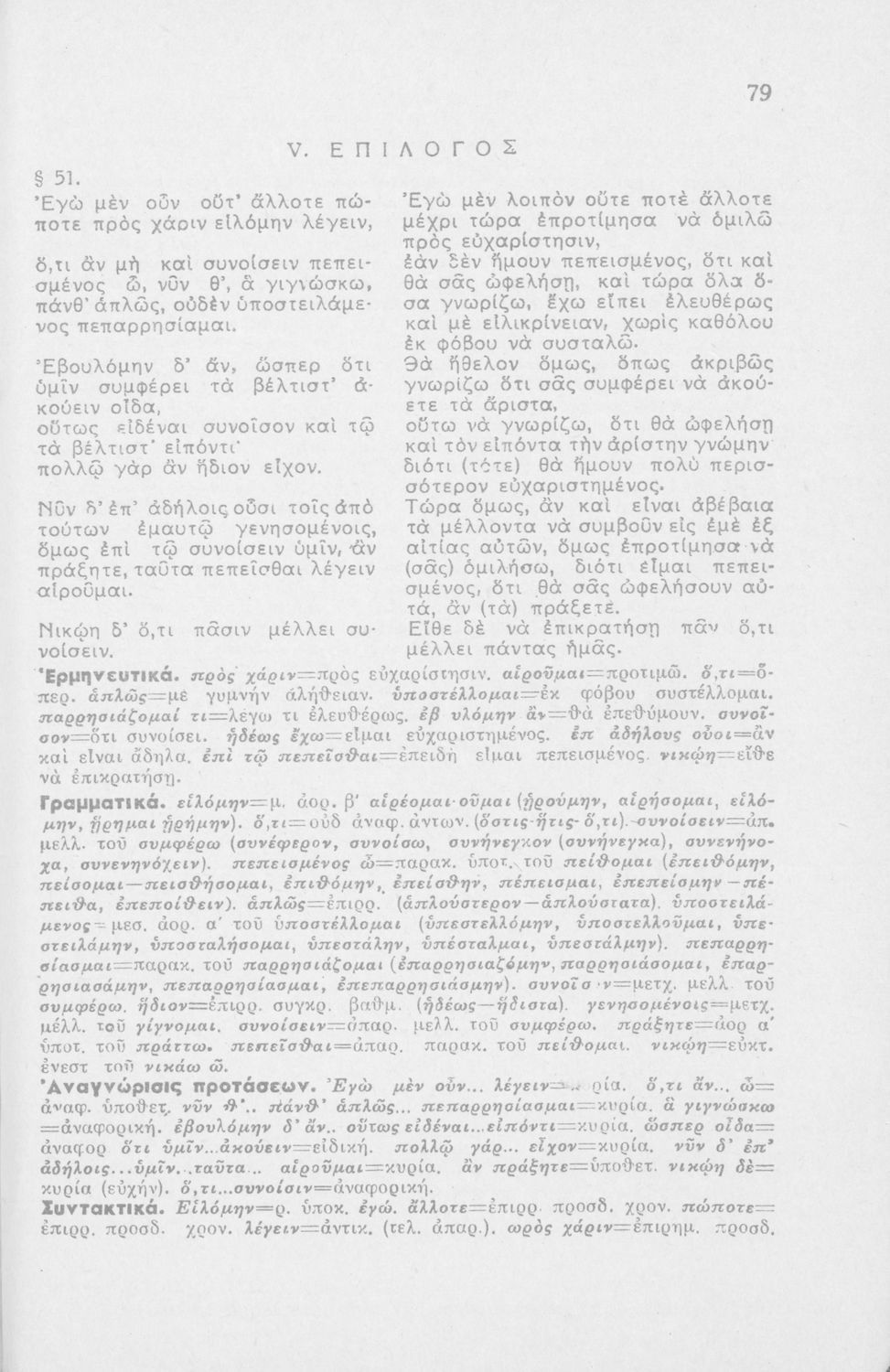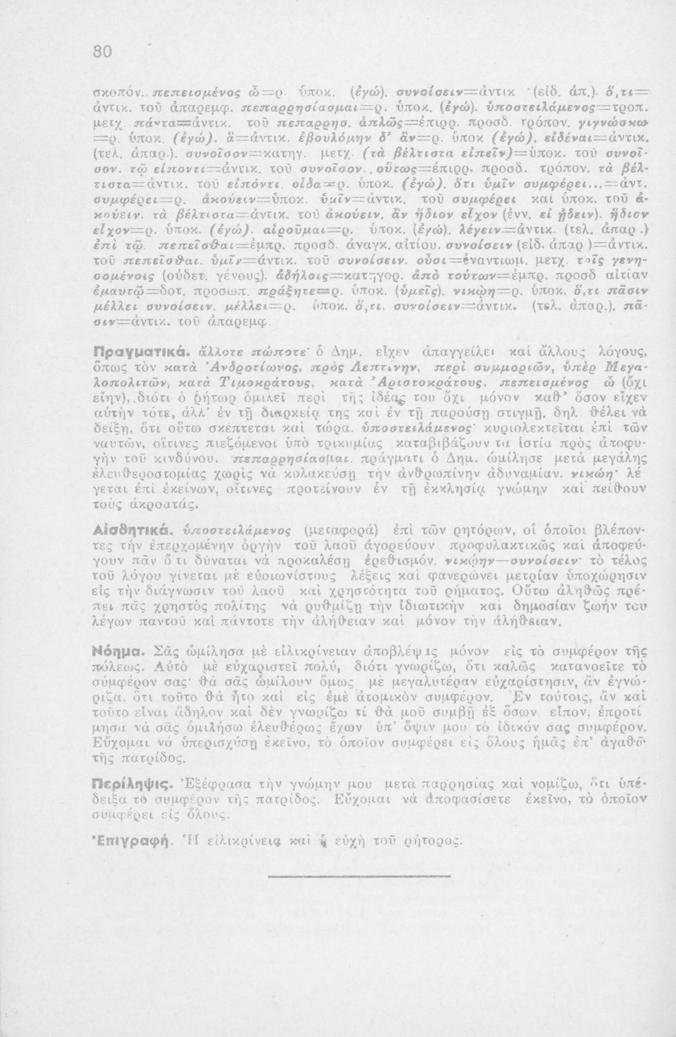 Μαθητικό βοήθημα Αρχαίων Ελληνικών ΣΤ΄ Οκταταξίου Γυμνασίου που περιέχει τον Α΄ Φιλιππικό του Δημοσθένη, μετάφραση, γραμματικά και συντακτικά σχόλια.