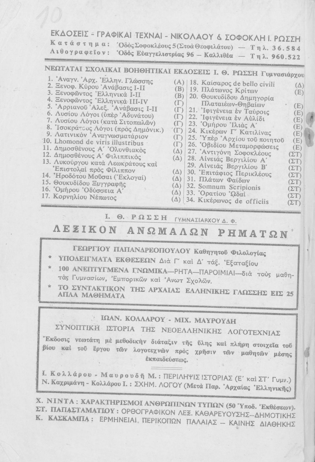 Εκδότης: Νικόλαος και Σοφοκλής Ι. Ρώσσης Τόπος έκδοσης: Αθήνα |
