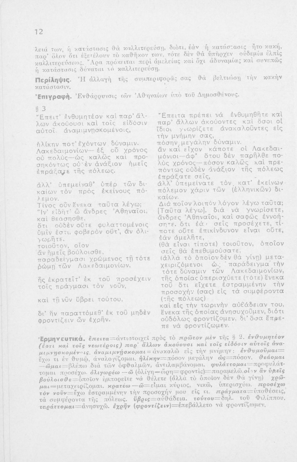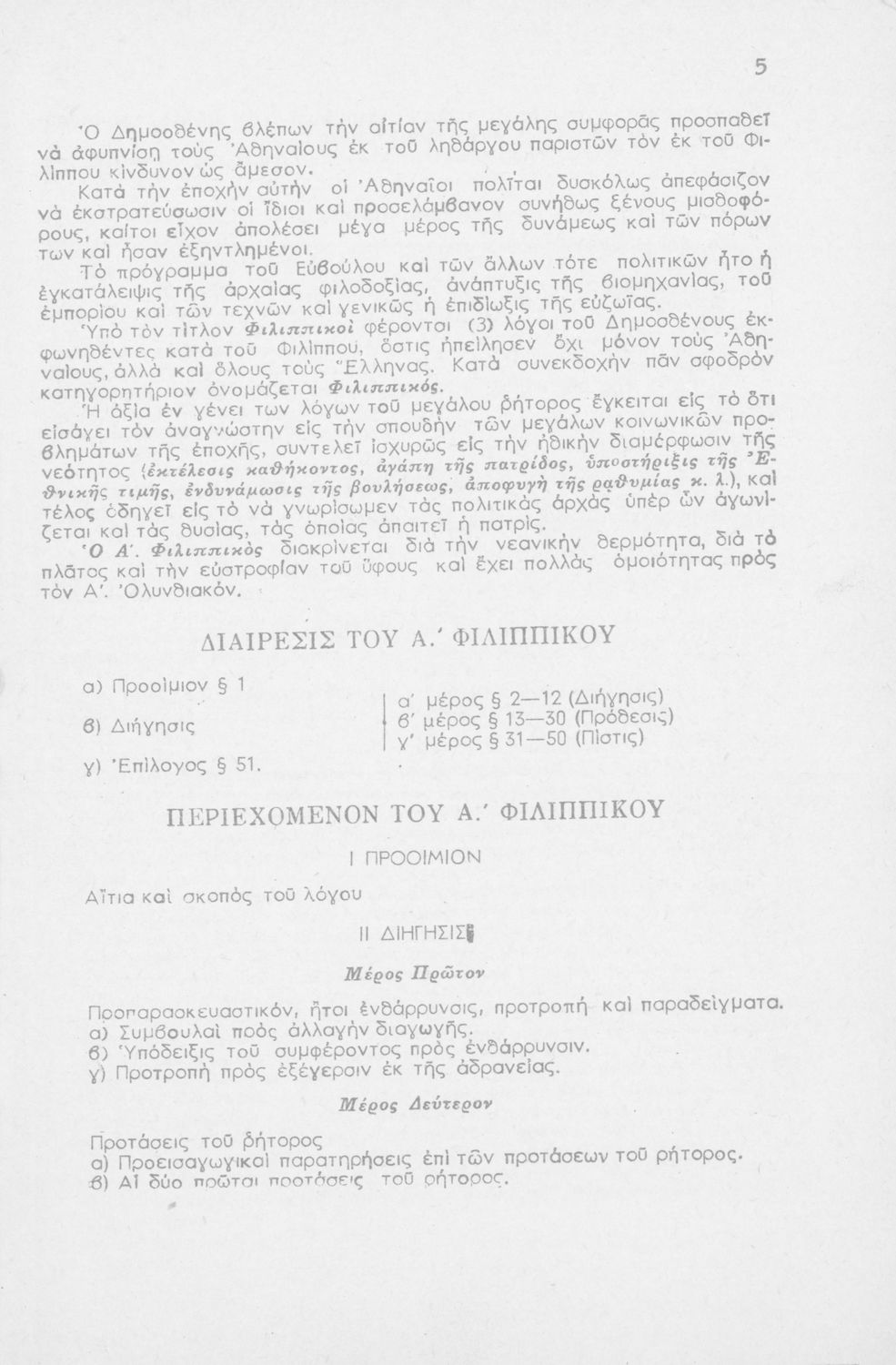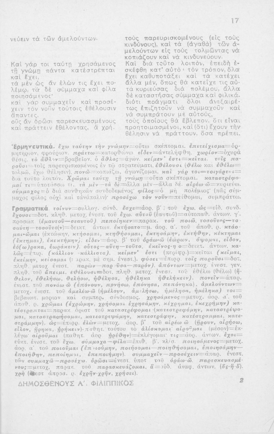 Μαθητικό βοήθημα Αρχαίων Ελληνικών ΣΤ΄ Οκταταξίου Γυμνασίου που περιέχει τον Α΄ Φιλιππικό του Δημοσθένη, μετάφραση, γραμματικά και συντακτικά σχόλια.