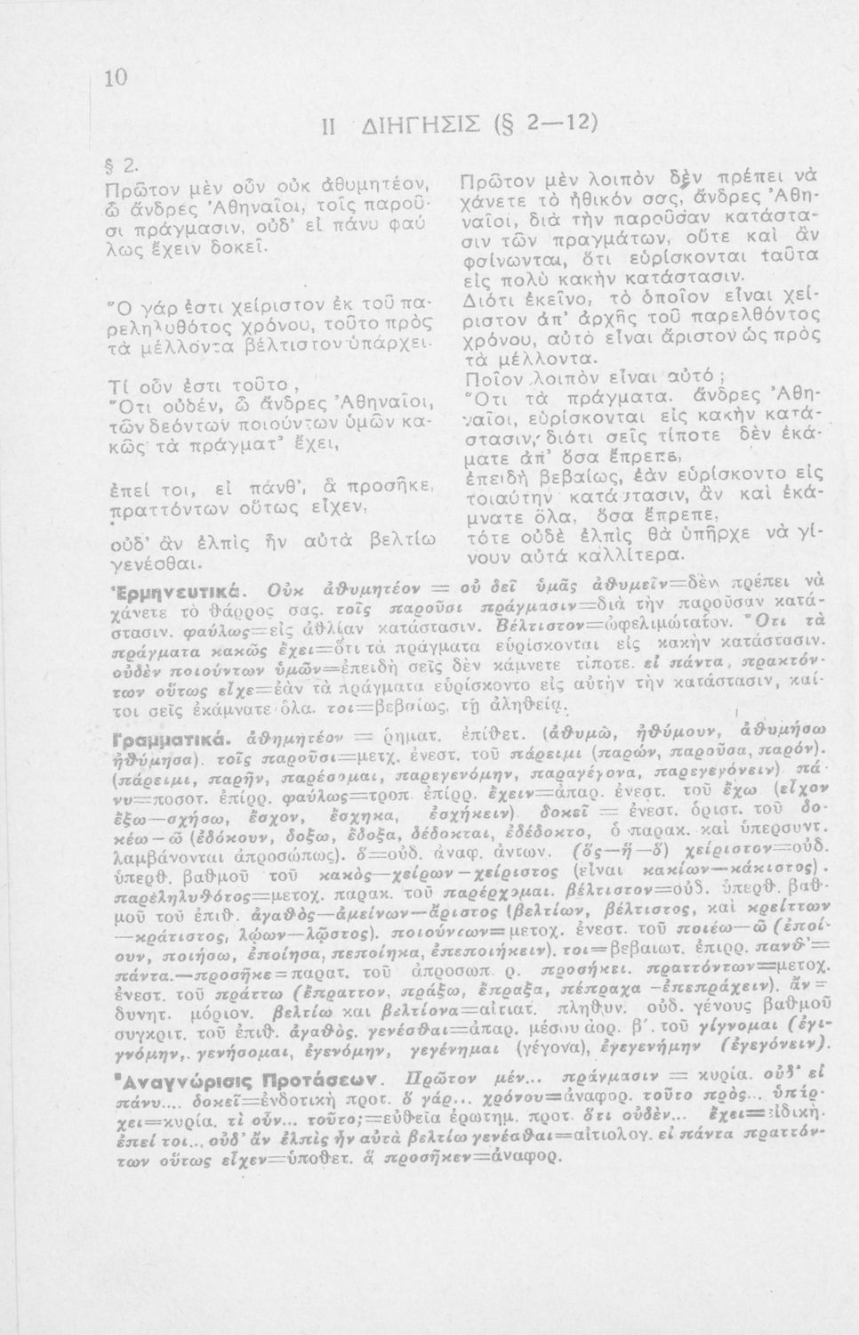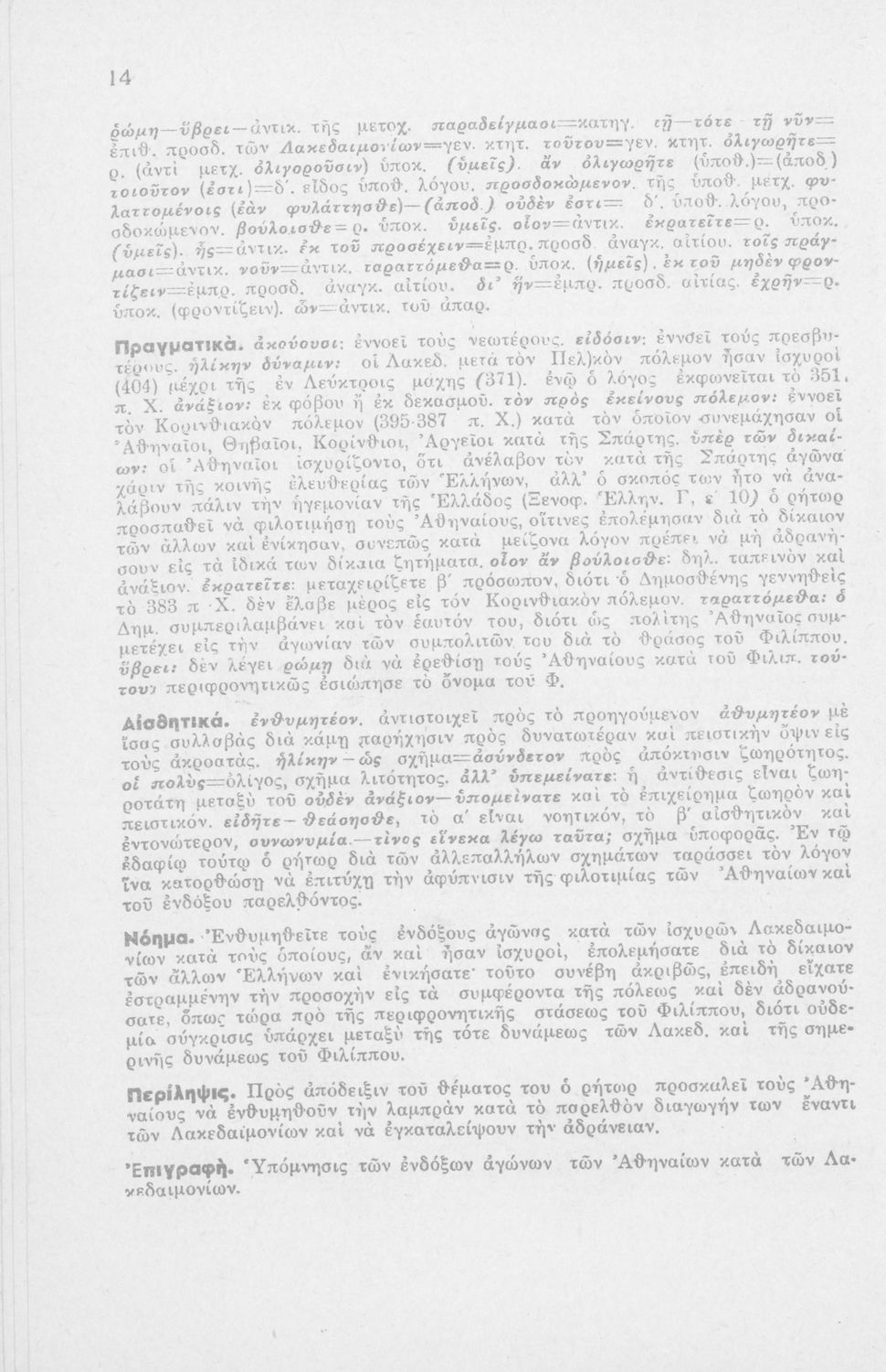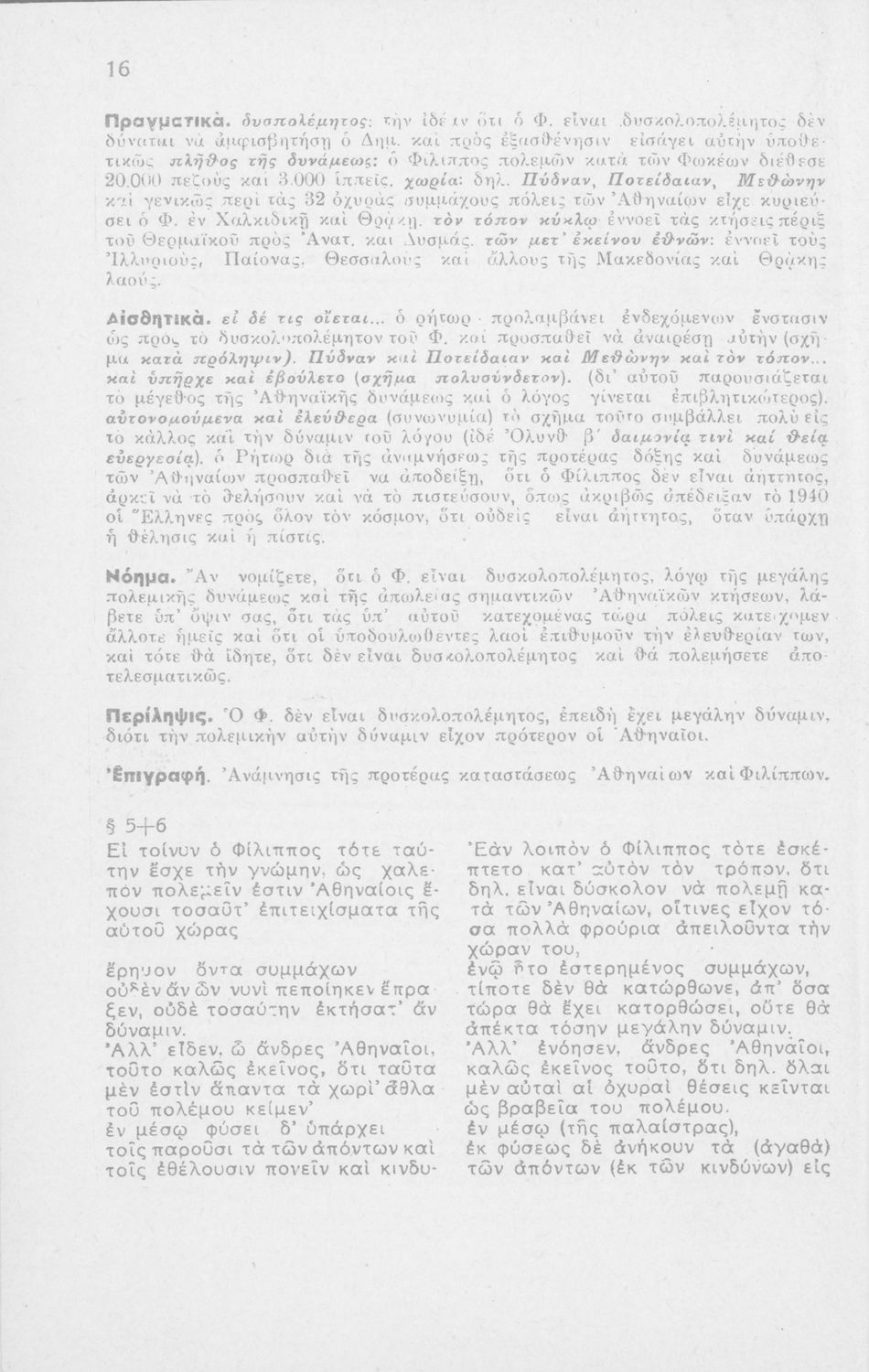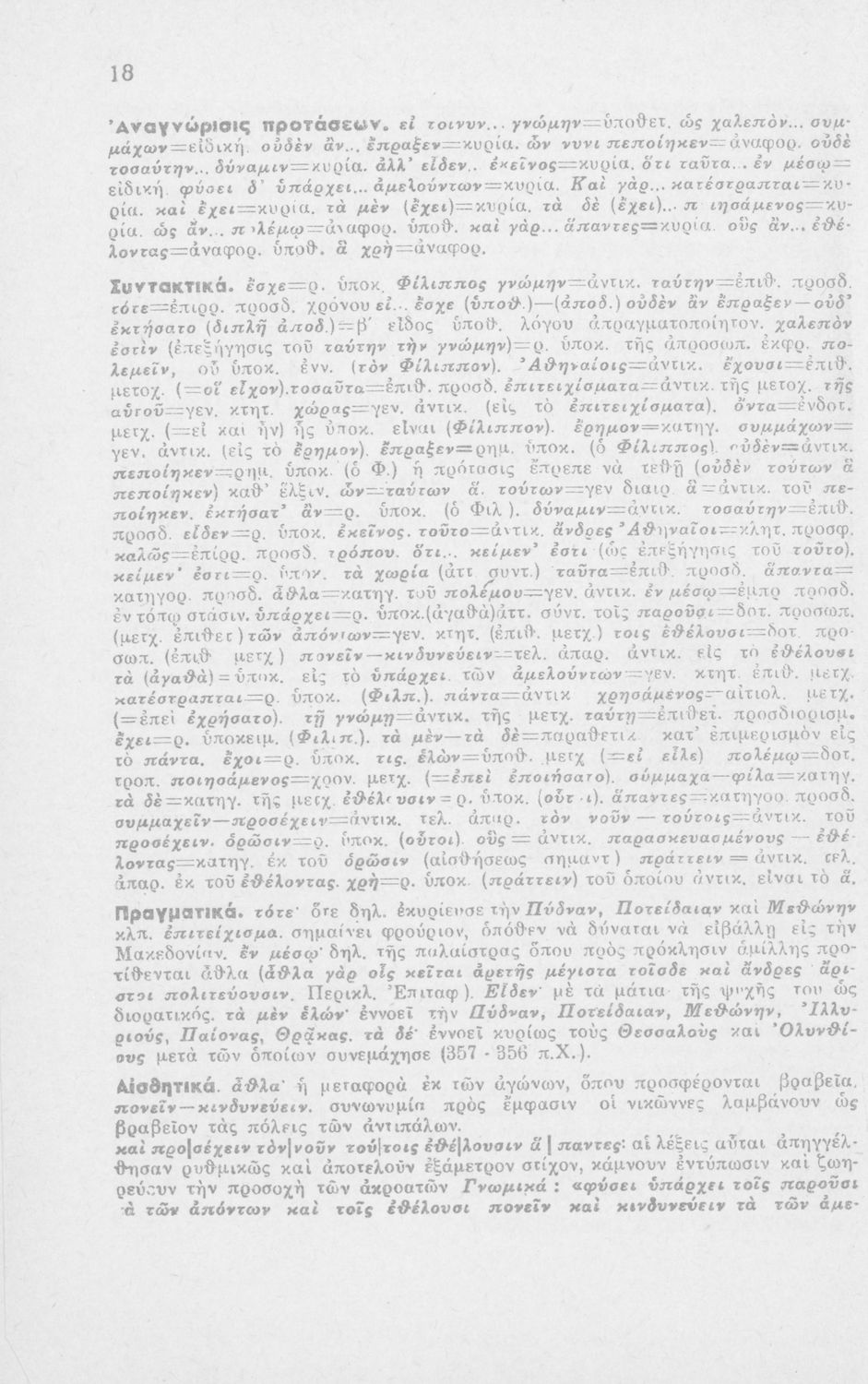 Μαθητικό βοήθημα Αρχαίων Ελληνικών ΣΤ΄ Οκταταξίου Γυμνασίου που περιέχει τον Α΄ Φιλιππικό του Δημοσθένη, μετάφραση, γραμματικά και συντακτικά σχόλια.