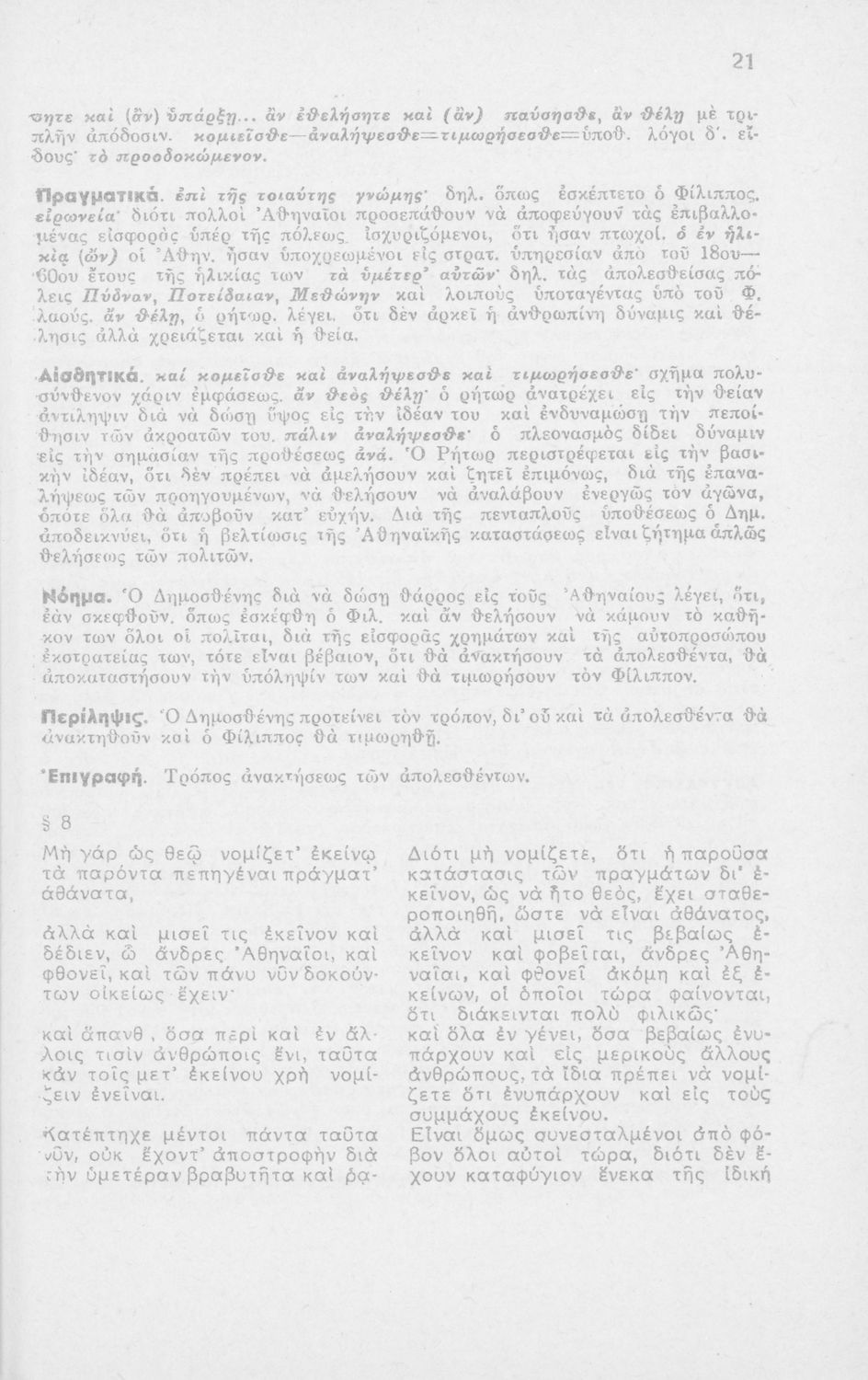 Δημοσθένους Α΄ Φιλιππικός δια τους μαθητάς της ΣΤ΄ τάξεως των Οκταταξίων Γυμνασίων κατά το εγκεκριμένον βιβλίον του Ο.Ε.Σ.Β.