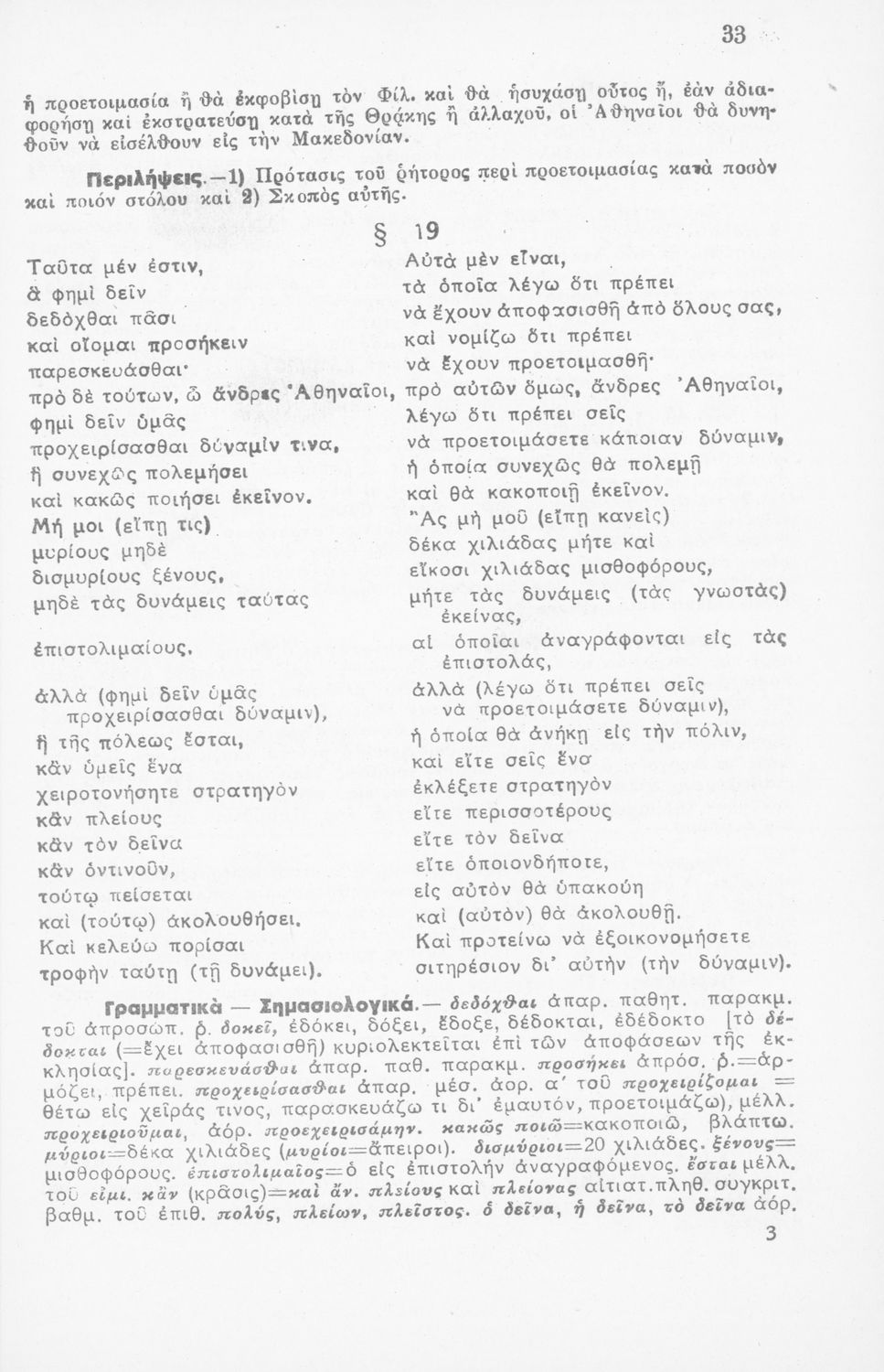 Μαθητικό βοήθημα Αρχαίων Ελληνικών ΣΤ΄ Οκταταξίου Γυμνασίου που περιέχει τον Α΄ Φιλιππικό του Δημοσθένη, μετάφραση, γραμματικά και συντακτικά σχόλια.