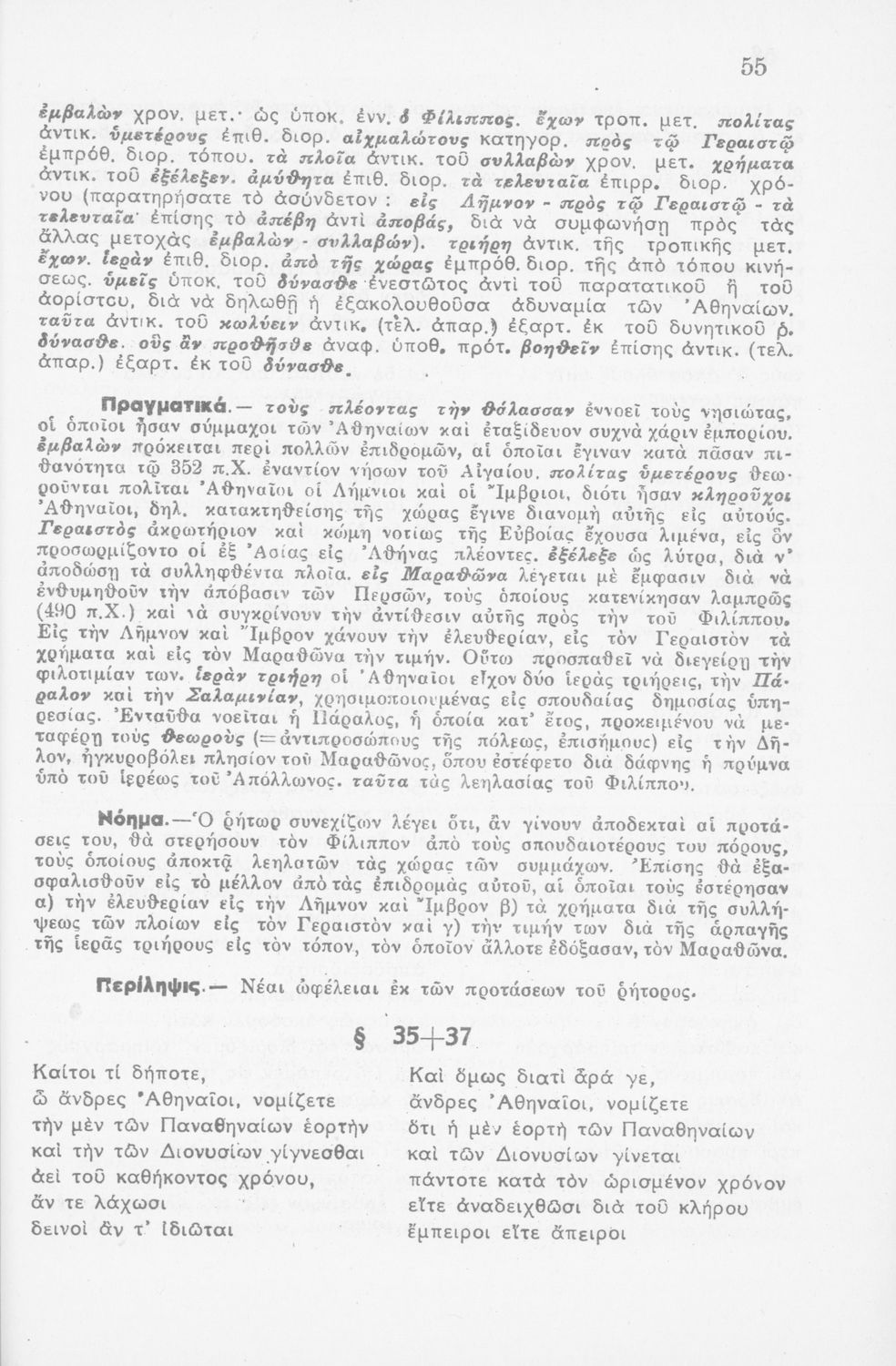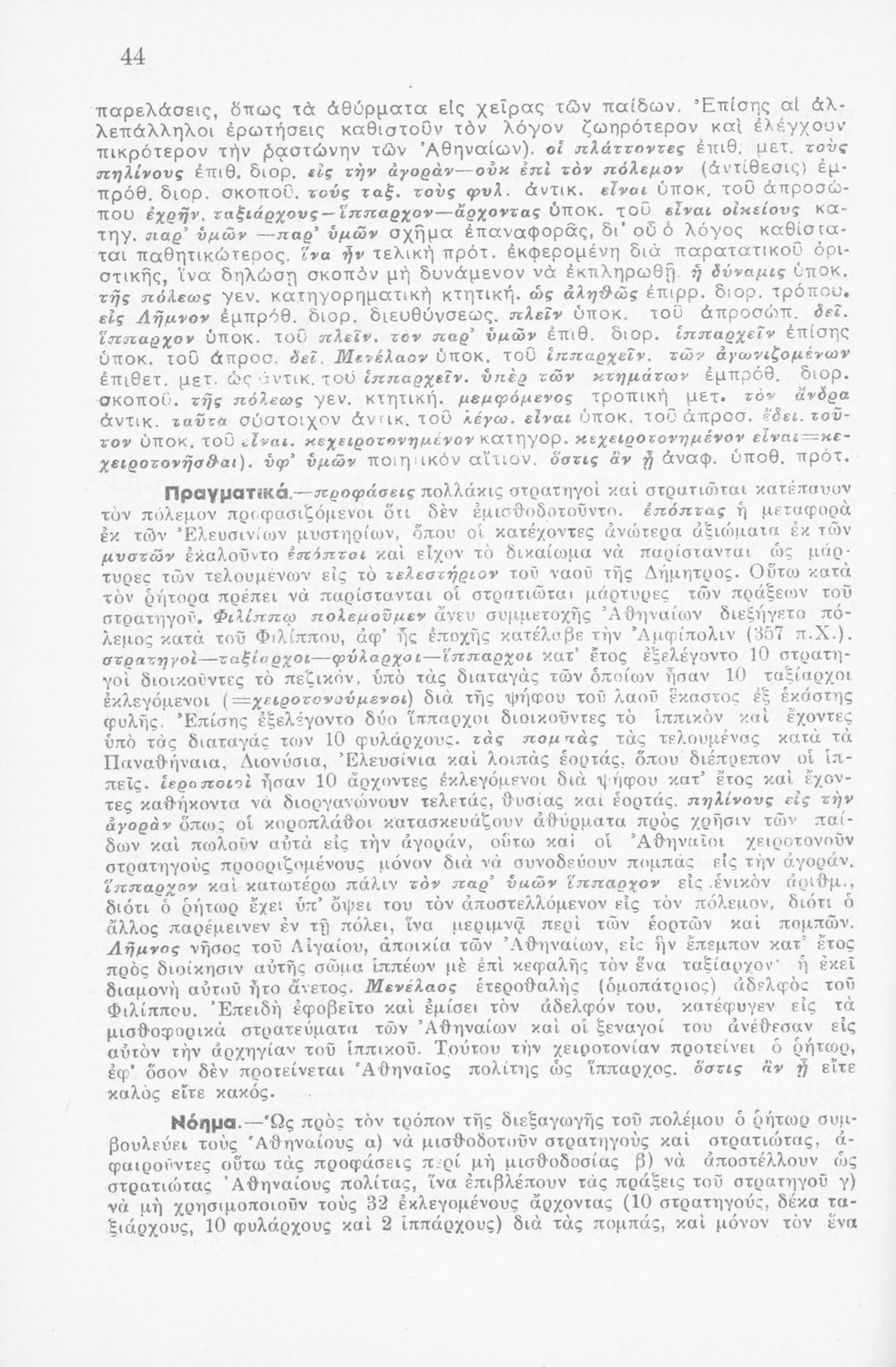 Μαθητικό βοήθημα Αρχαίων Ελληνικών ΣΤ΄ Οκταταξίου Γυμνασίου που περιέχει τον Α΄ Φιλιππικό του Δημοσθένη, μετάφραση, γραμματικά και συντακτικά σχόλια.