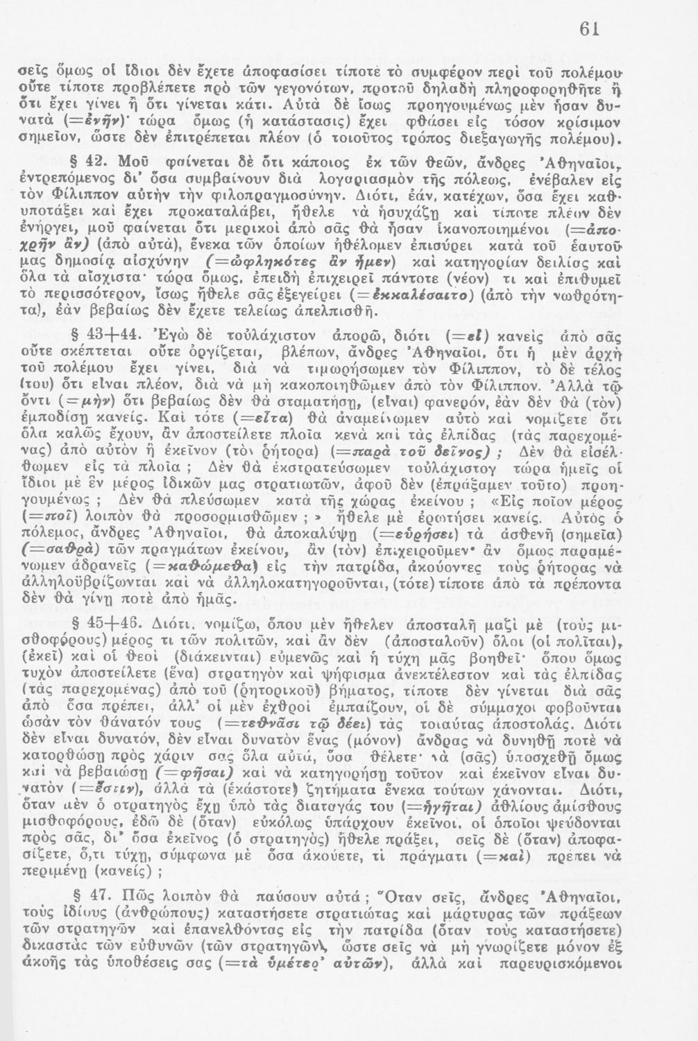 Μαθητικό βοήθημα Αρχαίων Ελληνικών ΣΤ΄ Οκταταξίου Γυμνασίου που περιέχει τον Α΄ Φιλιππικό του Δημοσθένη, μετάφραση, γραμματικά και συντακτικά σχόλια.