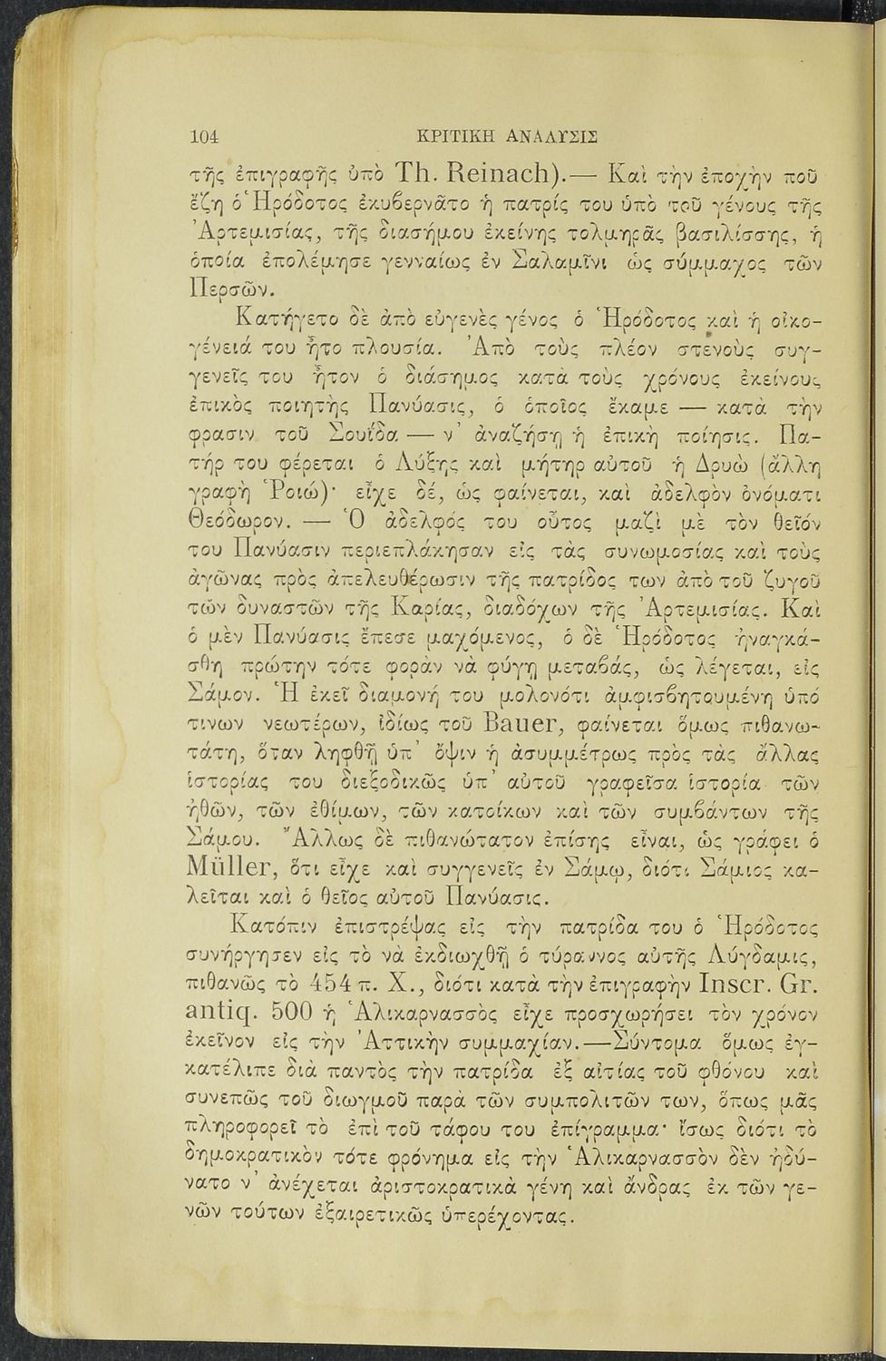 Σχολικό εγχειρίδιο Αρχαίων Ελληνικών για τους μαθητές των Γυμνασίων και Παρθεναγωγείων που περιέχει εισαγωγή στη ζωή και διάλεκτο του Ηρόδοτου, αποσπάσματα από το έργο του και ερμηνευτικές σημειώσεις.