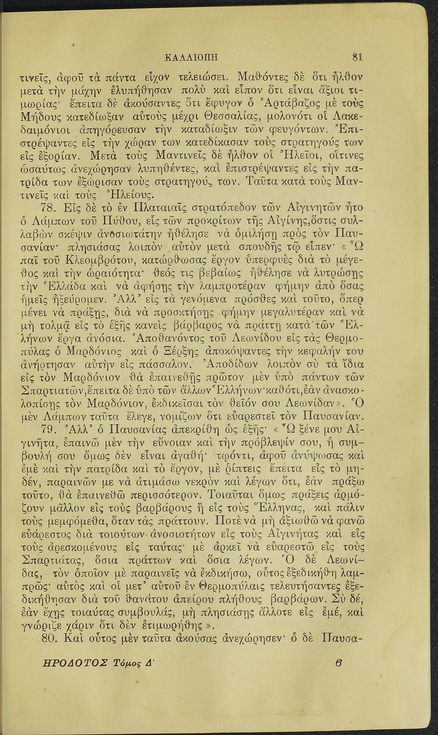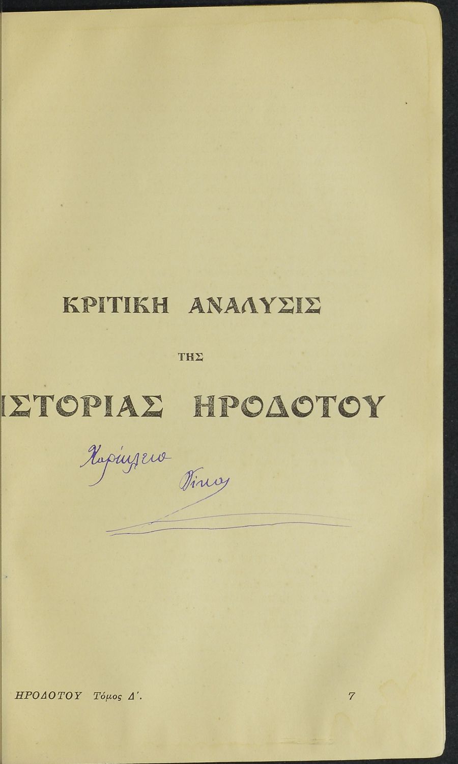Παιδαγωγικό βοήθημα Αρχαίων Ελληνικών που περιλαμβάνει μετάφραση των βιβλίων της Ιστορίας του Ηρόδοτου Καλλιόπη και Ουρανία και κριτική αποτίμησή του ως ιστορικού.