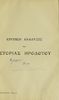 Σχολικό εγχειρίδιο Αρχαίων Ελληνικών για τα Ιερατικά Σχολεία. Ο τόμος περιέχει : «Ισοκράτους, το εις Ευαγόρα εγκώμιον, και τον Πανηγυρικόν- Πλουτάρχου, εκ των Παραλλήλων βίων τινάς- Ηροδότου, εκ των Ιστοριών ...