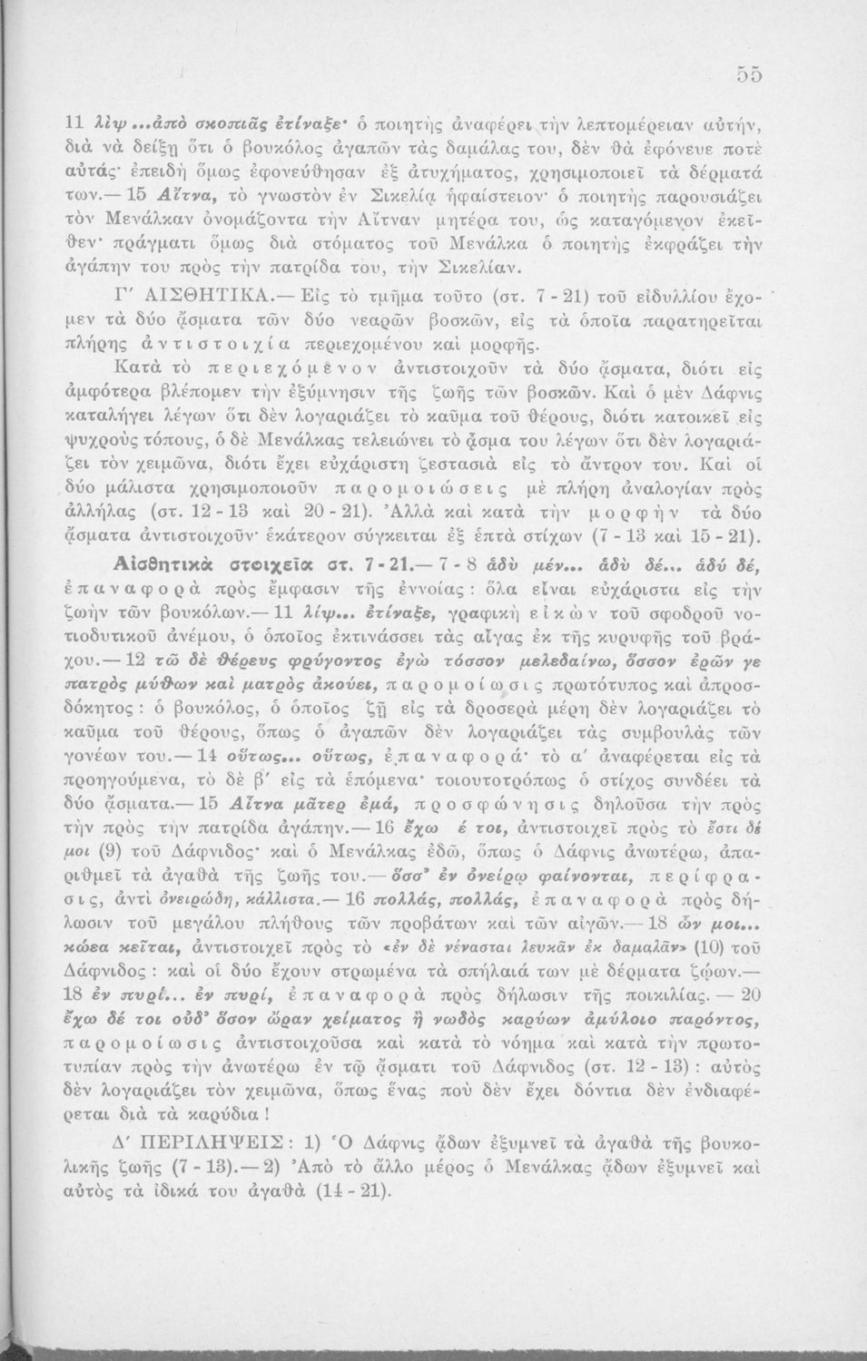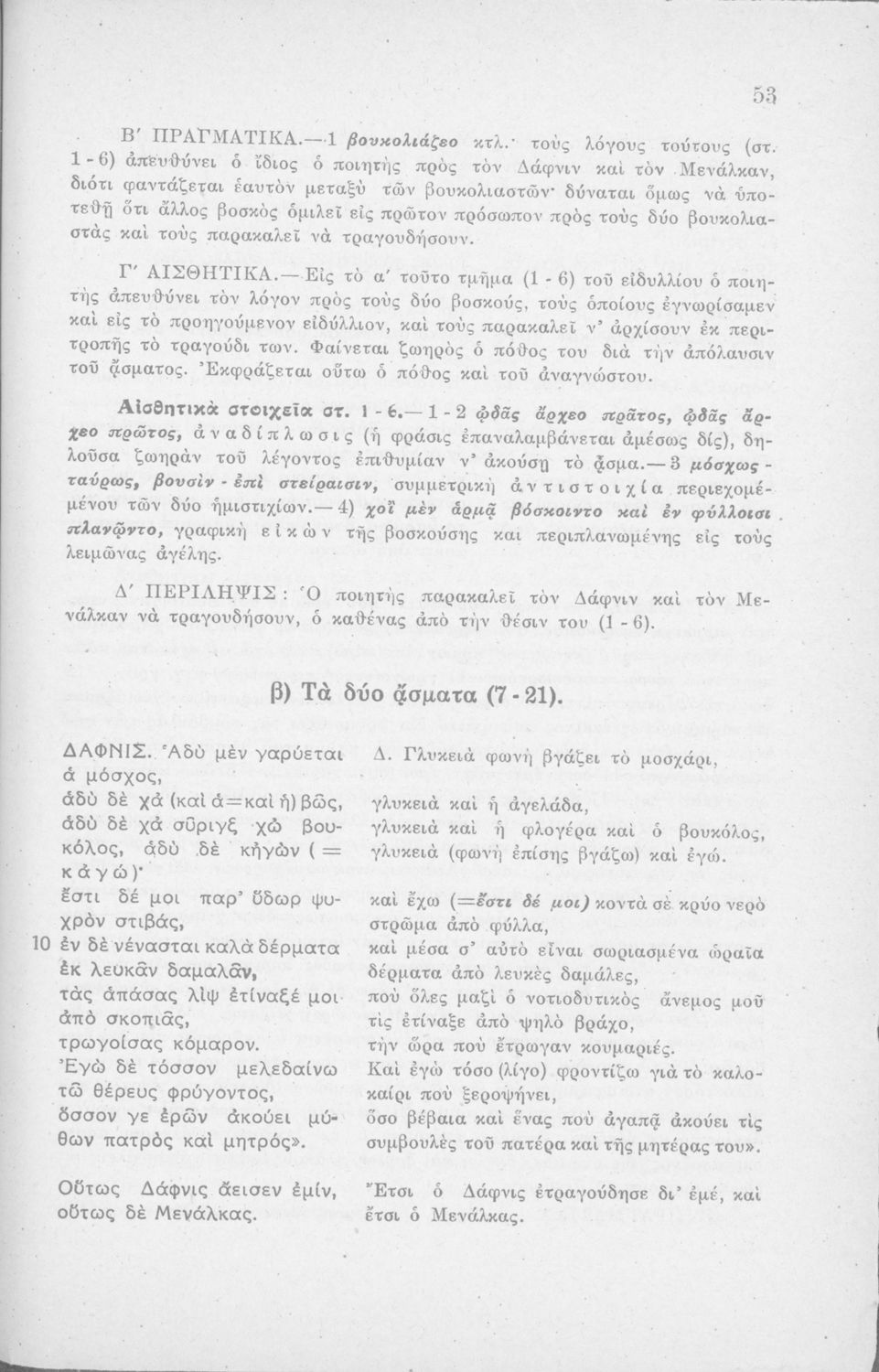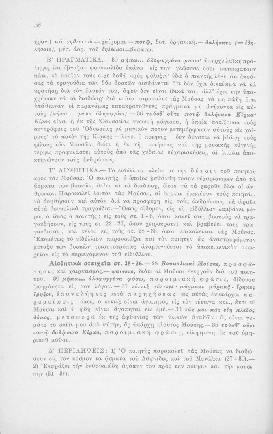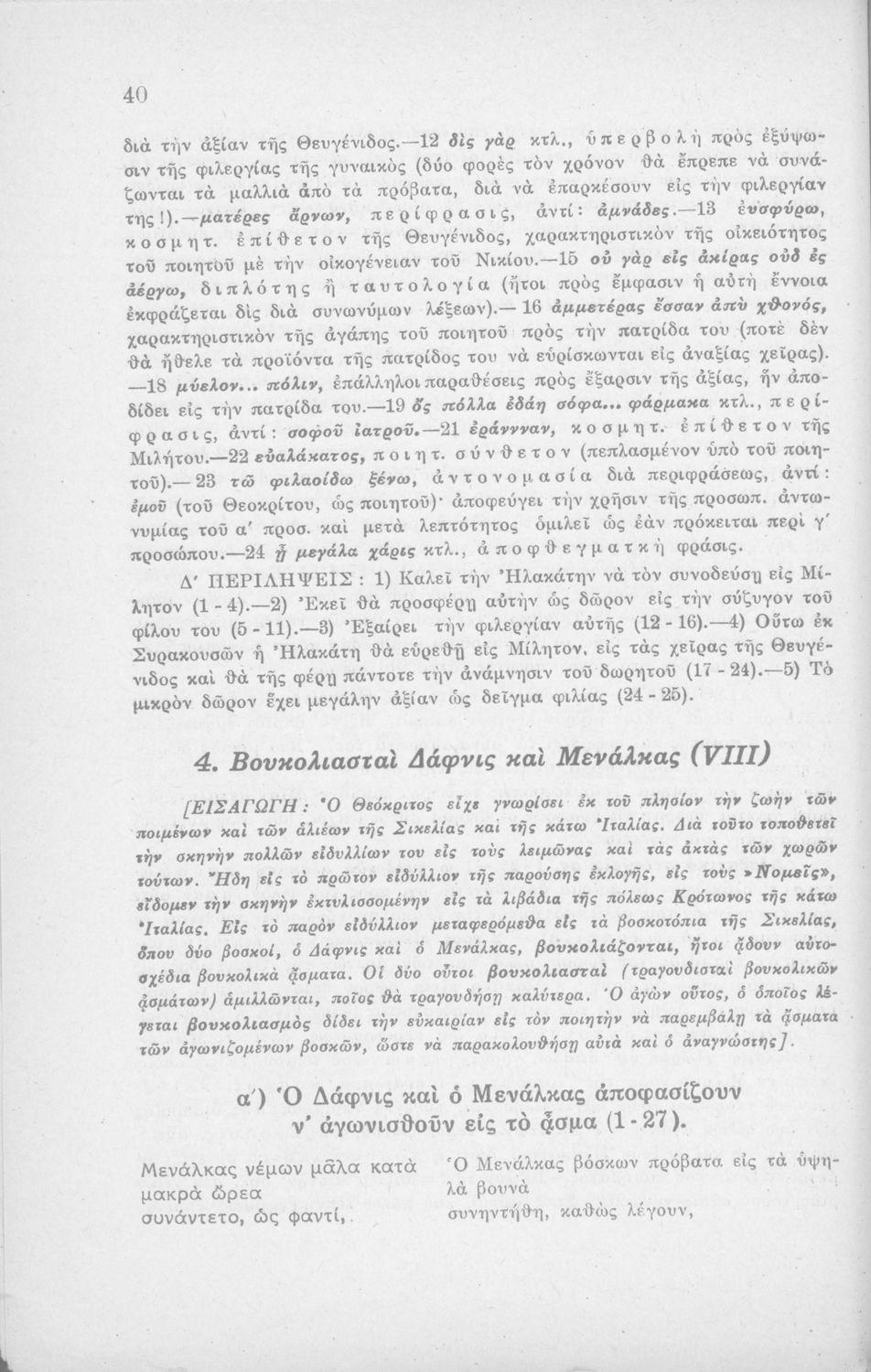 Μαθητικό βοήθημα Αρχαίων Ελληνικών Η' Γυμνασίου που περιέχει μετάφραση των Ειδυλλίων του Θεόκριτου, συντακτική ανάλυση και ερμηνευτικά σχόλια.