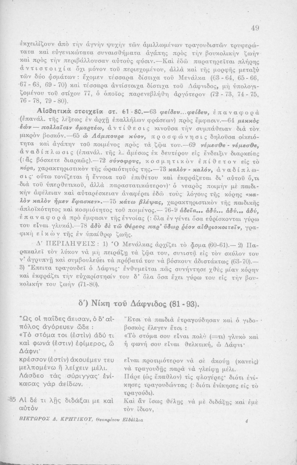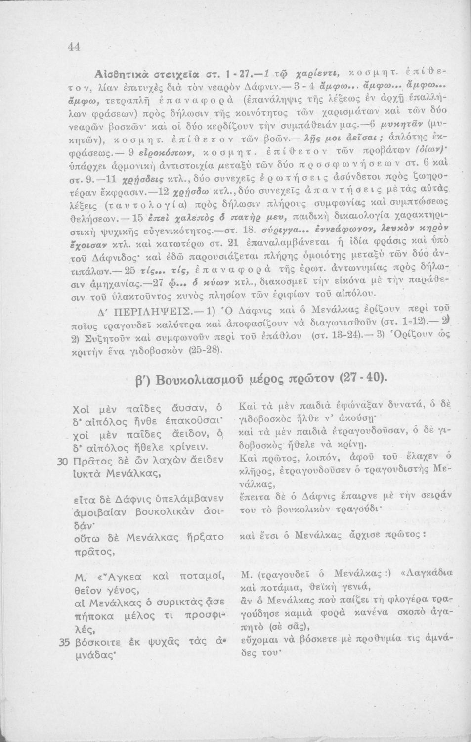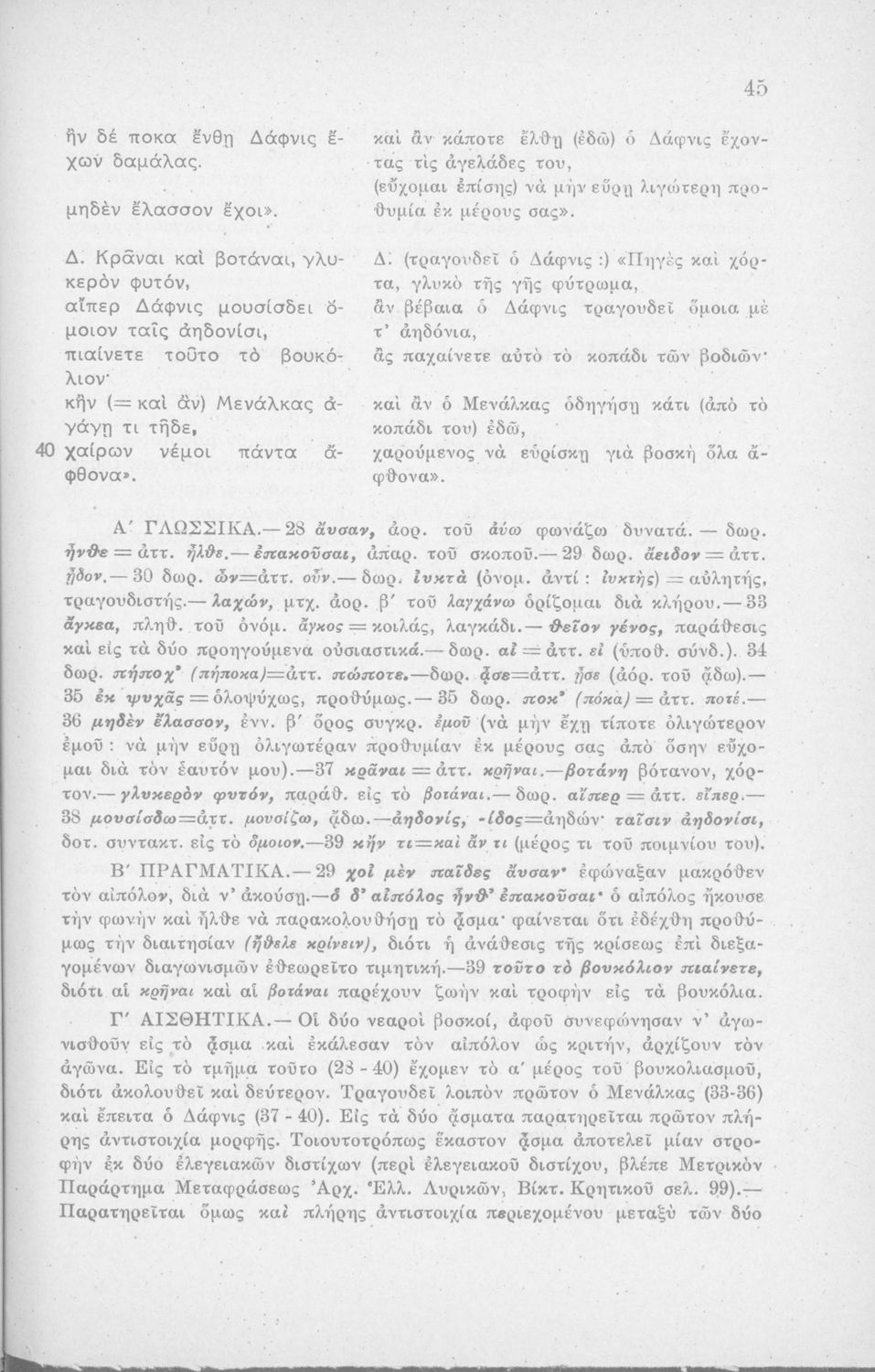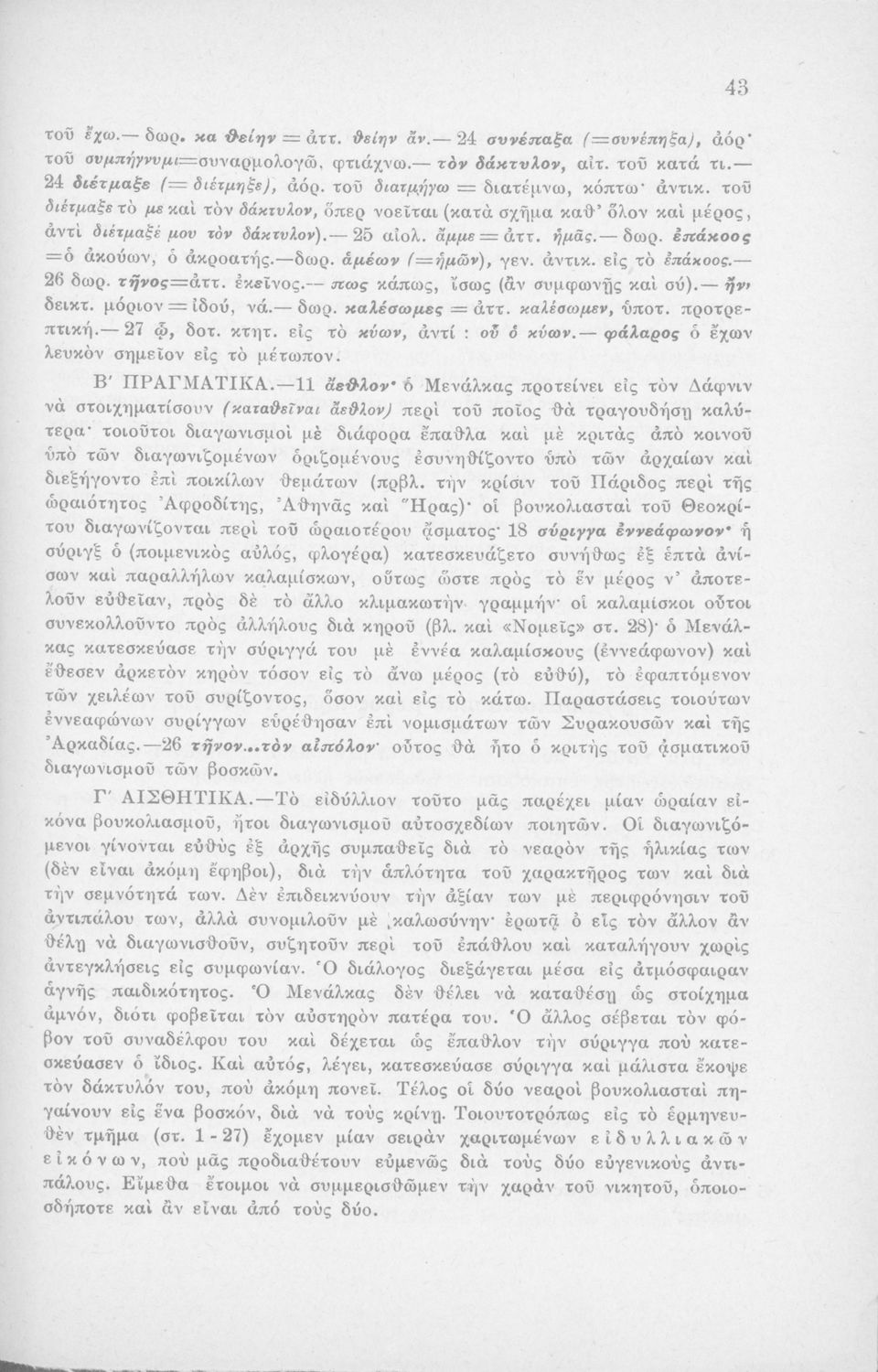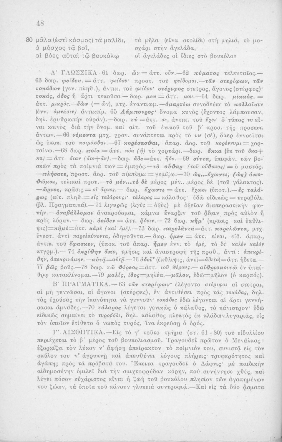 Μαθητικό βοήθημα Αρχαίων Ελληνικών Η' Γυμνασίου που περιέχει μετάφραση των Ειδυλλίων του Θεόκριτου, συντακτική ανάλυση και ερμηνευτικά σχόλια.