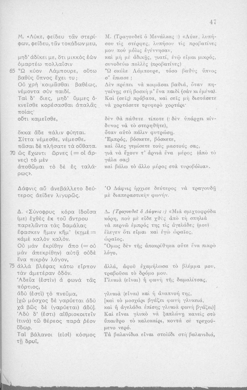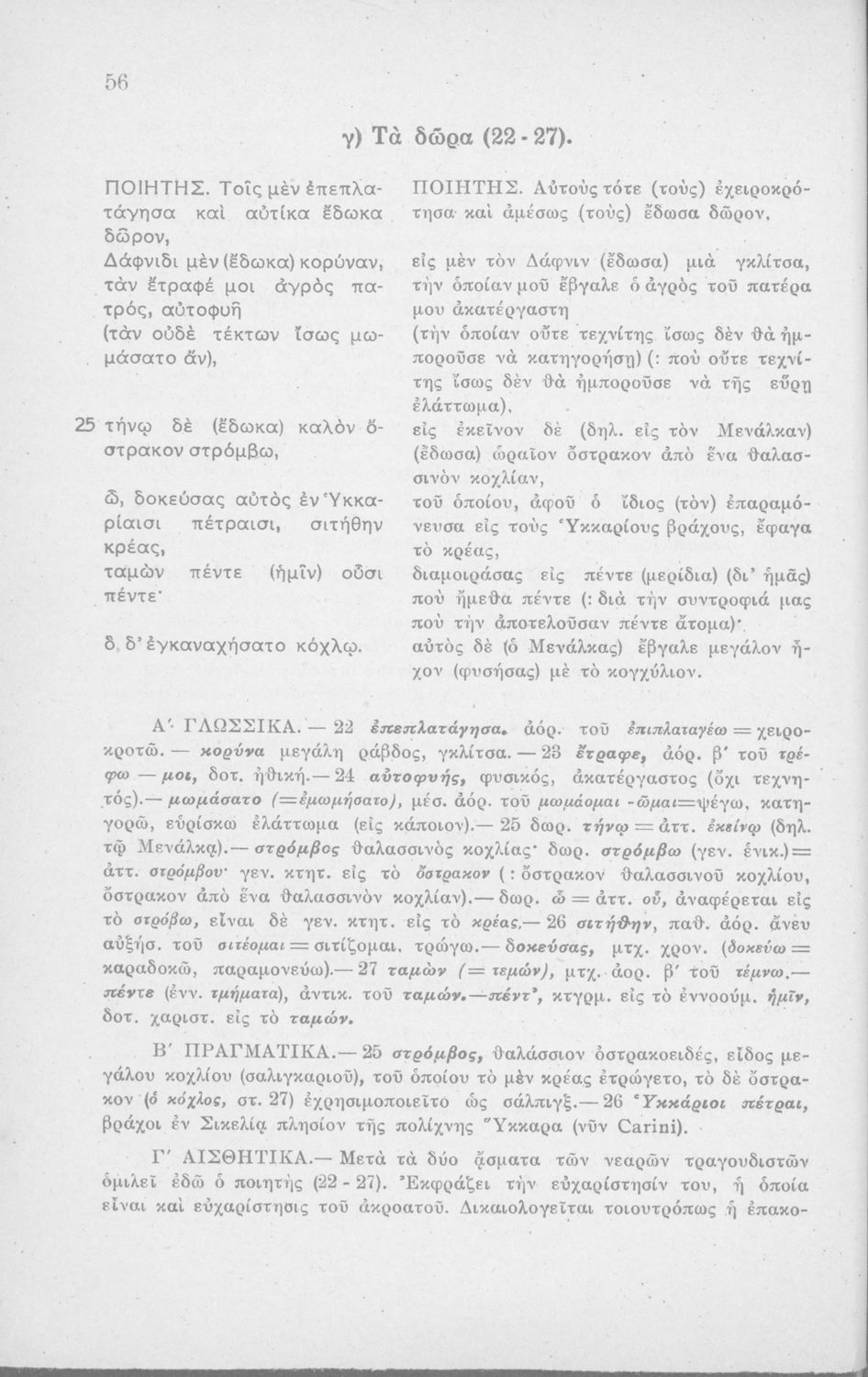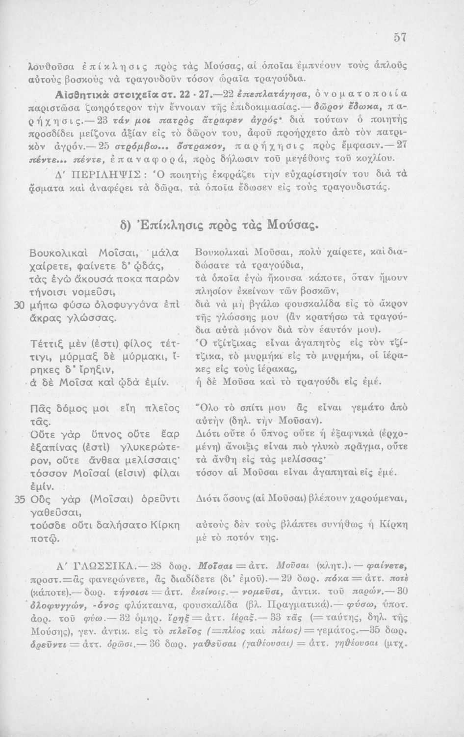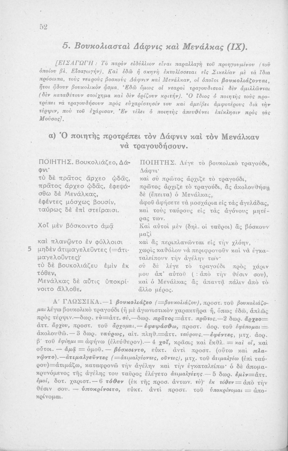 Μαθητικό βοήθημα Αρχαίων Ελληνικών Η' Γυμνασίου που περιέχει μετάφραση των Ειδυλλίων του Θεόκριτου, συντακτική ανάλυση και ερμηνευτικά σχόλια.