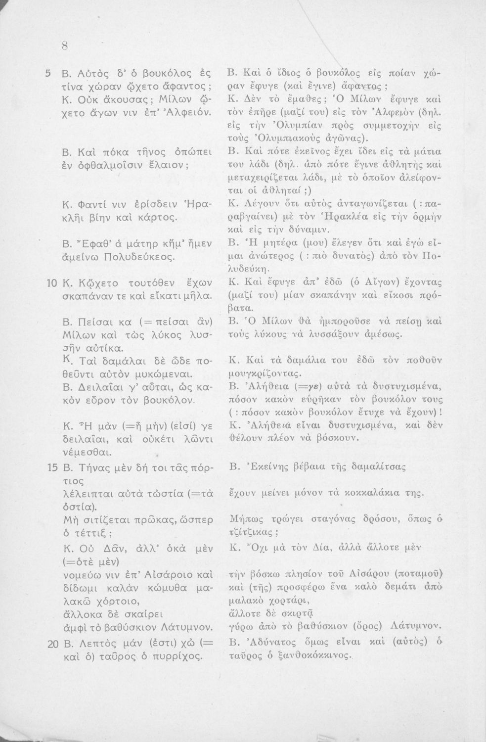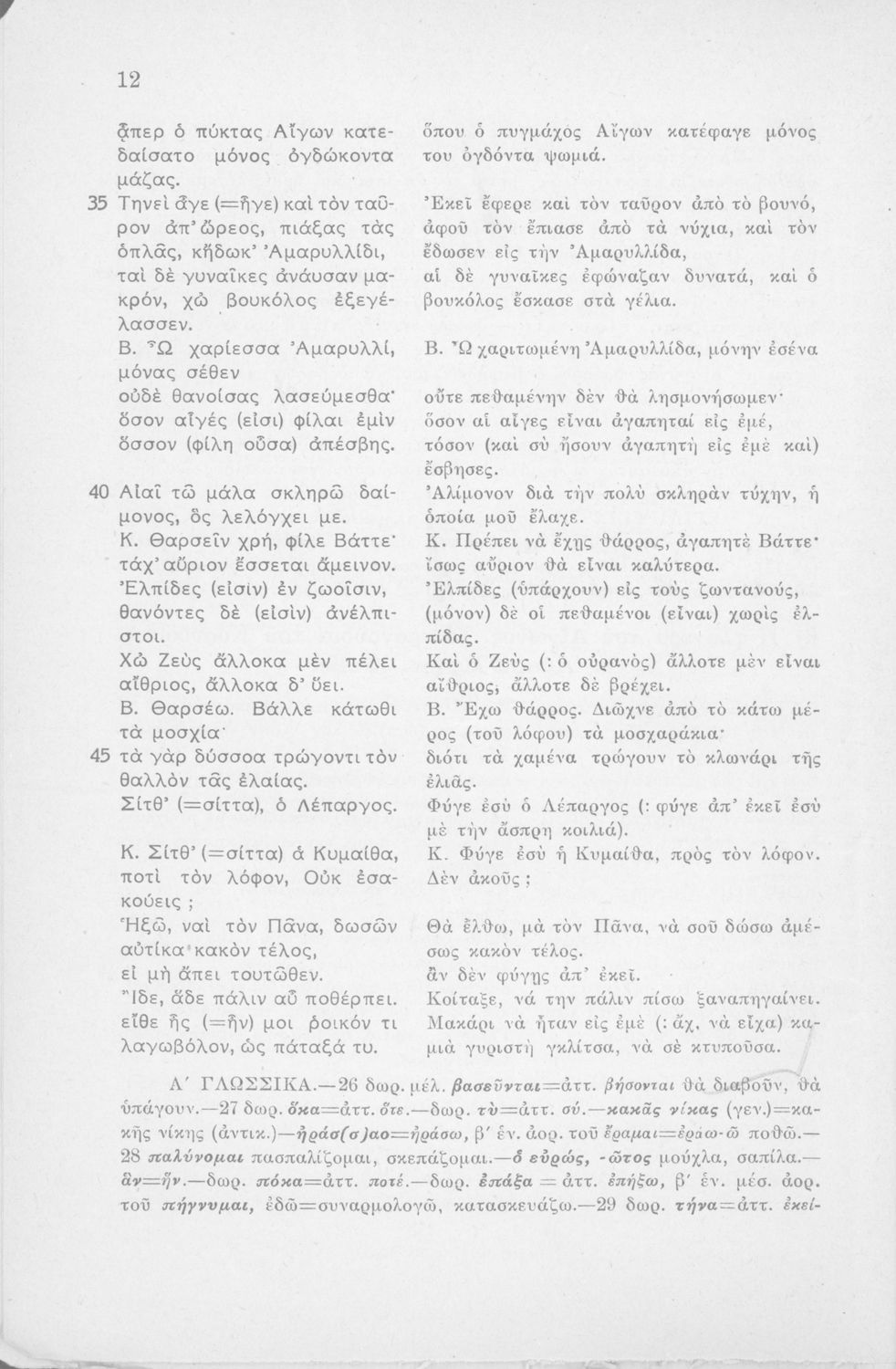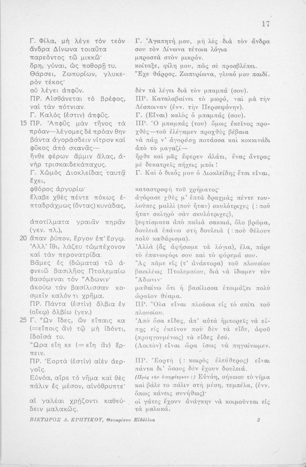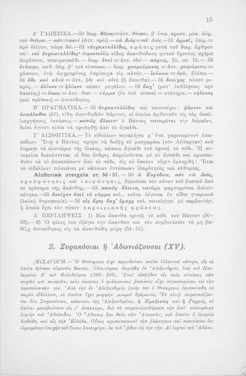 Μαθητικό βοήθημα Αρχαίων Ελληνικών Η' Γυμνασίου που περιέχει μετάφραση των Ειδυλλίων του Θεόκριτου, συντακτική ανάλυση και ερμηνευτικά σχόλια.