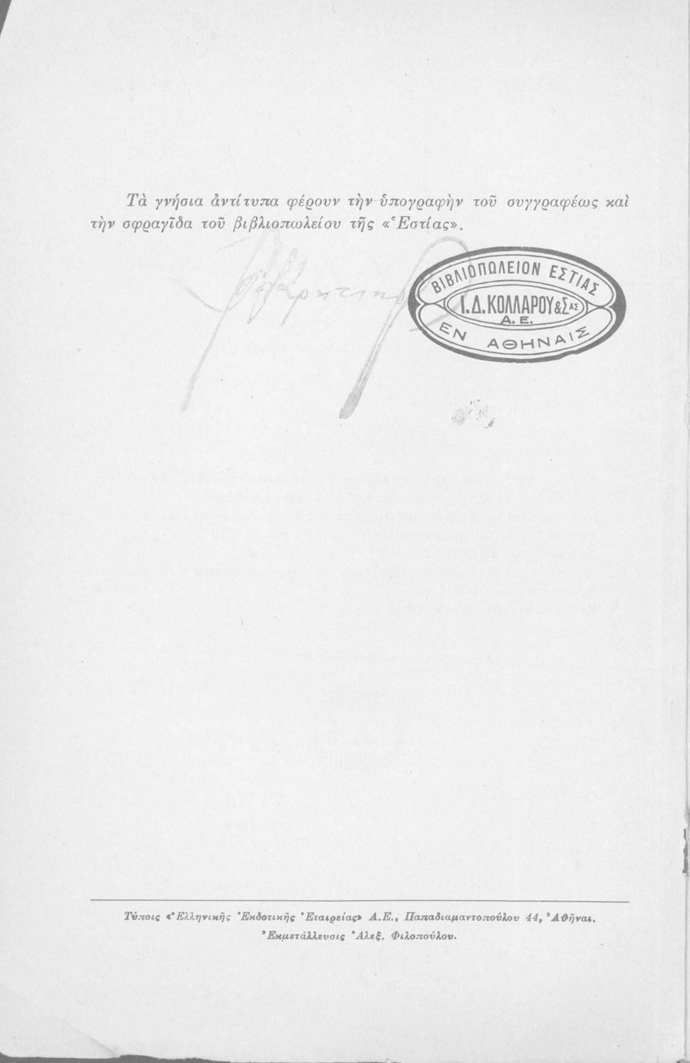Εκδότης: Ιωάννης Δ. Κολλάρος και ΣΙΑ, Βιβλιοπωλείο της "Εστίας" Έτος έκδοσης: 1953 Τόπος έκδοσης: Αθήνα |