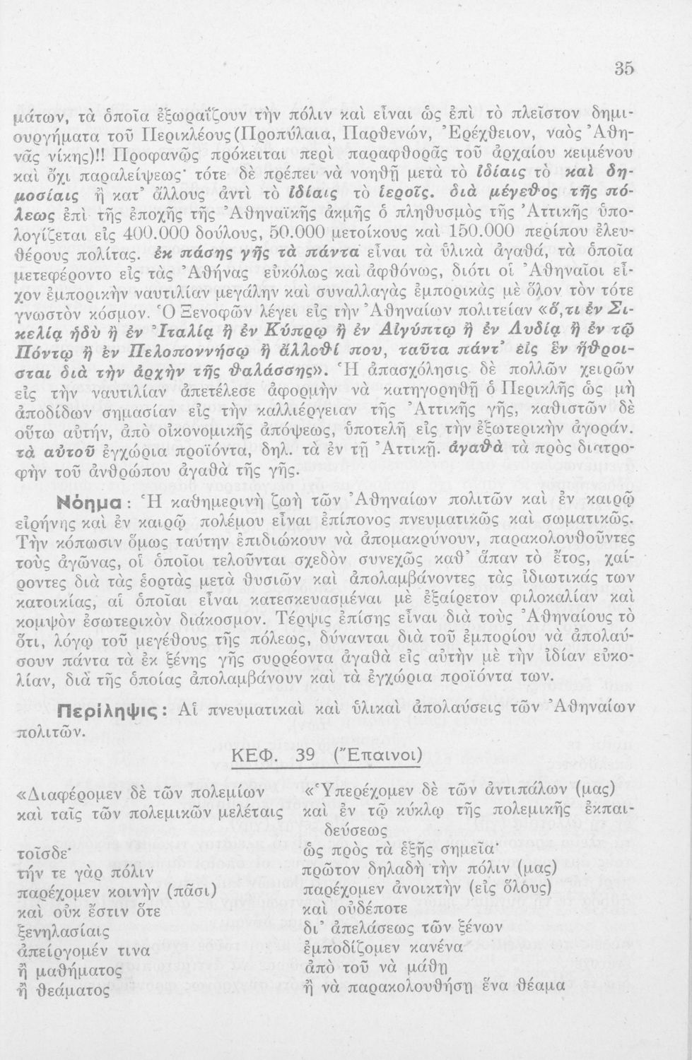 Μαθητικό βοήθημα Αρχαίων Ελληνικών για τους μαθητές της Η' τάξης των Οκταταξίων Γυμνασίων που περιέχει τον Επιτάφιο του Περικλή, μετάφραση, και γραμματικά και συντακτικά σχόλια.