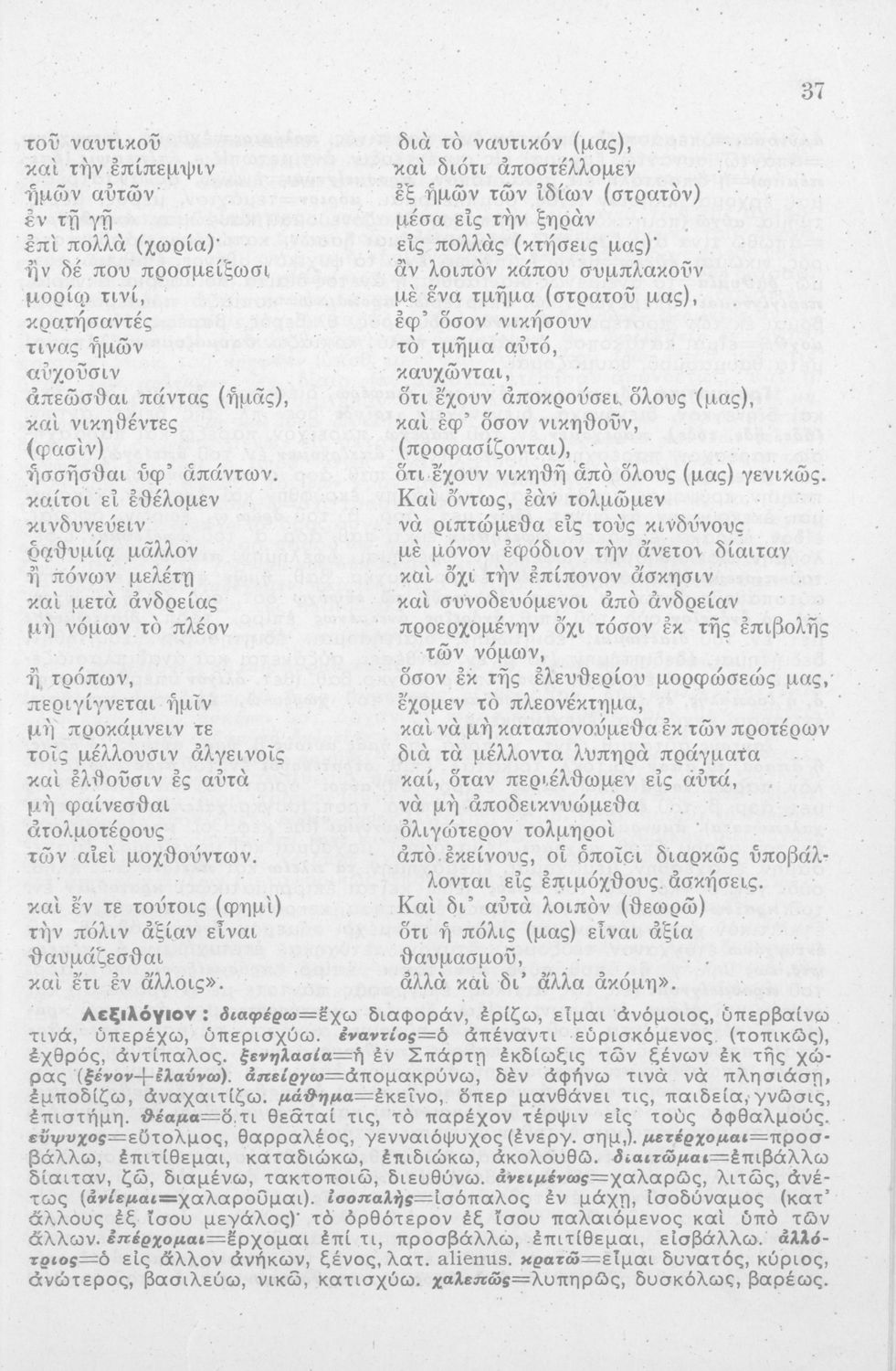 Μαθητικό βοήθημα Αρχαίων Ελληνικών για τους μαθητές της Η΄ τάξης των οκταταξίων Γυμνασίων. Περιέχει το κείμενο, μετάφραση, γραμματικά και συντακτικά σχόλια.