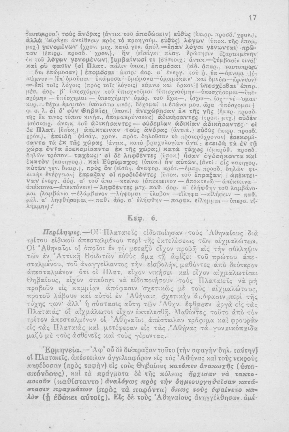 Μαθητικό βοήθημα Αρχαίων Ελληνικών για τη Δευτεροβάθμια Εκπαίδευση. Περιλαμβάνει μετάφραση, ερμηνευτικά, γραμματικά και συντακτικά σχόλια.