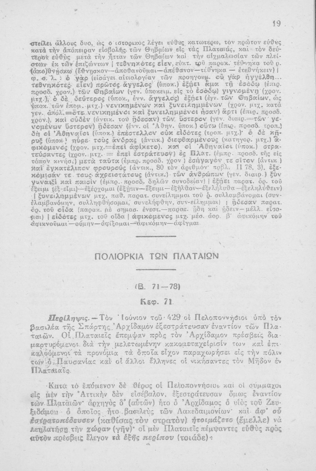 Μαθητικό βοήθημα Αρχαίων Ελληνικών για τους μαθητές των Γυμνασίων. Περιέχει μετάφραση, γραμματικά και συντακτικά σχόλια.