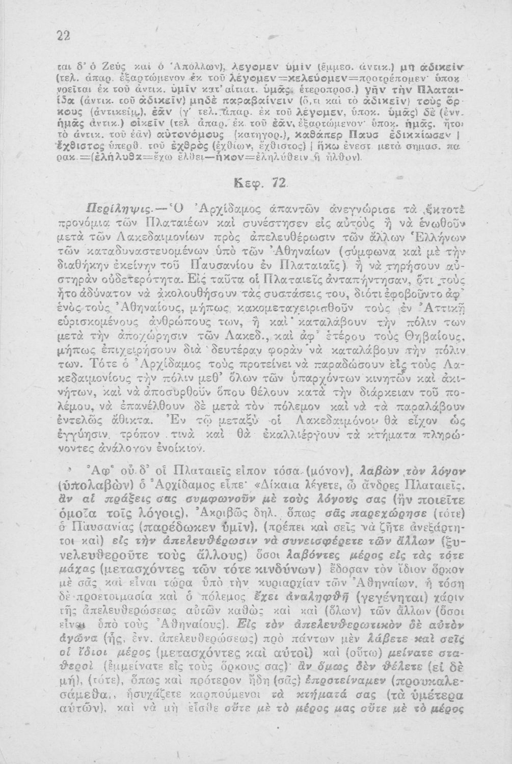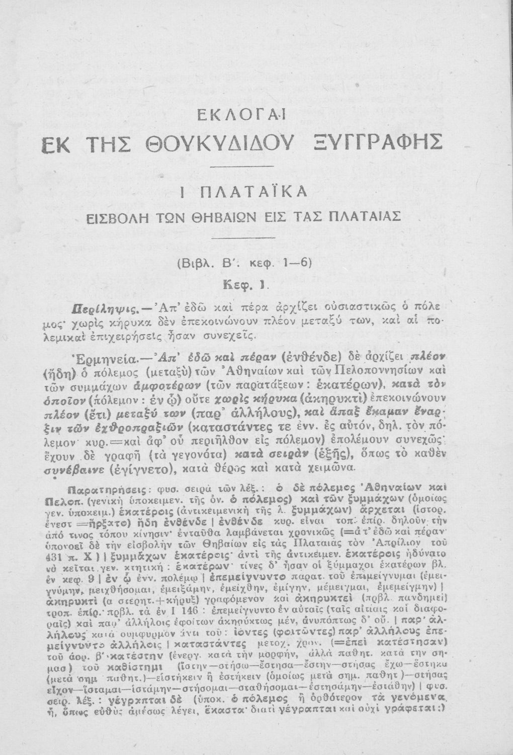 Μαθητικό βοήθημα Αρχαίων Ελληνικών που περιλαμβάνει σχολική μετάφραση του πρώτου βιβλίου της Ιστορίας του Θουκυδίδη.