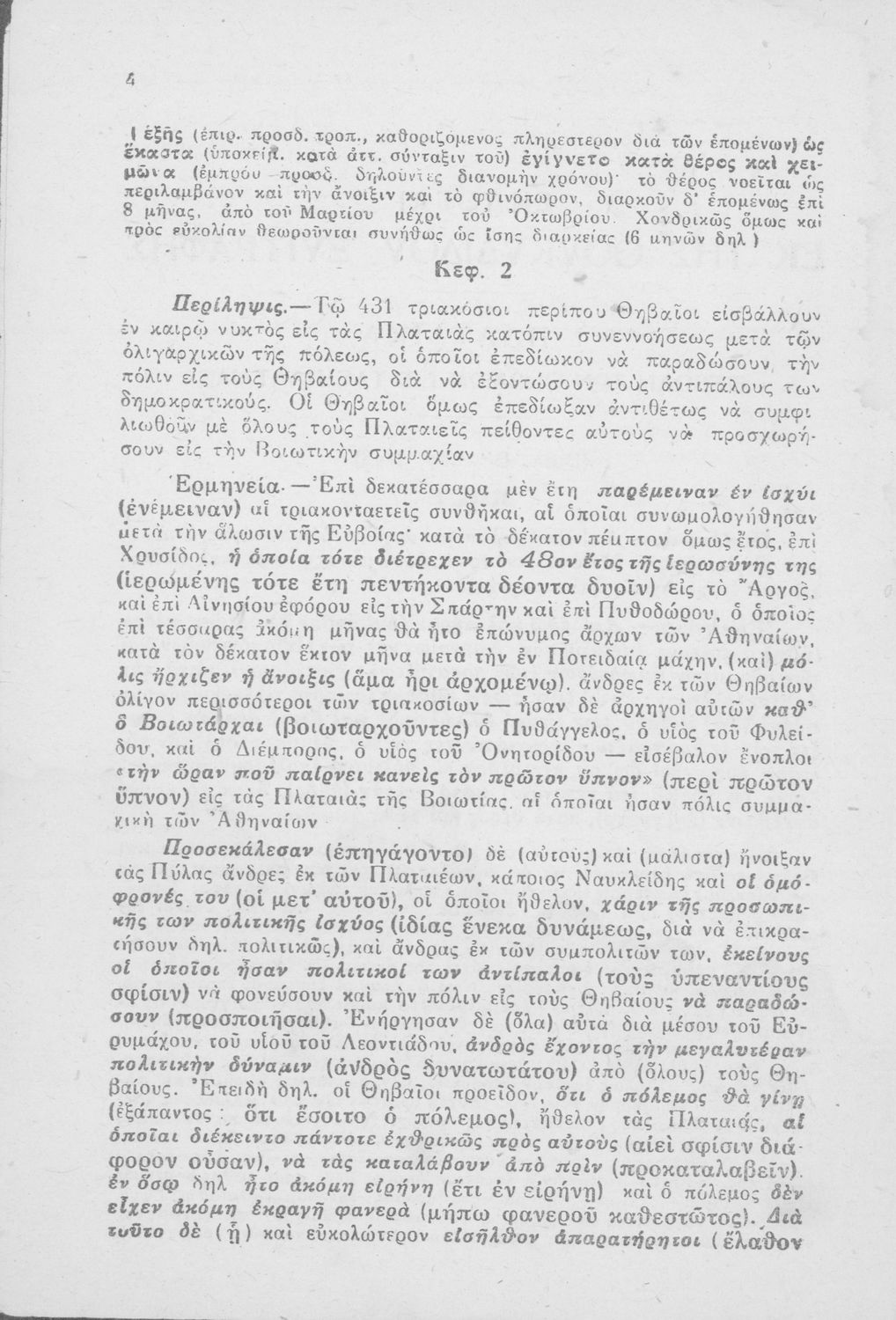 Σχολικό εγχειρίδιο Αρχαίων Ελληνικών Δ΄ Γυμνασίου που περιλαμβάνει εισαγωγή στη ζωή και το έργο του Θουκυδίδη, αποσπάσματα από τα Πλαταϊκά, τα Λεσβιακά και τα Σικελικά του Θουκυδίδη και ερμηνευτικές σημειώσεις.