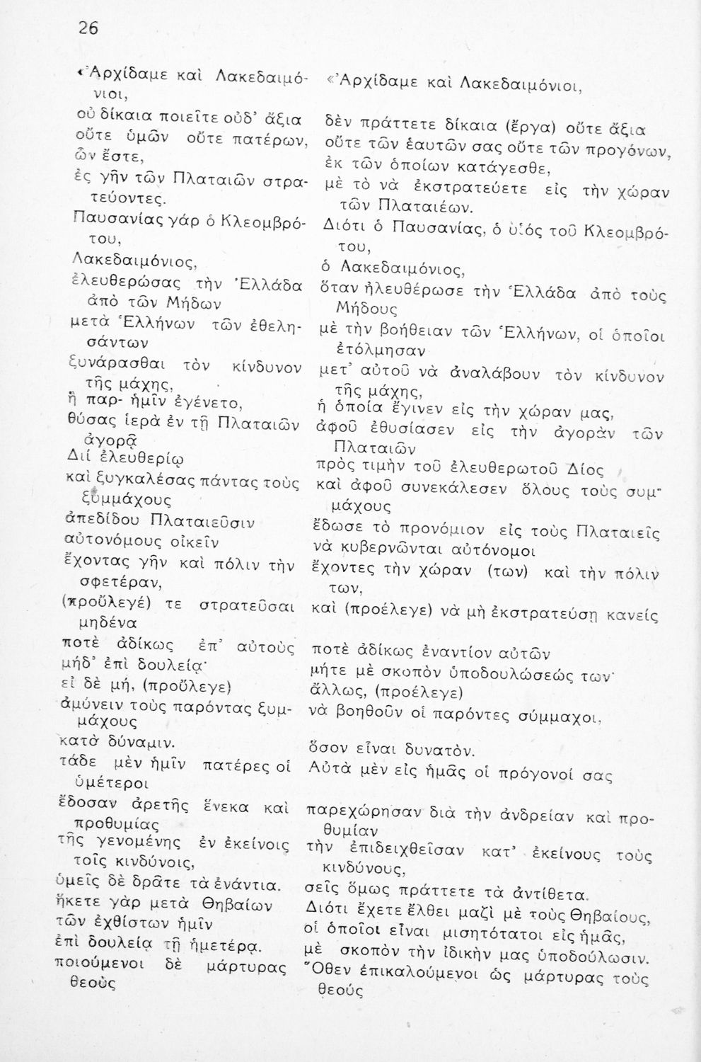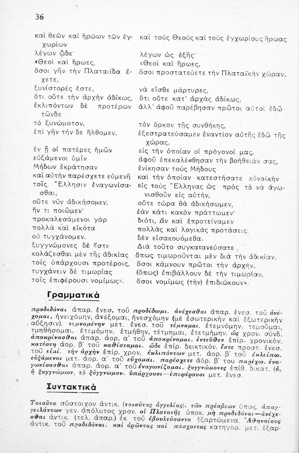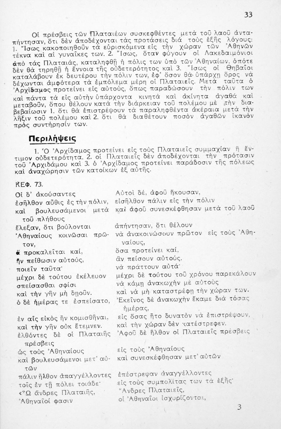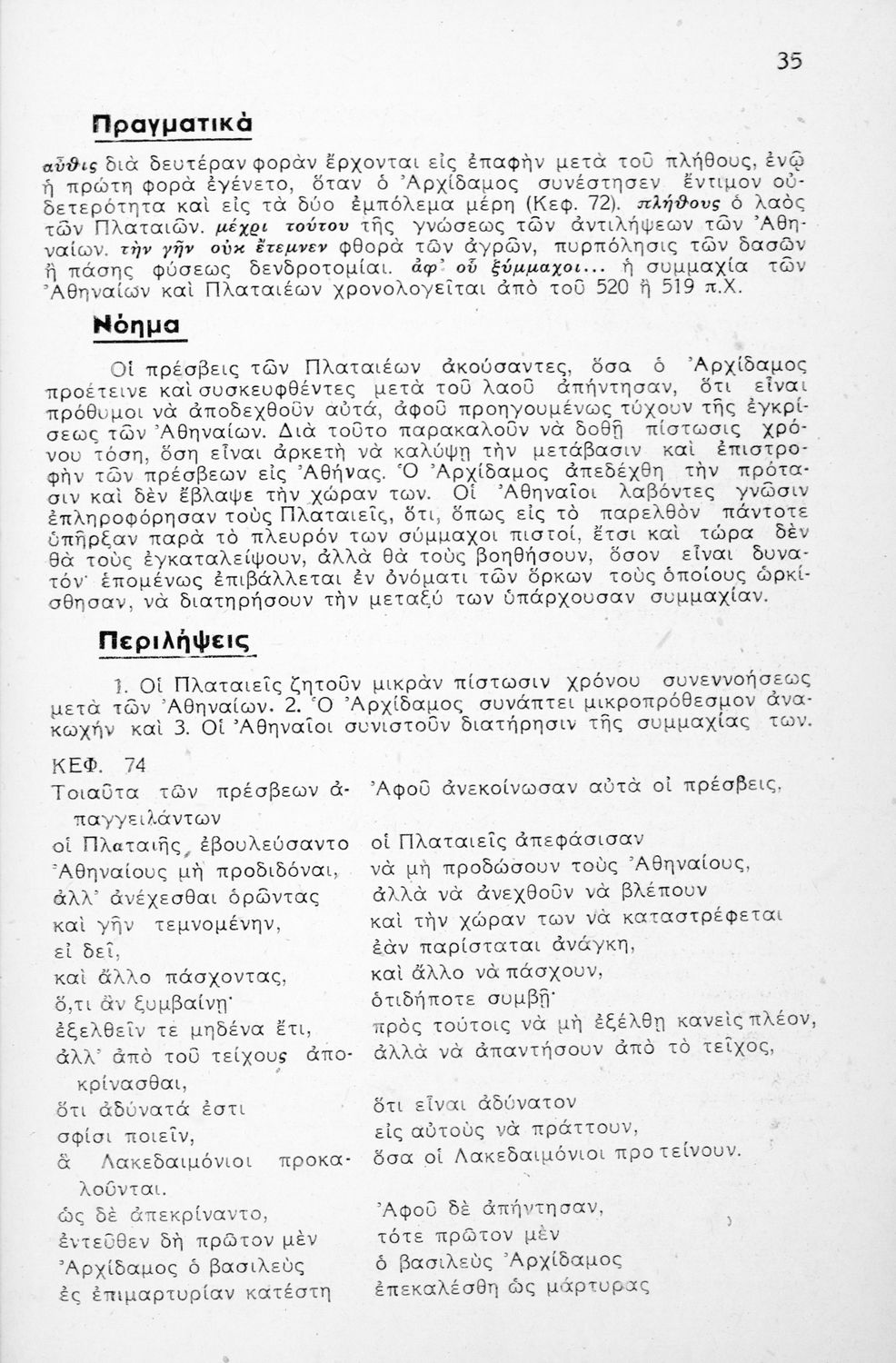 Μαθητικό βοήθημα Αρχαίων Ελληνικών ΣΤ΄ Γυμνασίου που περιλαμβάνει αποσπάσματα από τα Πλαταϊκά του Θουκυδίδη, μετάφραση, γραμματικά, συντακτικά και ερμηνευτικά σχόλια.