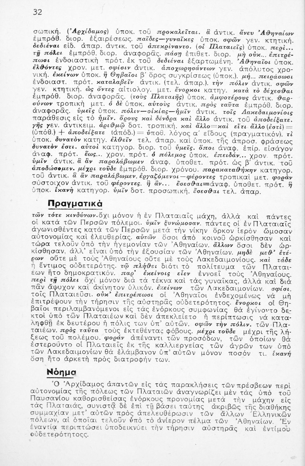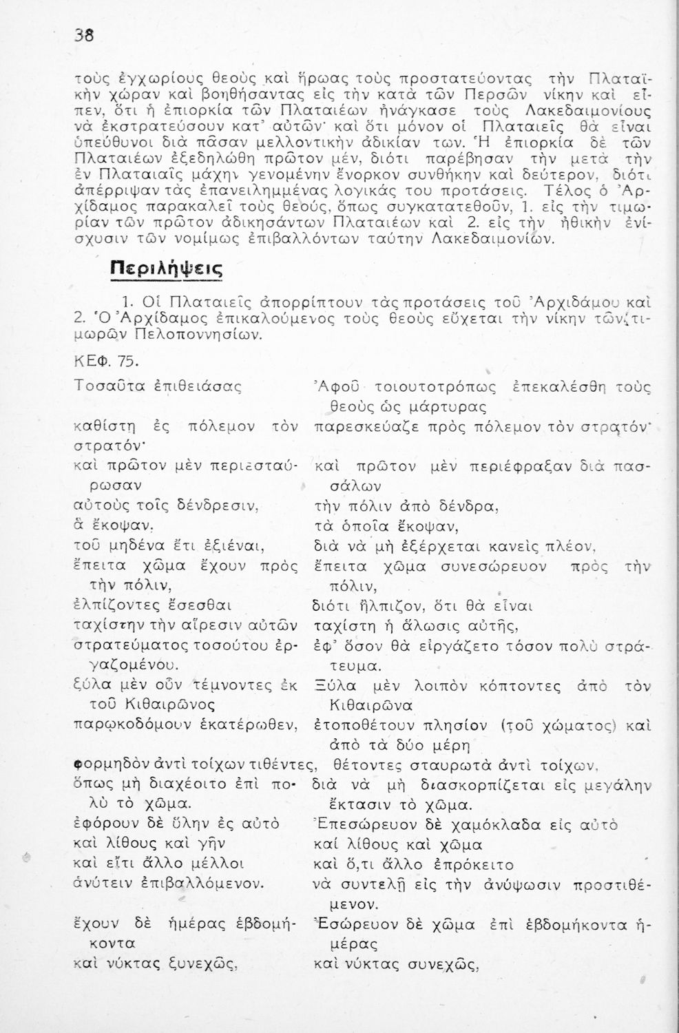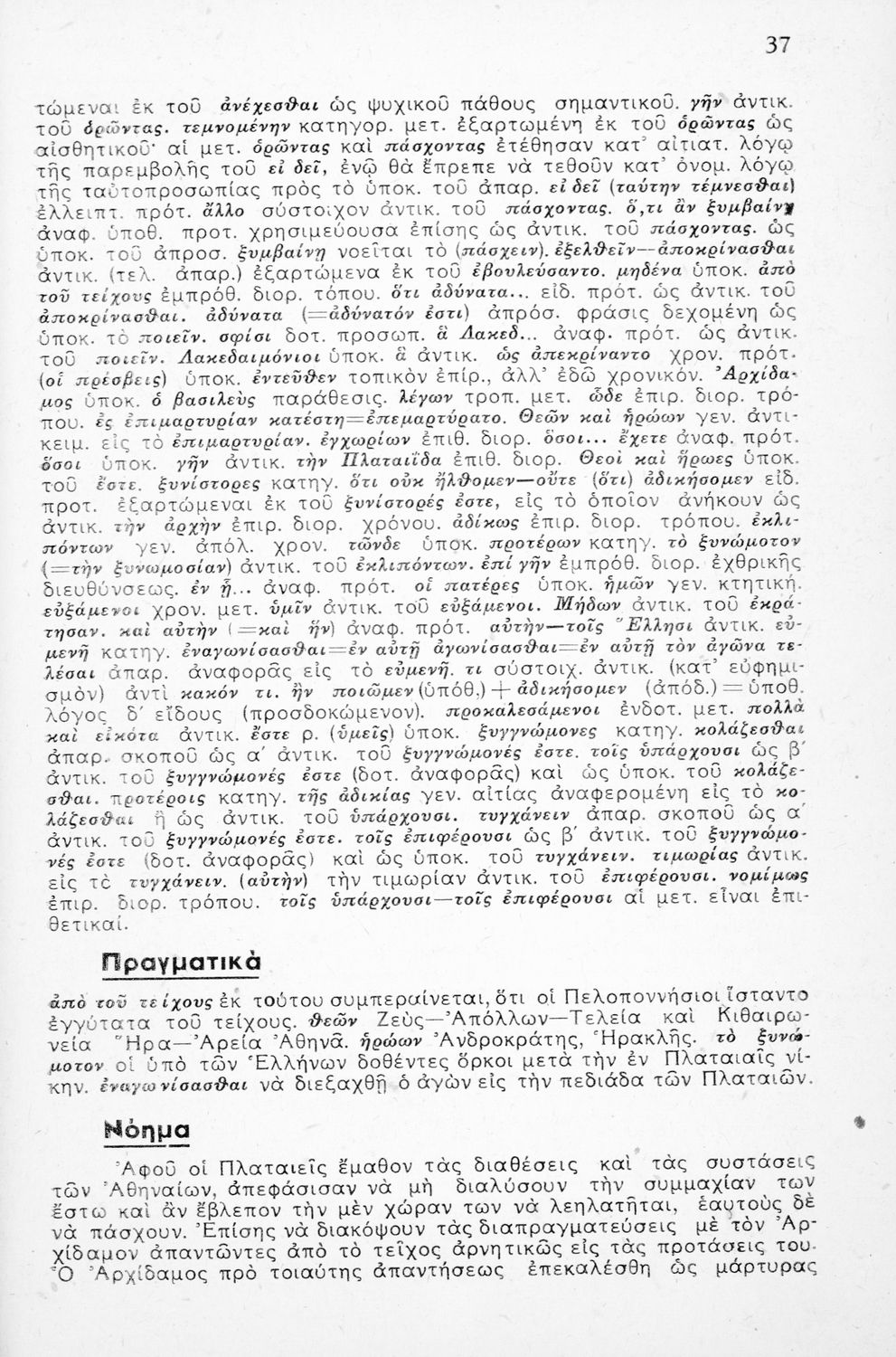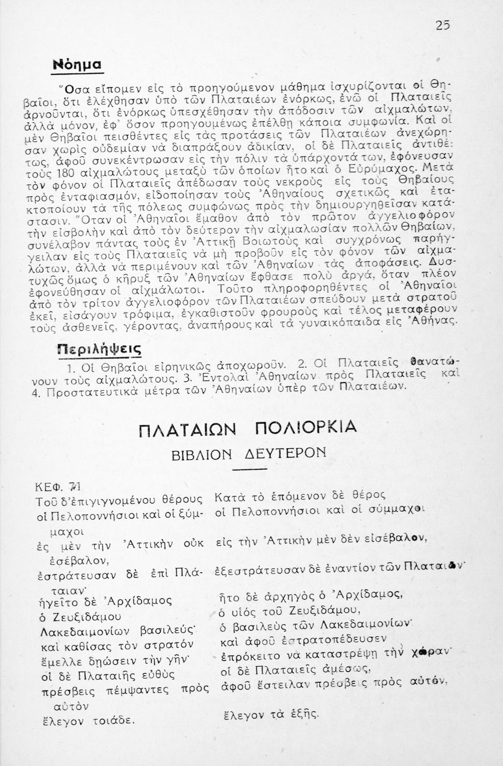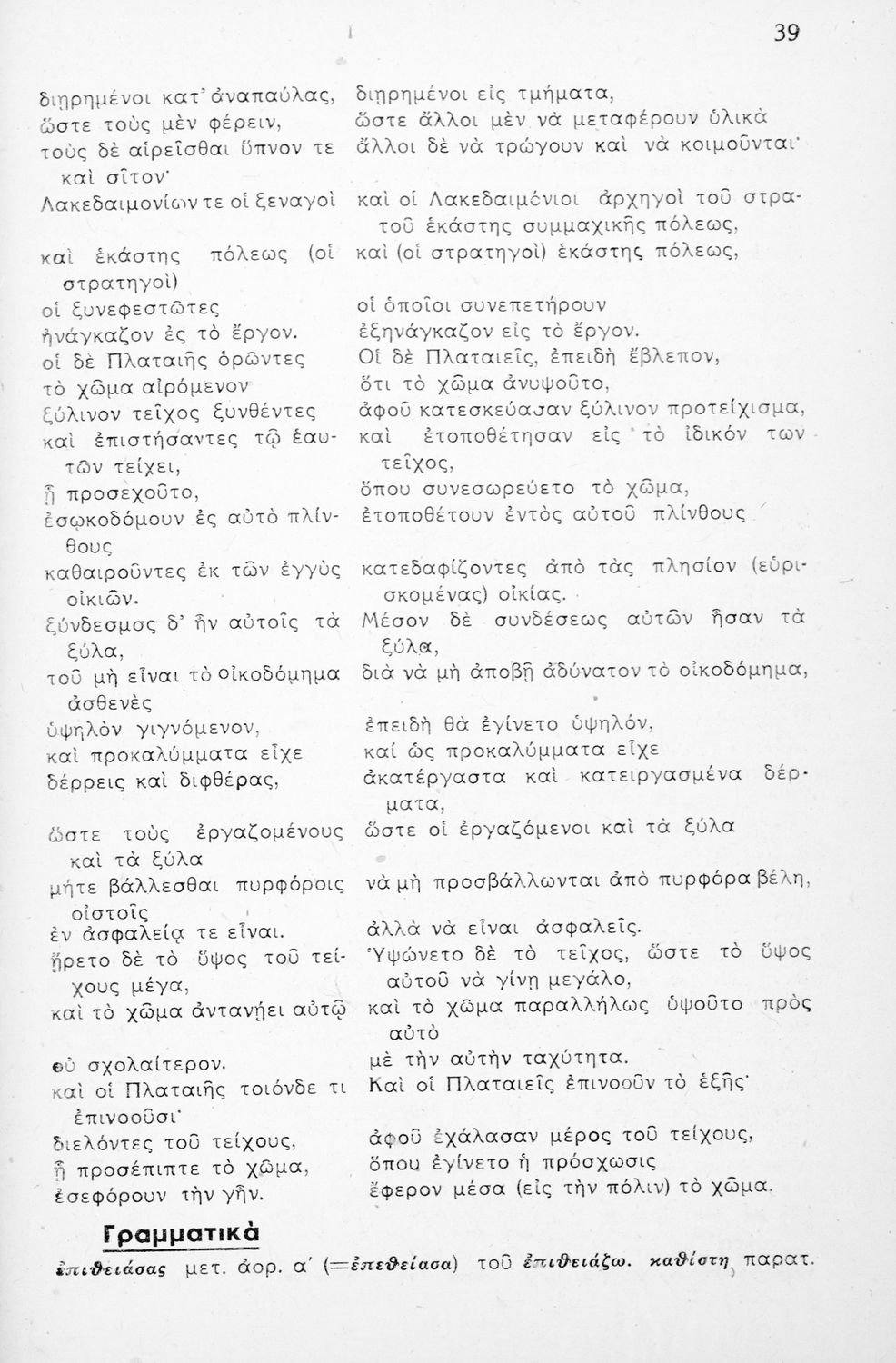 Μαθητικό βοήθημα Αρχαίων Ελληνικών ΣΤ΄ Γυμνασίου που περιλαμβάνει αποσπάσματα από τα Πλαταϊκά του Θουκυδίδη, μετάφραση, γραμματικά, συντακτικά και ερμηνευτικά σχόλια.