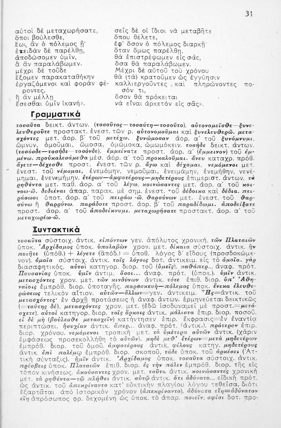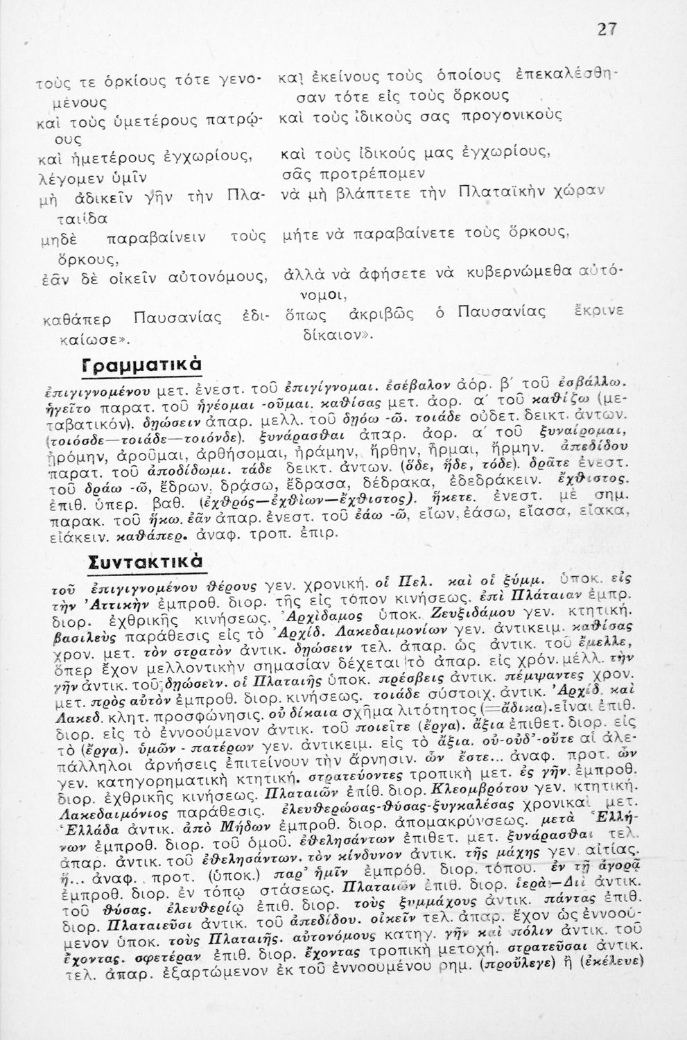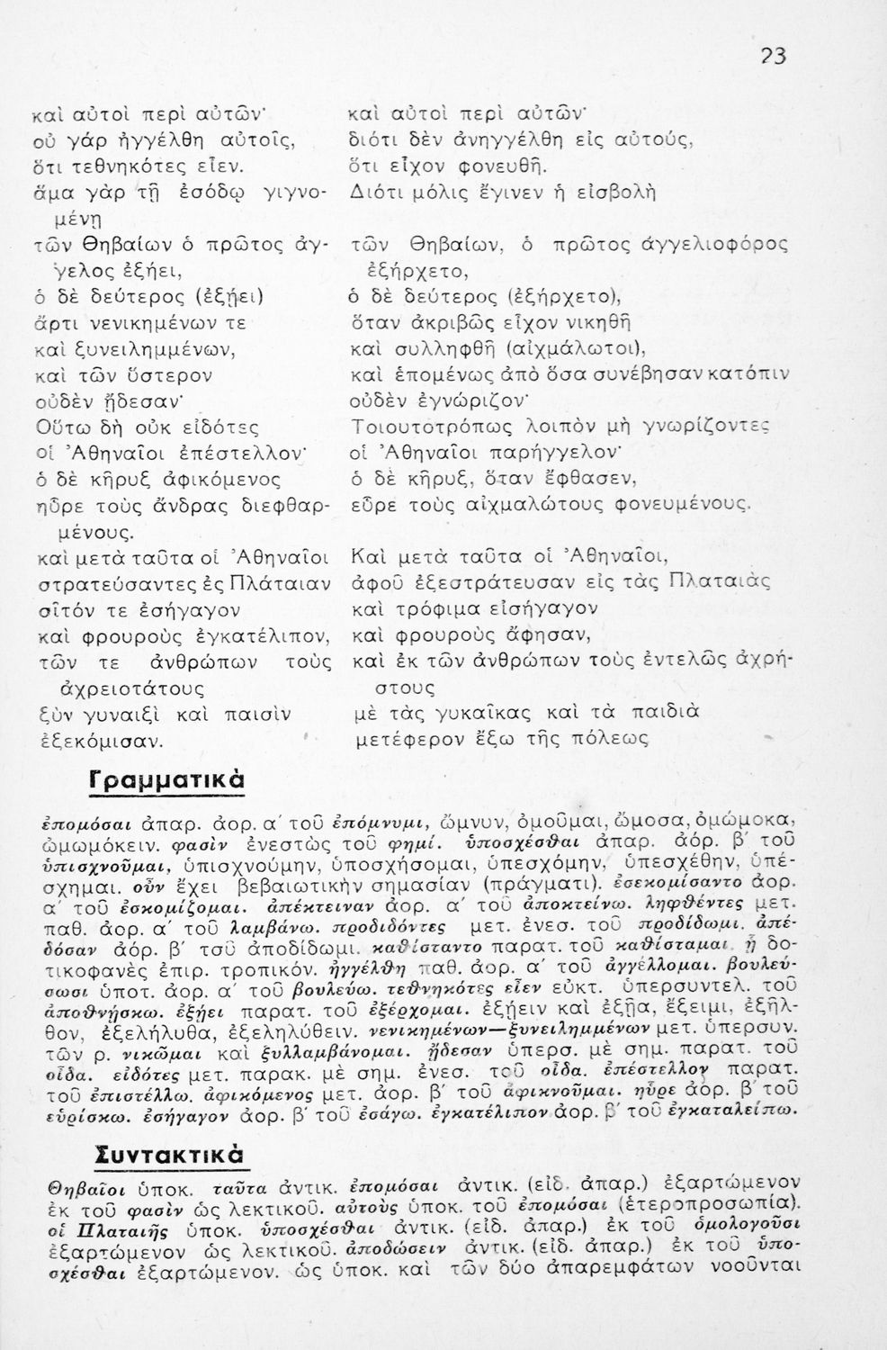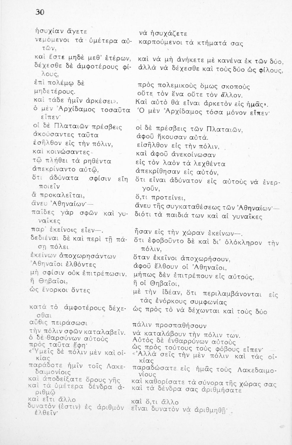 Μαθητικό βοήθημα Αρχαίων Ελληνικών ΣΤ΄ Γυμνασίου που περιλαμβάνει αποσπάσματα από τα Πλαταϊκά του Θουκυδίδη, μετάφραση, γραμματικά, συντακτικά και ερμηνευτικά σχόλια.