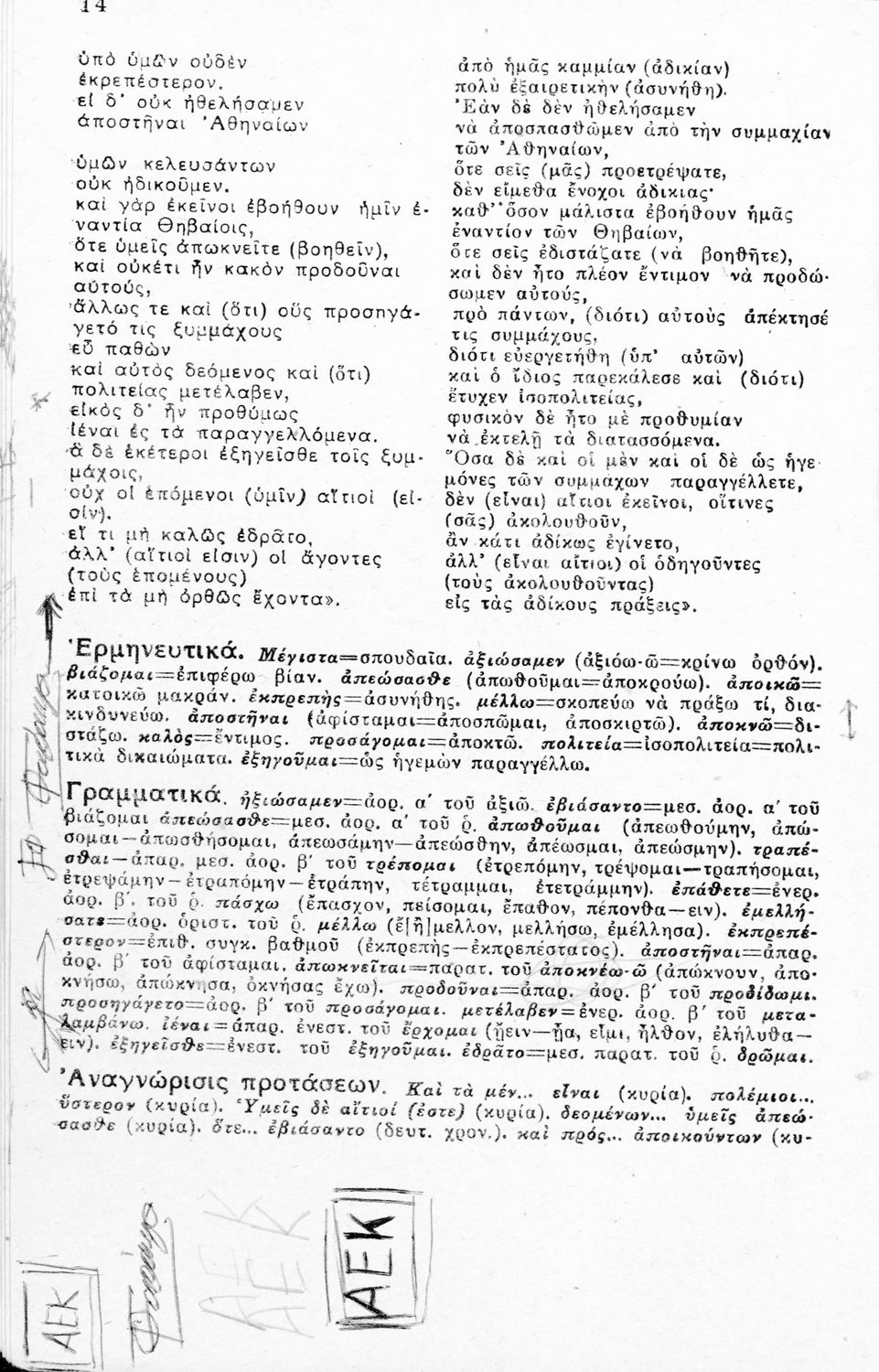 Μαθητικό βοήθημα Αρχαίων Ελληνικών Β' Λυκείου που περιλαμβάνει μετάφραση, ερμηνευτικές παρατηρήσεις καθώς και συντακτική ανάλυση.